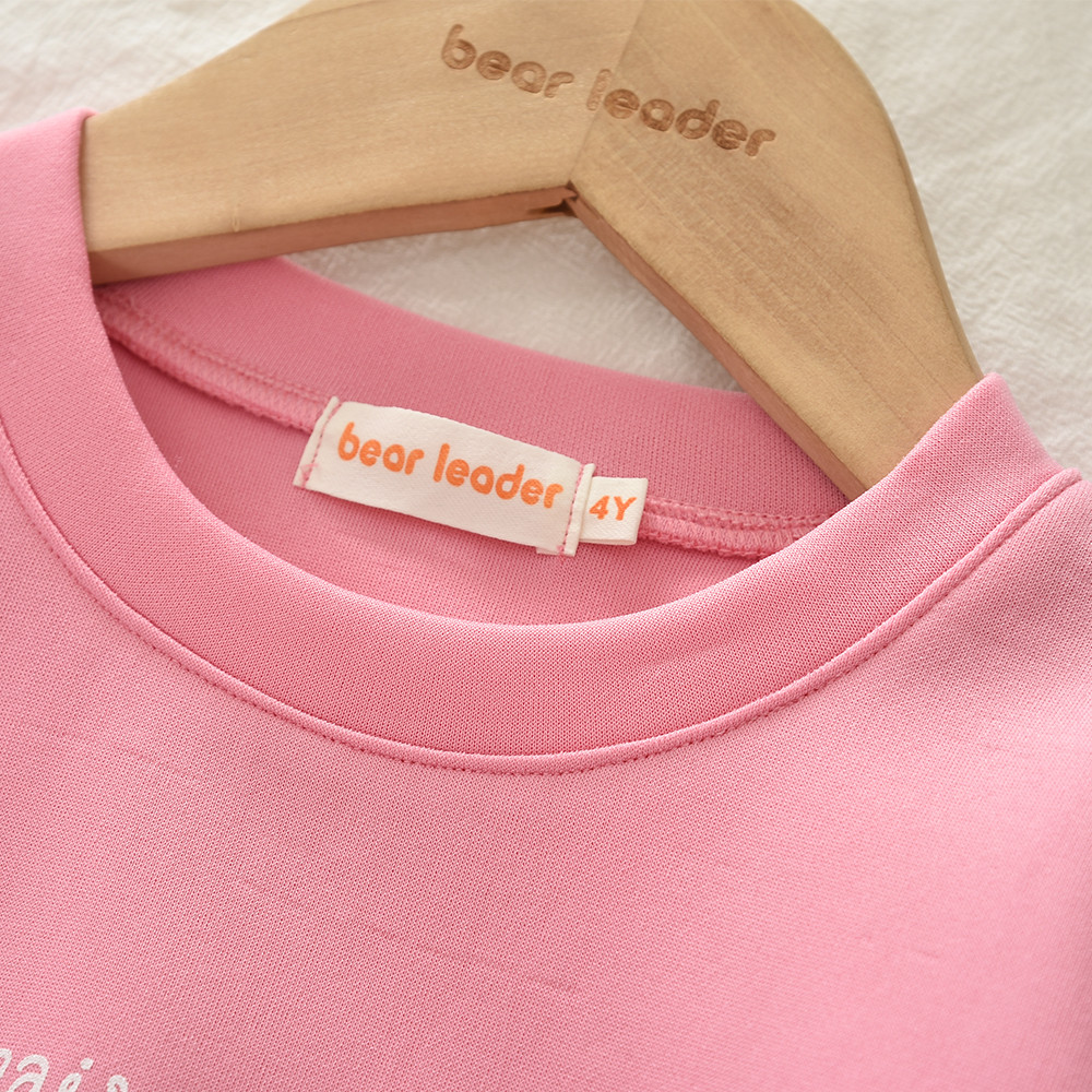 ชุดสองชิ้นลายหมีสีชมพู แขนยาวเสื้อสวมหัวและกางเกง ออกแบบสำหรับฤดูใบไม้ผลิและใบไม้ร่วง