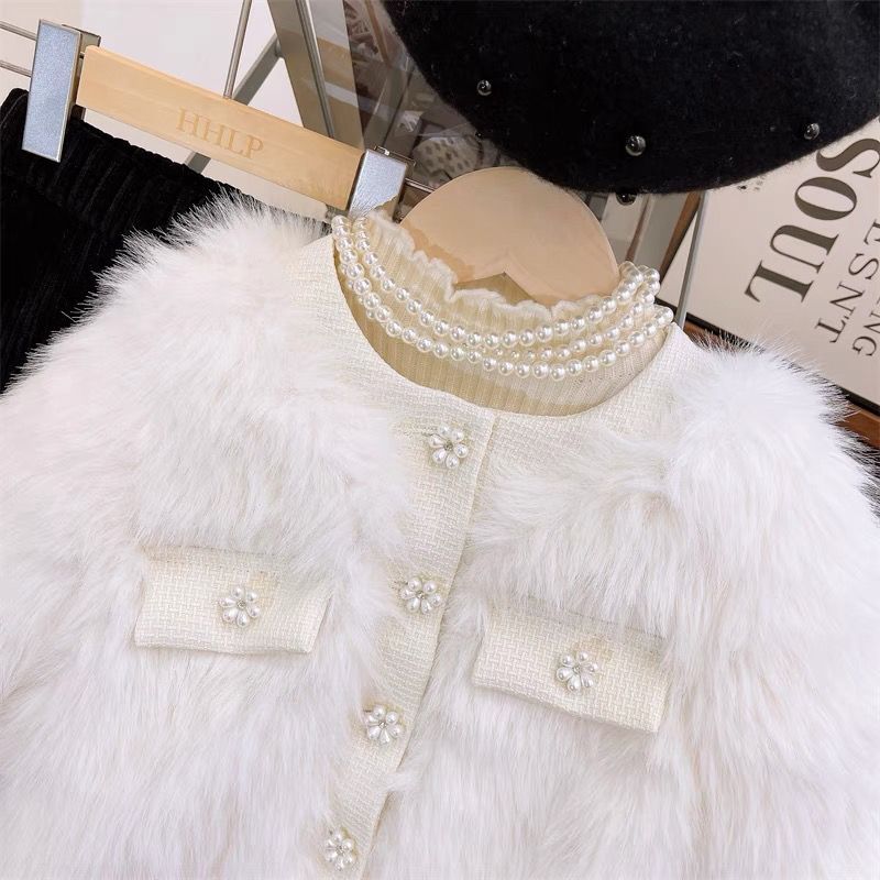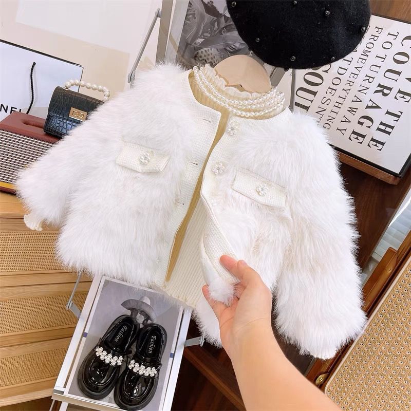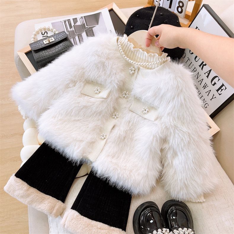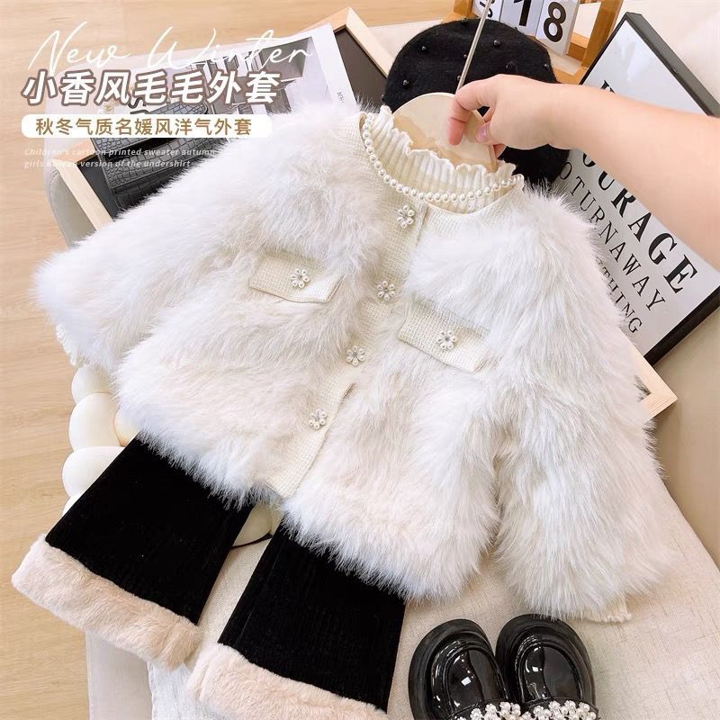 ชุดสองชิ้นสำหรับเด็กหญิง แจ็คเก็ตและเสื้อกันหนาวแบบชาเนล สไตล์ใหม่สำหรับฤดูใบไม้ร่วง