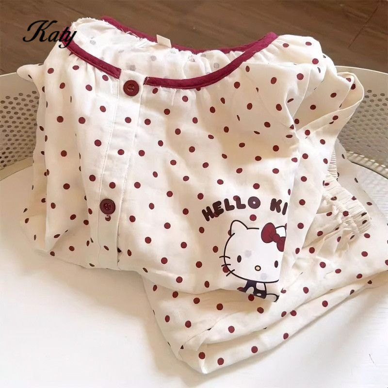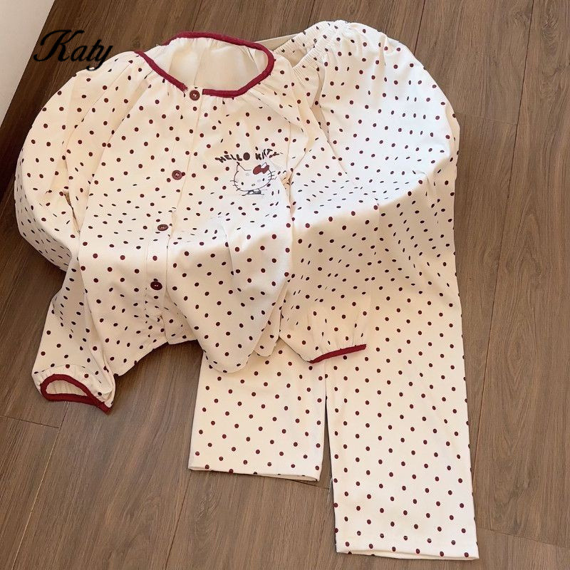 ชุดนอนสไตล์เกาหลีสำหรับฤดูใบไม้ร่วง หวานน่ารัก แขนยาวขายาว พร้อมคาร์ดิแกน จากผ้าฝ้ายนุ่มพิเศษ