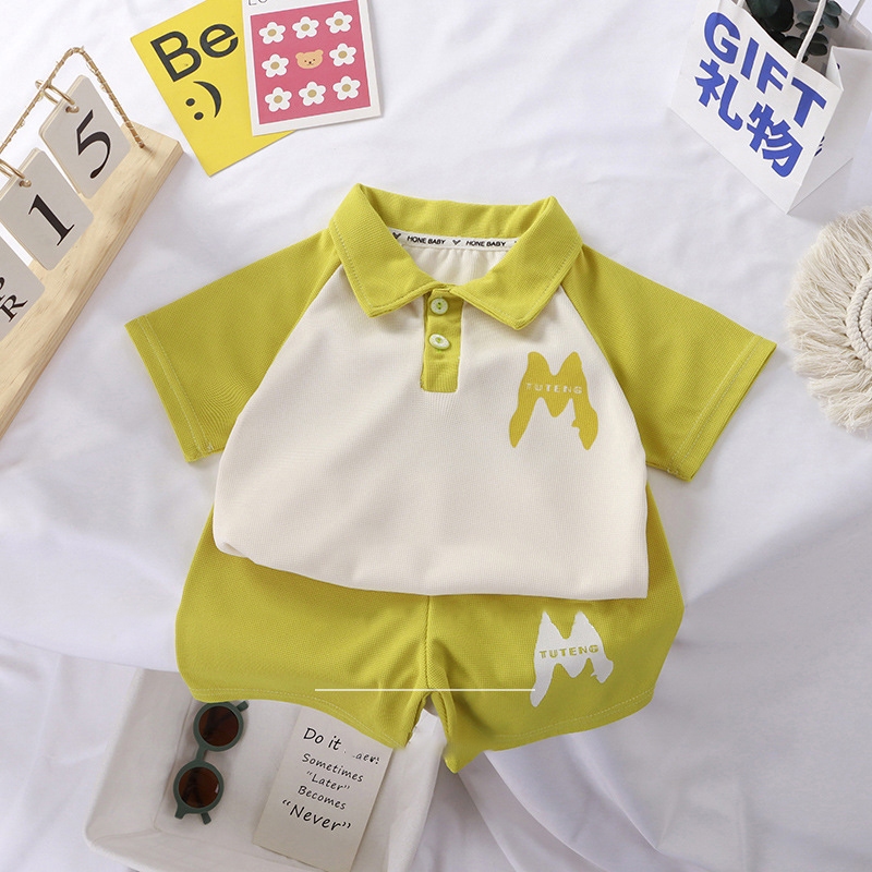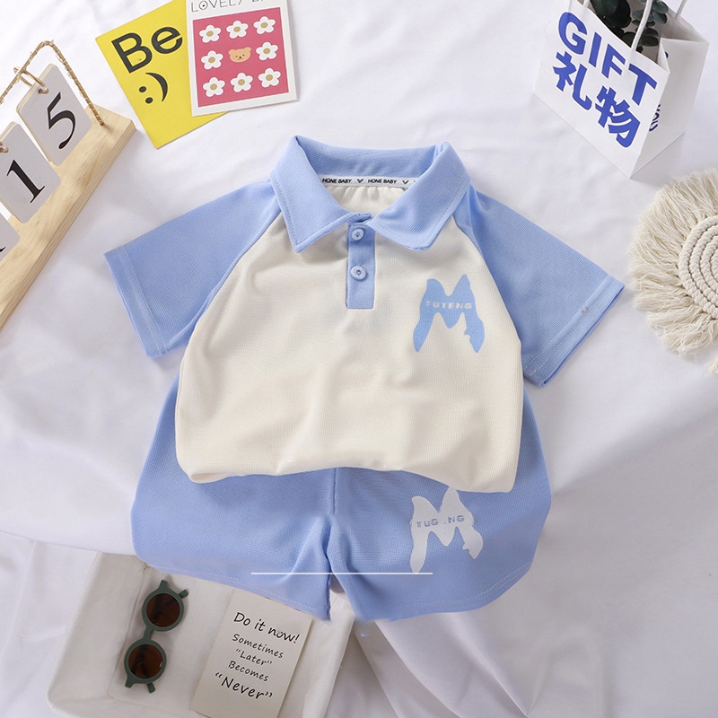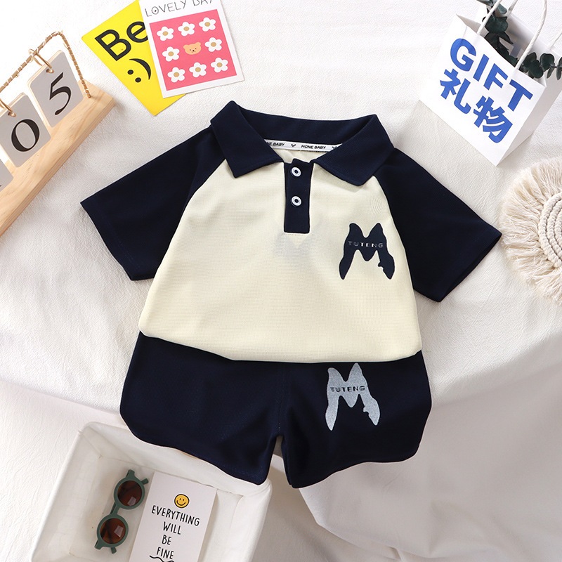 ชุดลำลองเด็ก ชุดแฟชั่นเด็ก คอปก ลายอักษรแอม สีทูโทน สไตล์เกาหลี