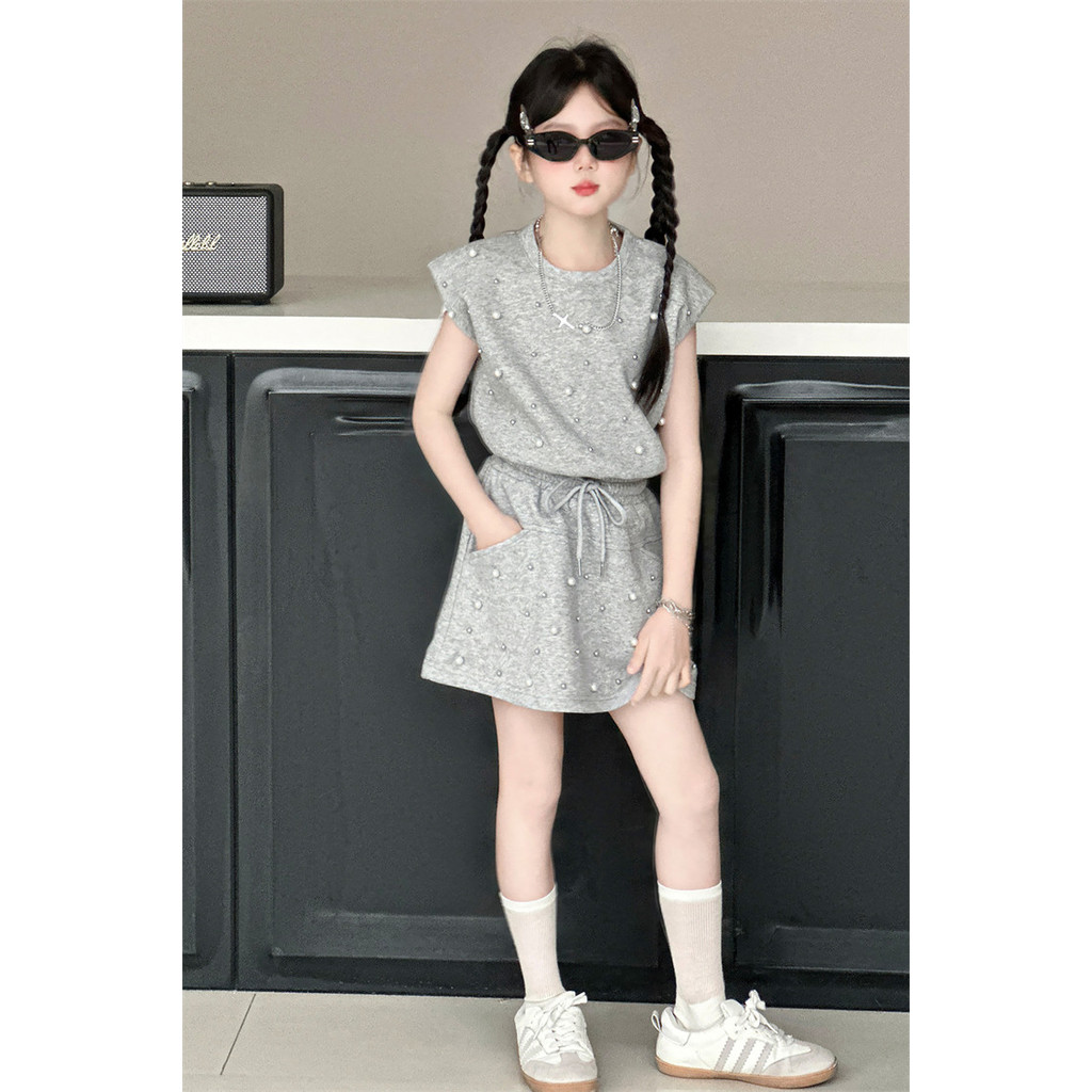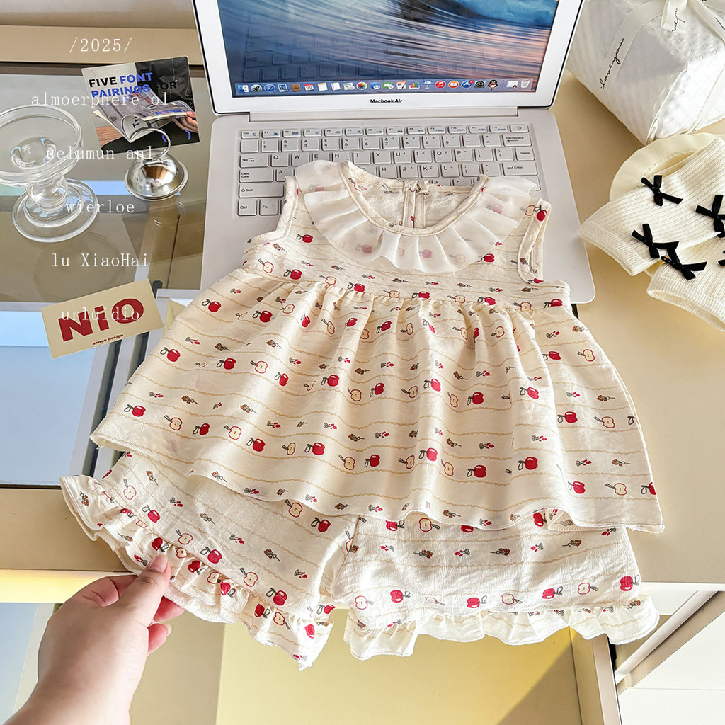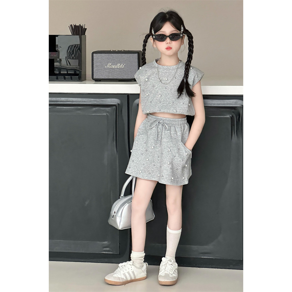 ชุดเสื้อสายเดี่ยว และกางเกงขาสั้น แฟชั่นฤดูร้อน สไตล์เกาหลี สําหรับเด็กผู้หญิง อายุ 1-9 ปี ชุดเสื้อแขนกุด+กางเกงขาสั้นล lzboi_10.th
