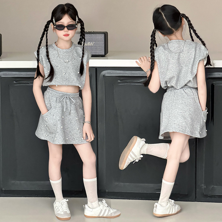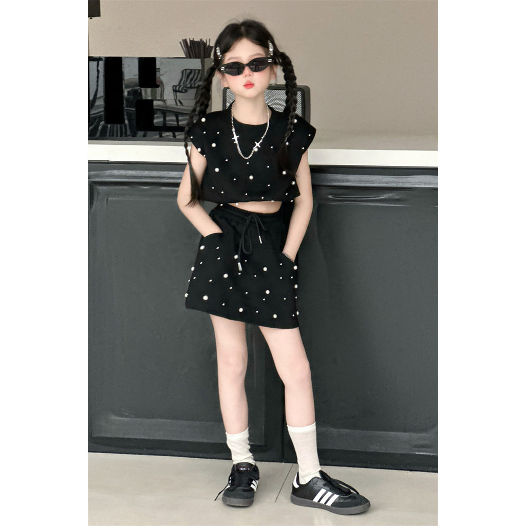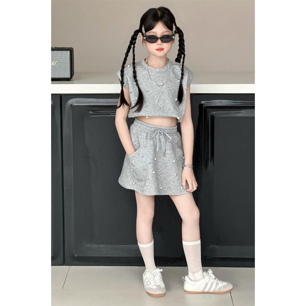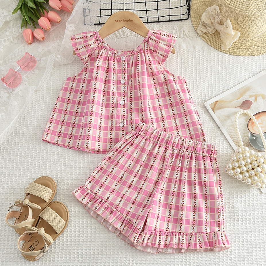 ชุดเสื้อสายเดี่ยว และกางเกงขาสั้น แฟชั่นฤดูร้อน สไตล์เกาหลี สําหรับเด็กผู้หญิง อายุ 1-9 ปี ชุดเสื้อแขนกุด+กางเกงขาสั้นล lzboi_10.th