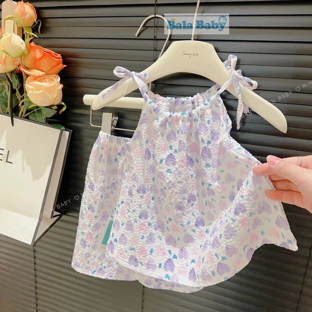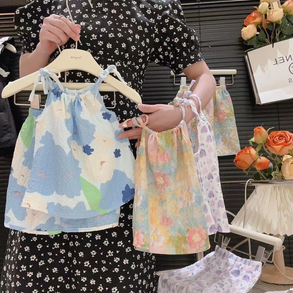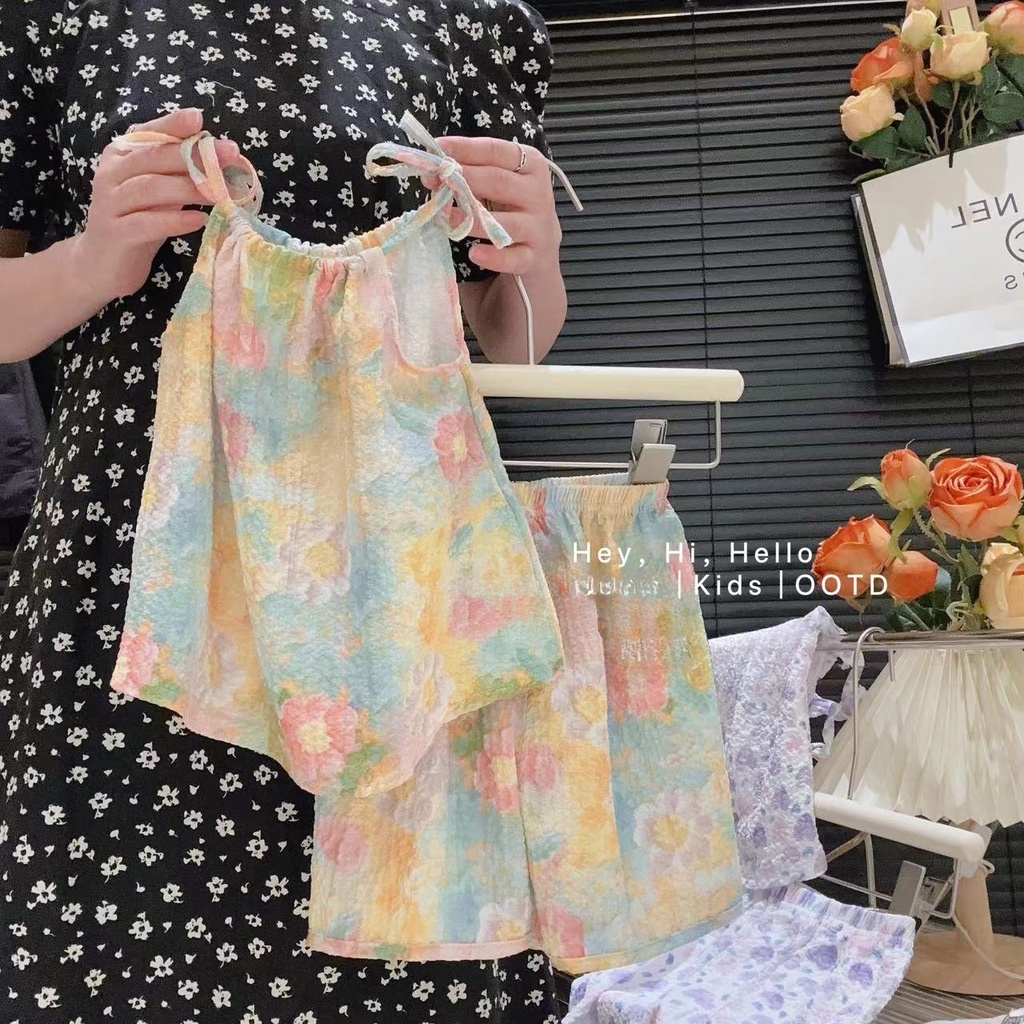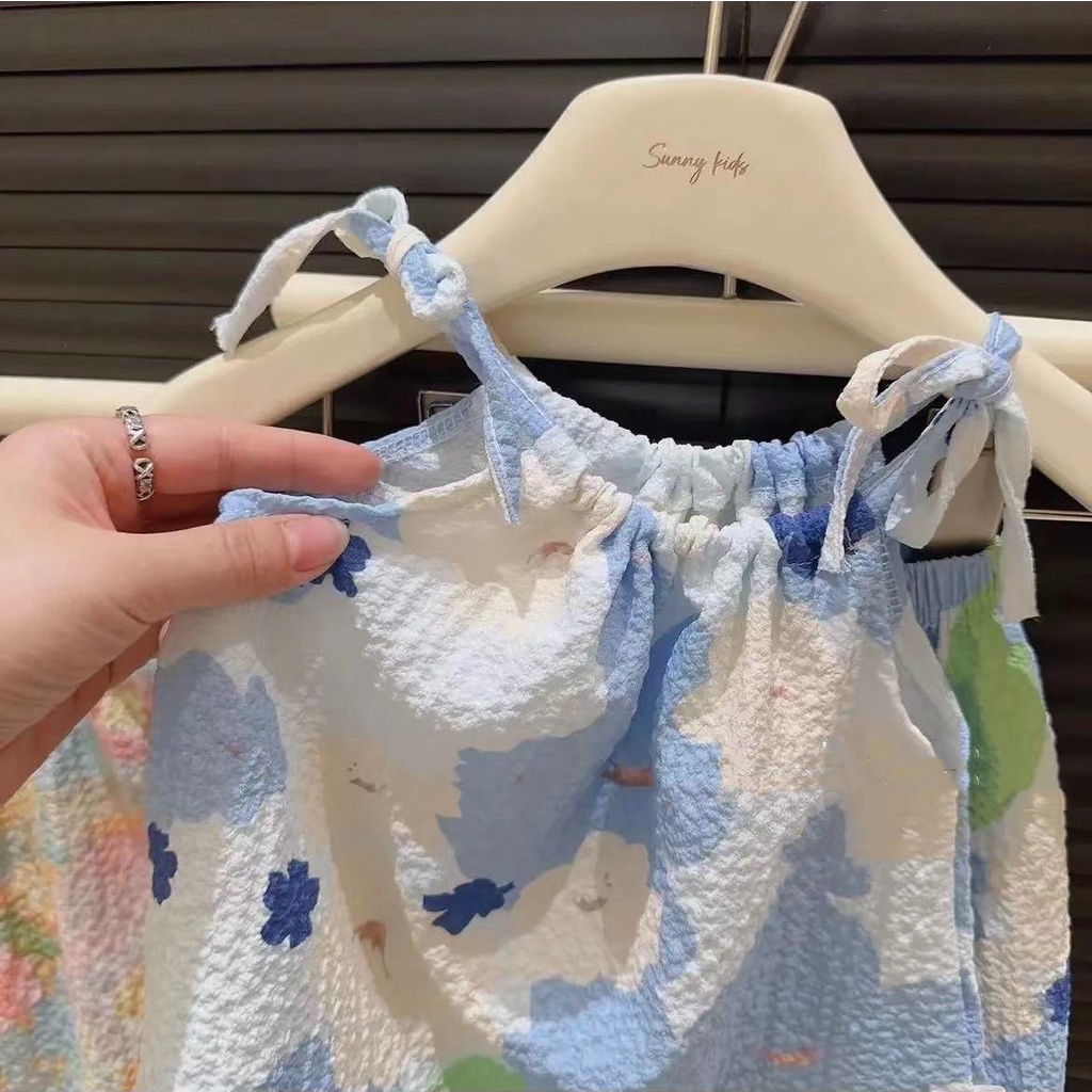 ชุดเสื้อสายเดี่ยว และกางเกงขาสั้น ชุดเซ็ท แฟชั่นฤดูร้อน สไตล์เกาหลี ชุดเด็กผู้หญิง 1-4 ปี BXT06