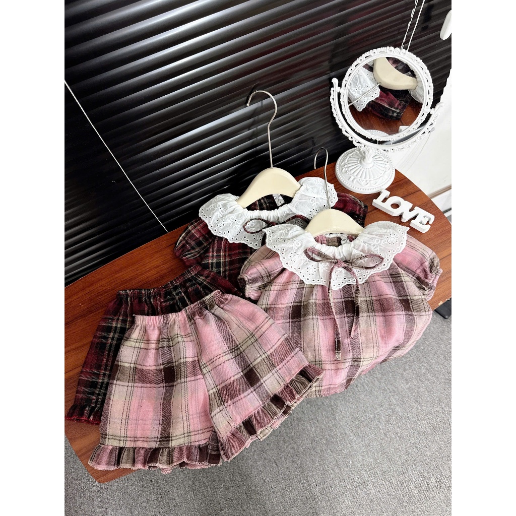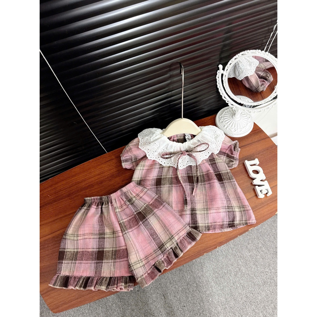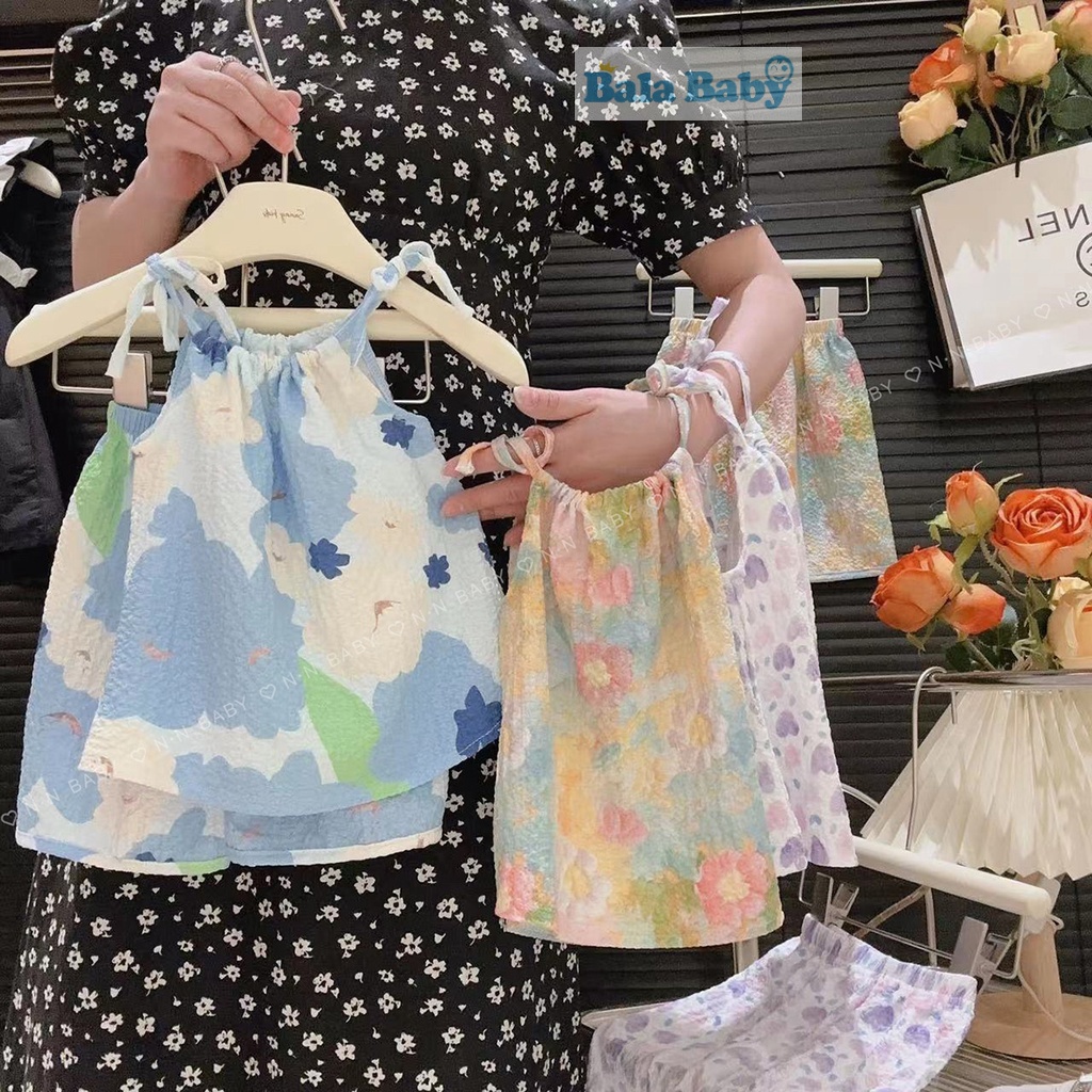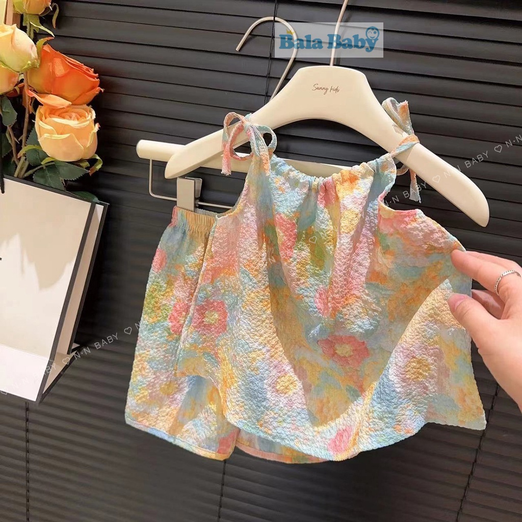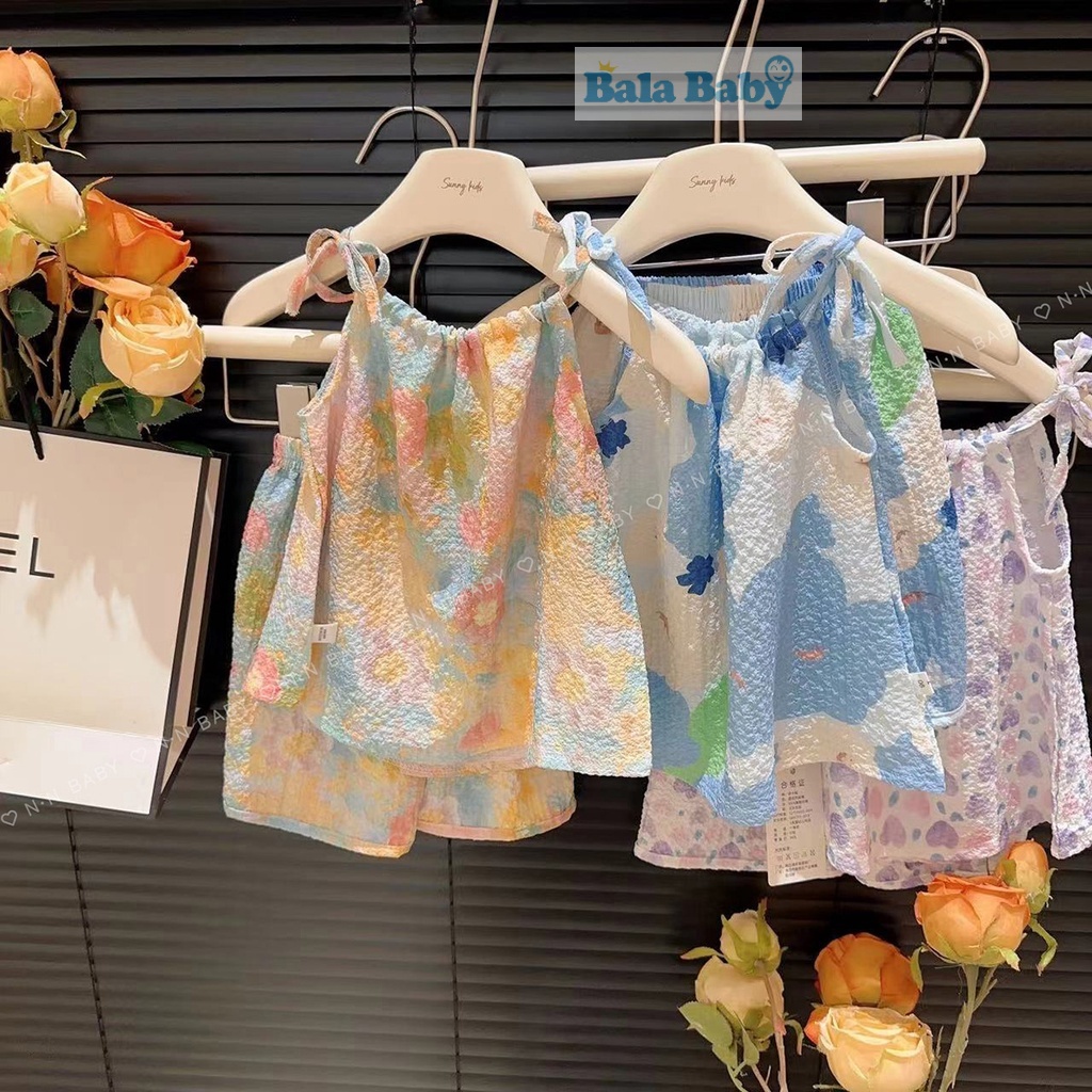 ชุดเสื้อสายเดี่ยว และกางเกงขาสั้น ชุดเซ็ท แฟชั่นฤดูร้อน สไตล์เกาหลี ชุดเด็กผู้หญิง 1-4 ปี BXT06
