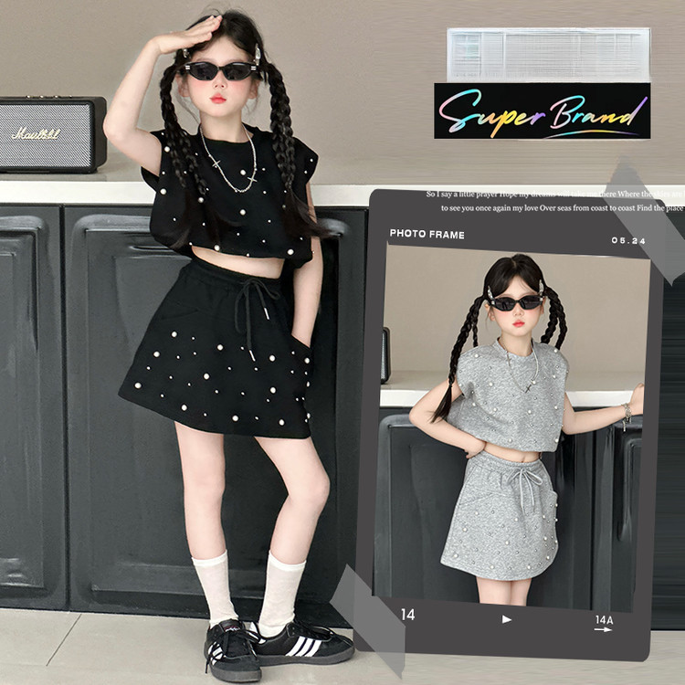 ชุดเสื้อผ้าเด็กแฟชั่นแขนสั้นฤดูร้อนใหม่ ชุดเสื้อยืดและกางเกงขาสั้นสำหรับเด็กผู้หญิง