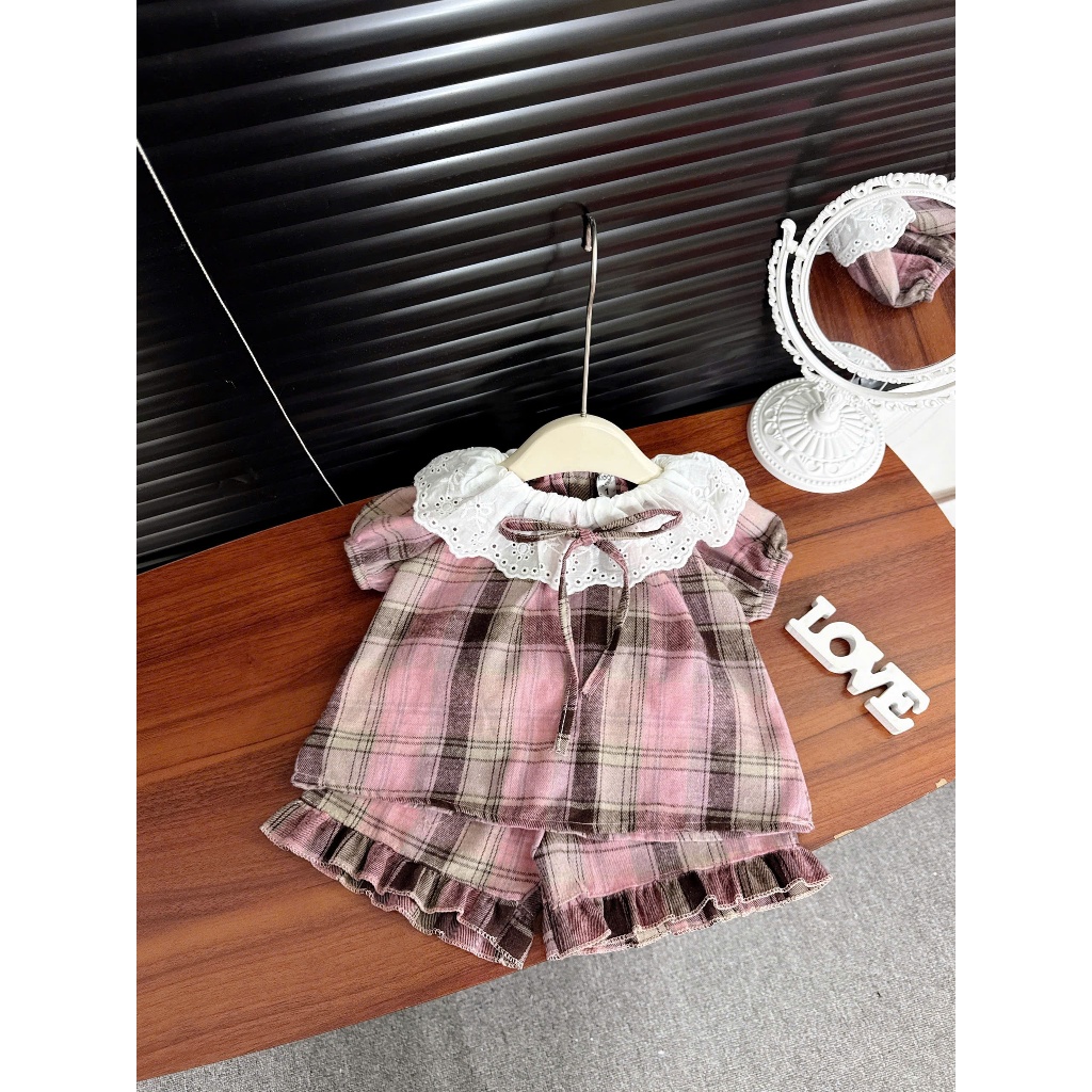ชุดเสื้อผ้าเด็กผู้หญิง-ชุดแขนกุดคอปกระบายลูกไม้สวยสําหรับเด็กทารกผู้หญิง