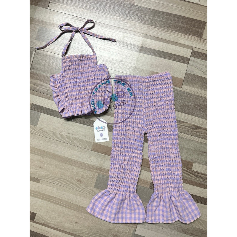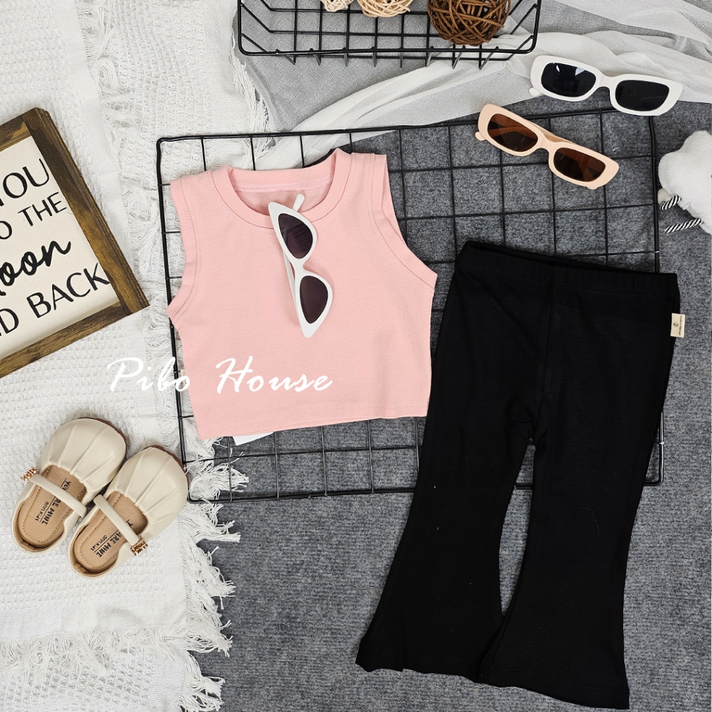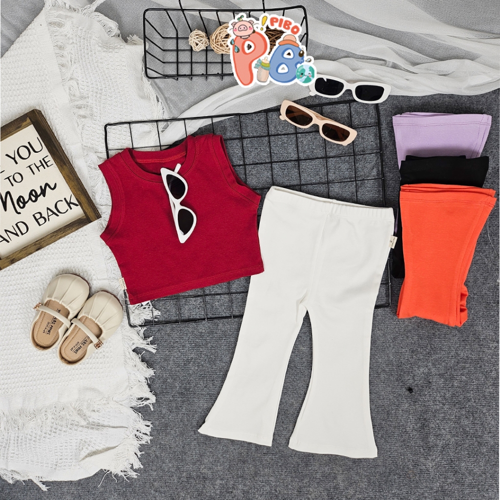 ชุดเสื้อครอปใต้วงแขนและกางเกงบานยาวสําหรับเด็กผู้หญิง ซิปนุ่มและเย็น – SIMEEFA-PiBo-BCRSNLD