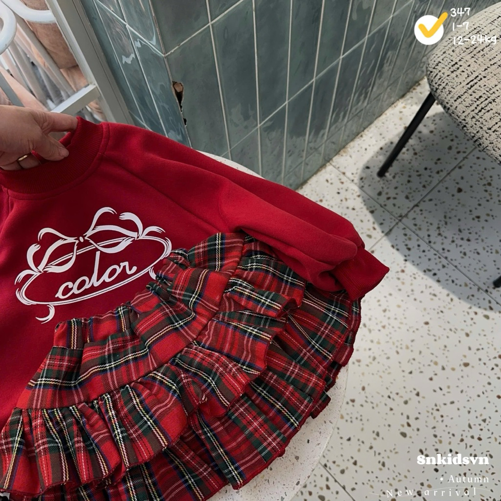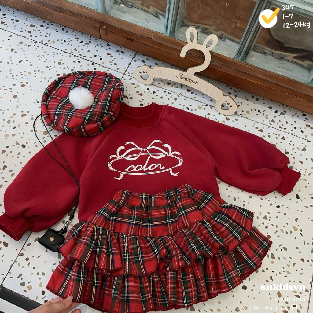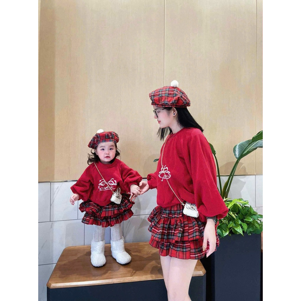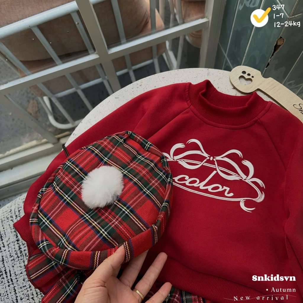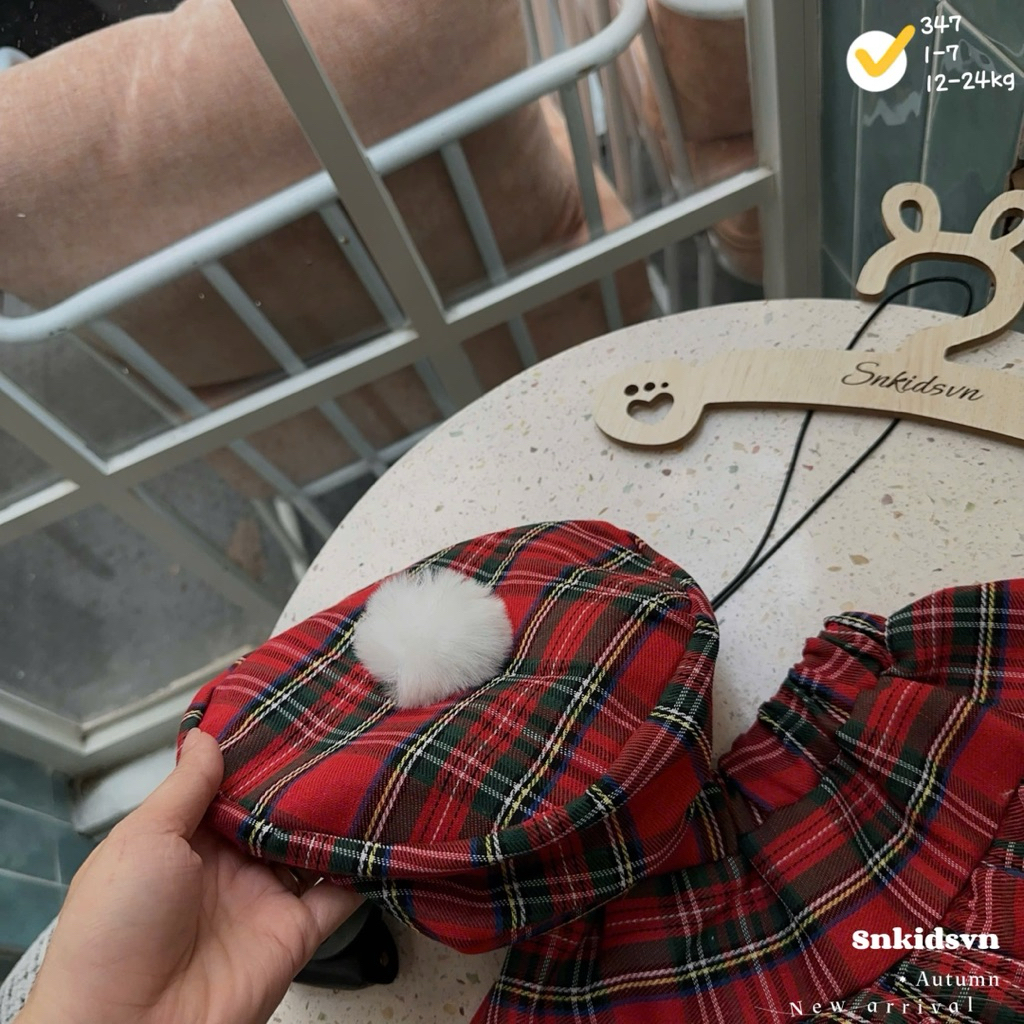 ชุดเดรสสําหรับเด็กผู้หญิงเสื้อกันหนาวสีแดงแขนพองจับจีบประวัติย่อแถมหมวกสําหรับเด็กผู้หญิง10-30กิโลกรัม สําหรับคริสต์มาส
