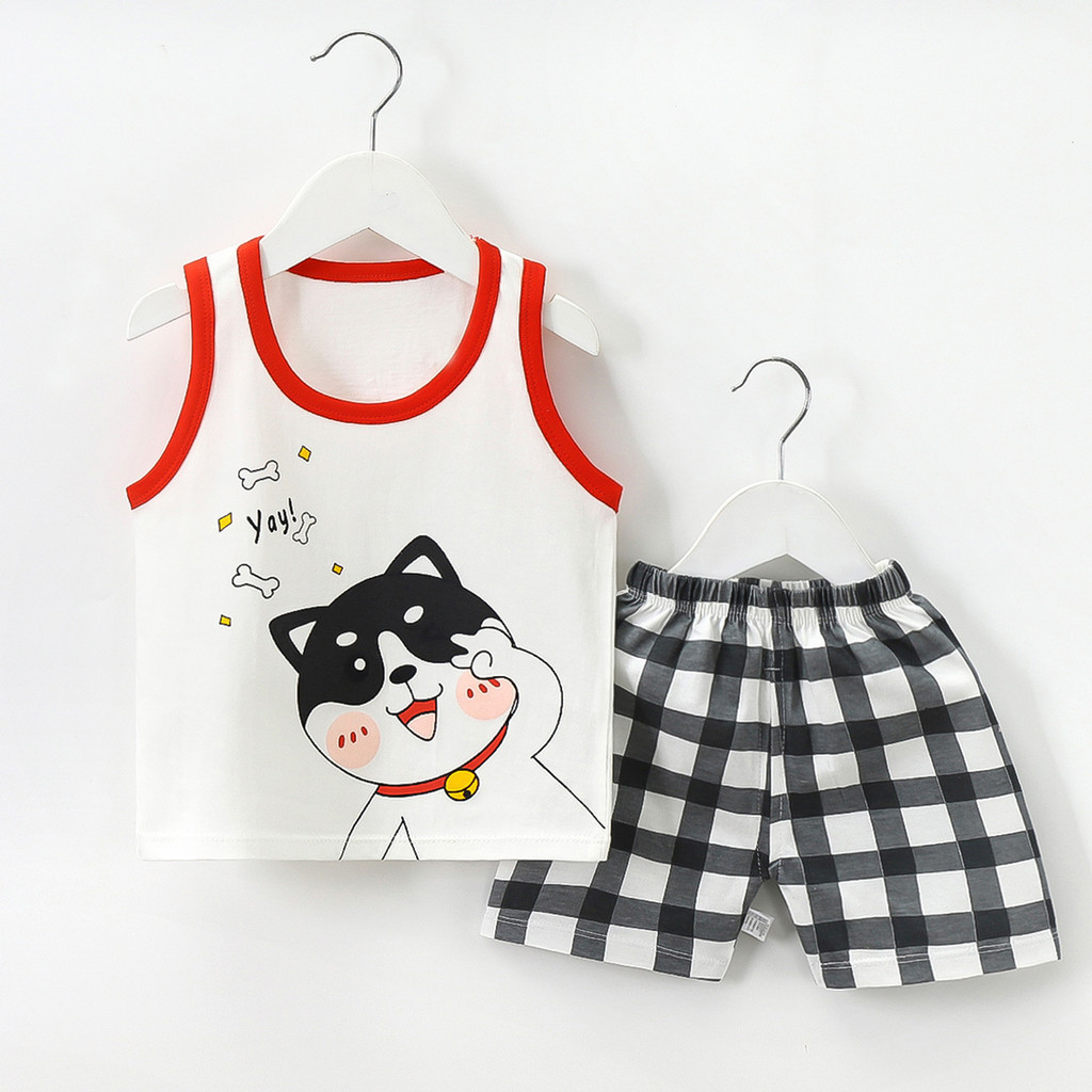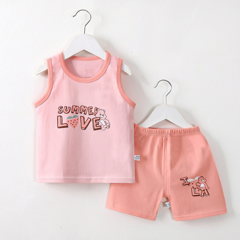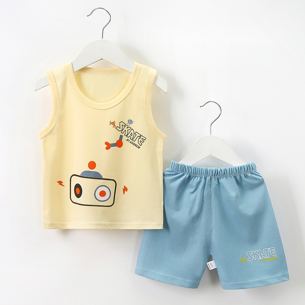 [RJ] 73-130ซม ชุดเสื้อกั๊กเด็กแขนสั้นผ้าฝ้ายแท้ฤดูร้อนเวอร์ชั่นเกาหลีสไตล์ใหม่ชายแขนกุดเสื้อผ้าเด็ก