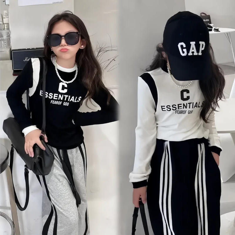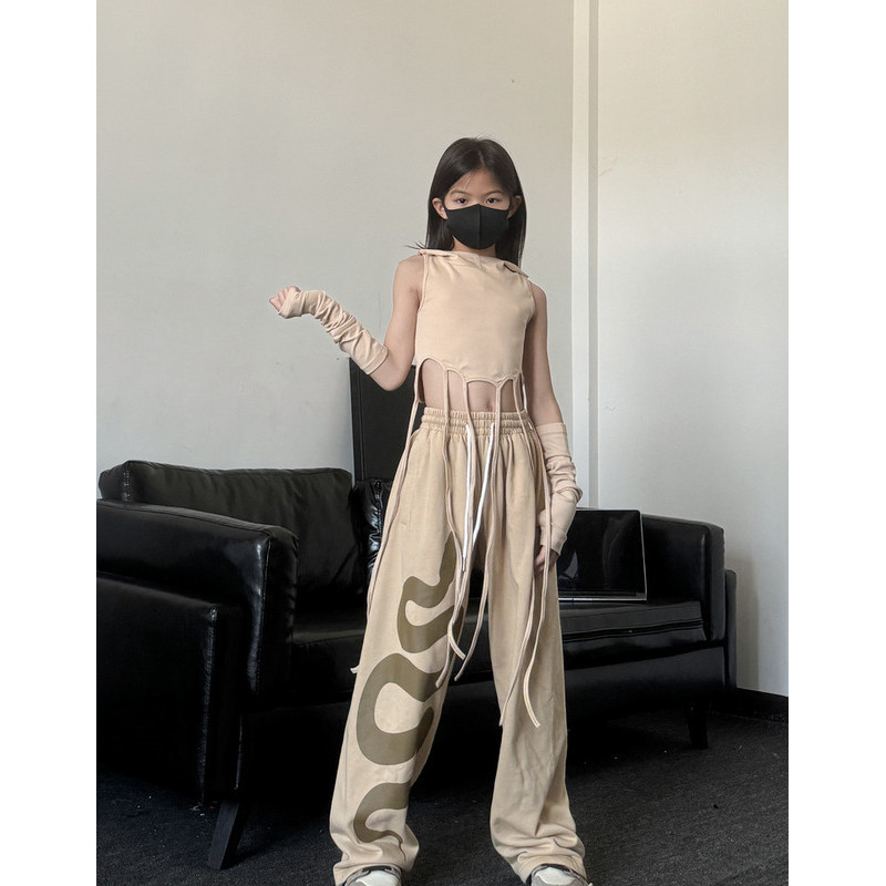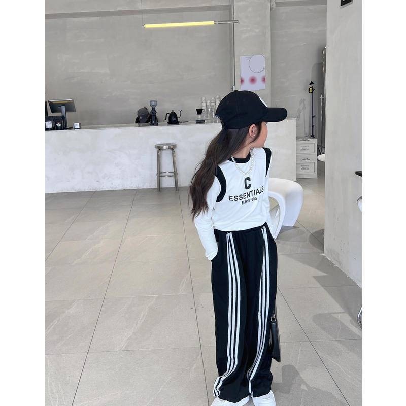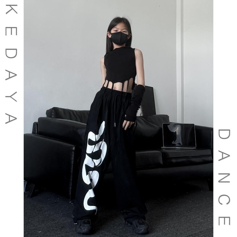 [KeDaYa] พร้อมส่ง กางเกงวอร์มสไตล์เกาหลี กางเกงขายาววินเทจอเมริกัน เสื้อยืด ชุดฮิปฮอปสำหรับเด็กผู้หญิง ชุดเต้นแจ๊สเด็ก Y2K OOTD