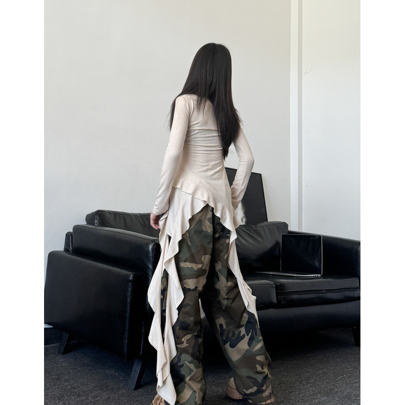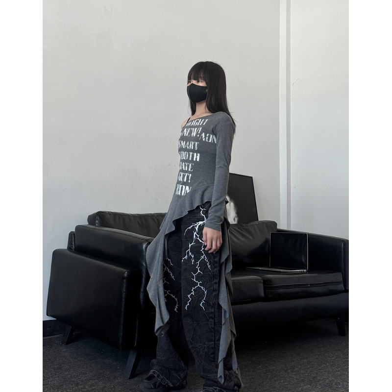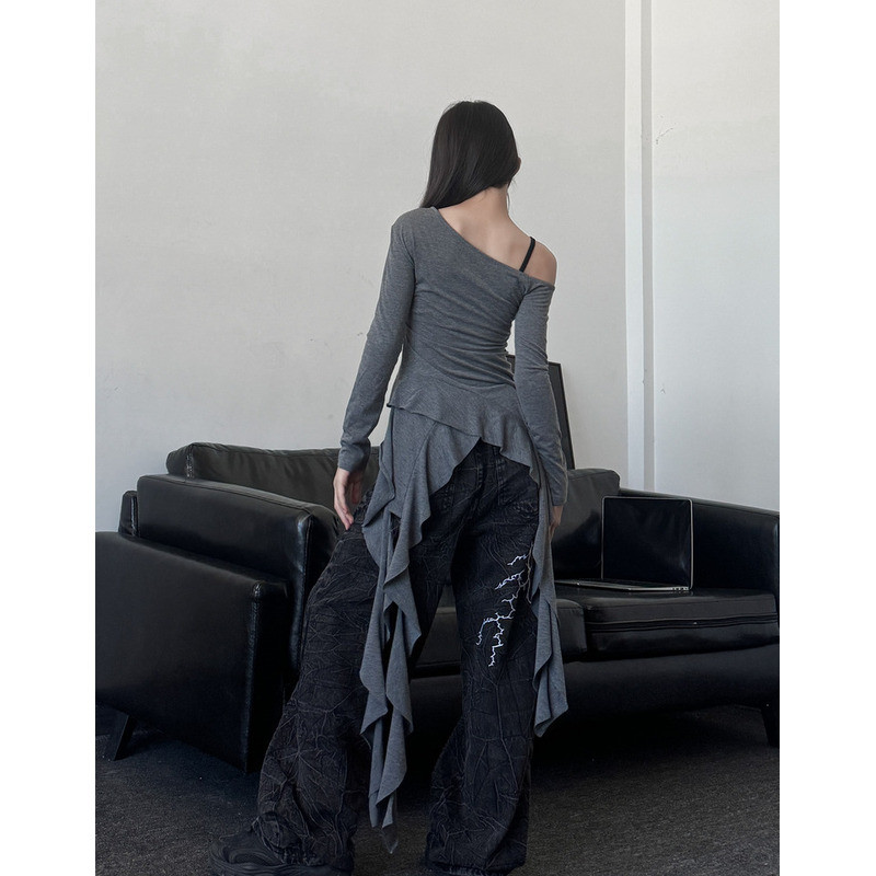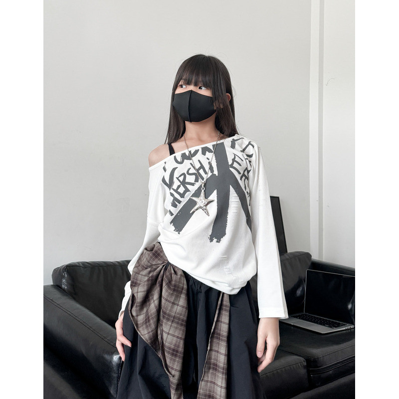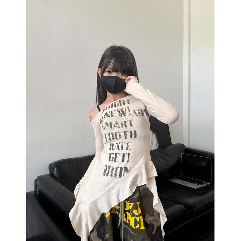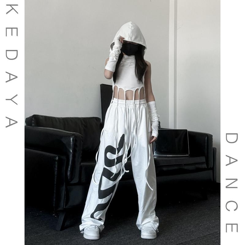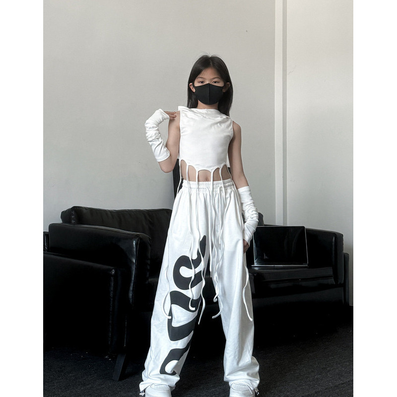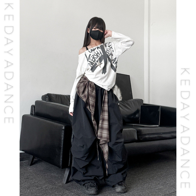 [KeDaYa] พร้อมส่ง เสื้อเปิดไหล่ระบายไม่สมมาตร กางเกงวินเทจเกาหลี ชุดเต้นเด็กผู้หญิง Y2K OOTD ฮิปฮอป