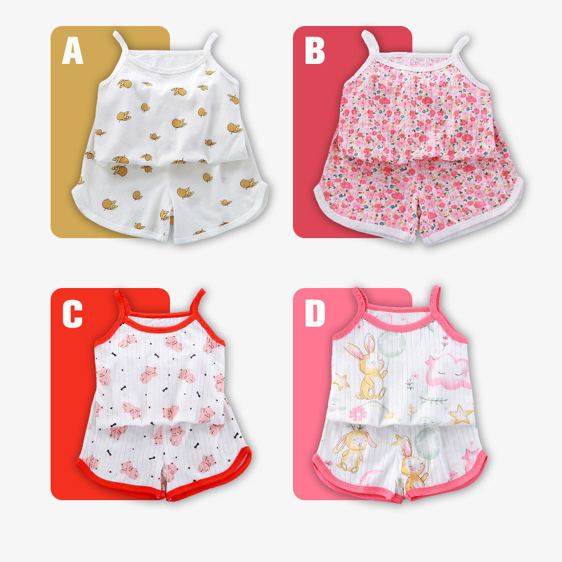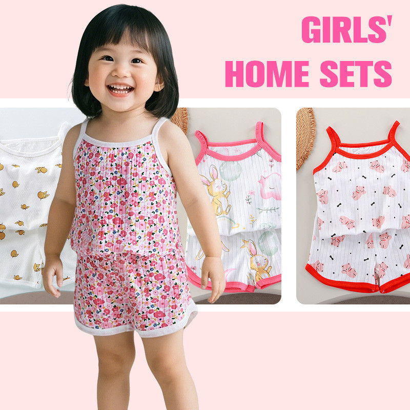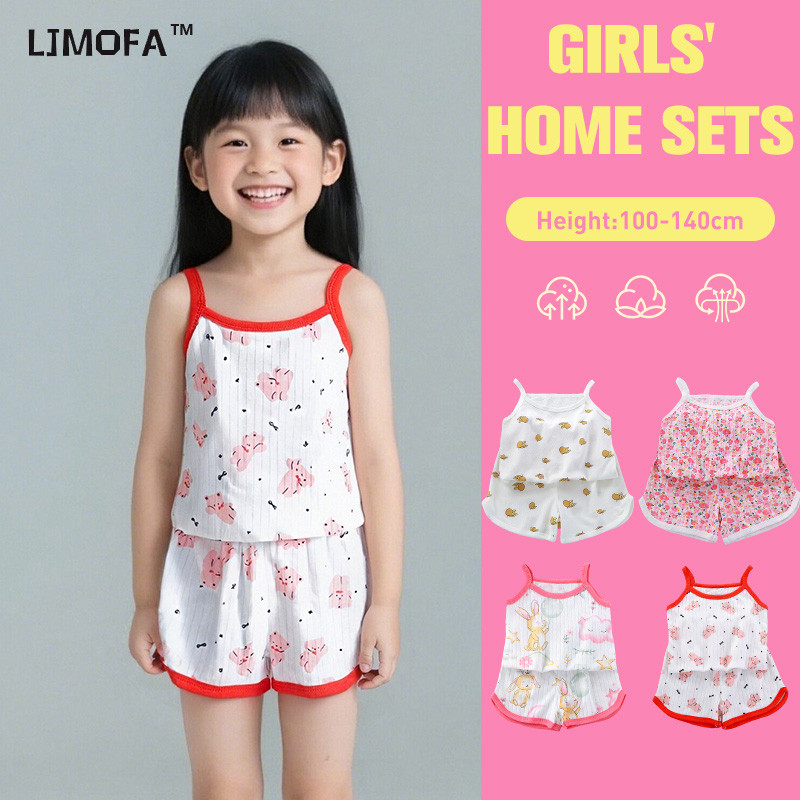 [Local Shipping] ชุดเสื้อหลังเปลือย+กางเกงขาสั้น 2 ชิ้น เด็กผู้หญิง 3-10 ปี ผ้าฝ้าย 100% ลายน่ารัก