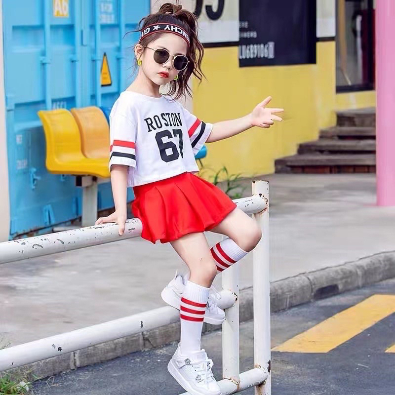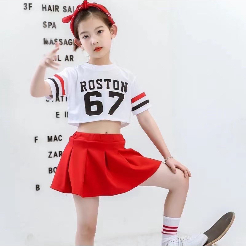 (พร้อมส่ง)ลาย67 ชุดเต้นแจ๊สแดนซ์ ฮิปฮอป เชียร์ลีดเดอร์ เด็กผู้หญิง 2-12 ปี