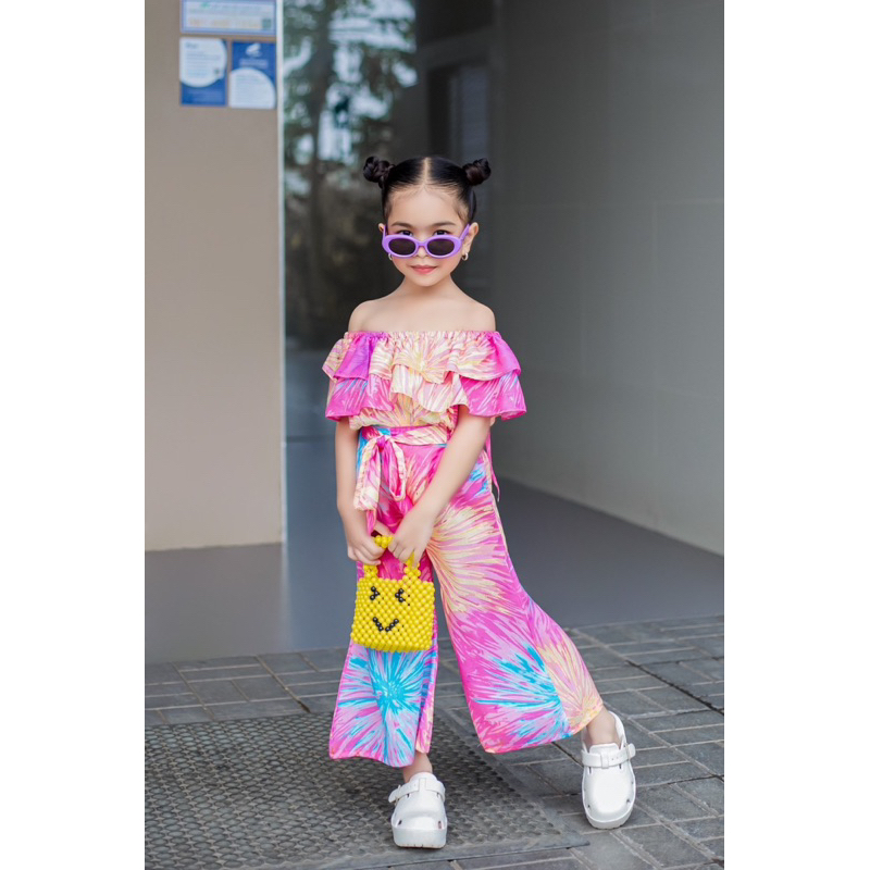 (รหัสTV)ชุดมัดย้อมรับซัมเมอร์สำหรับเด็กผู้หญิง ชุดรับลมร้อน ชุดไปทะเล ชุดใส่สบายๆอยู่บ้าน