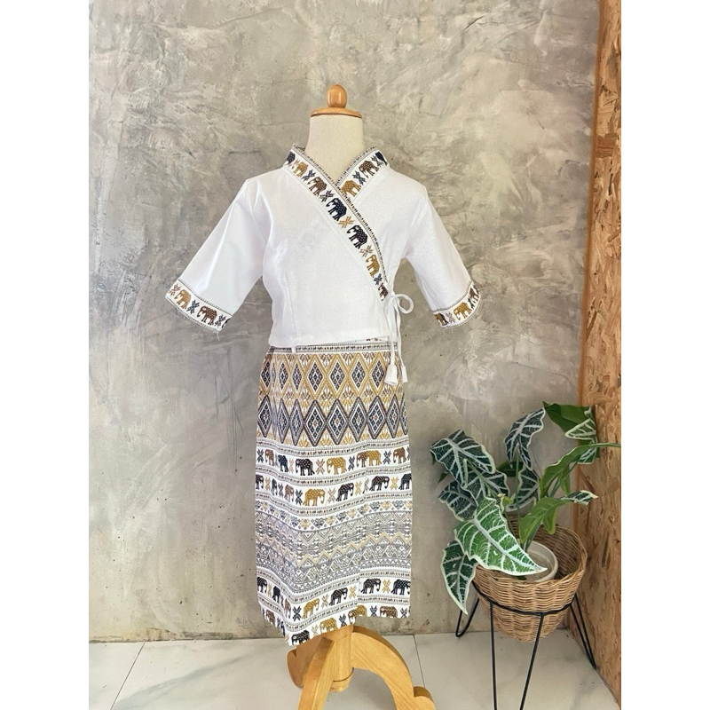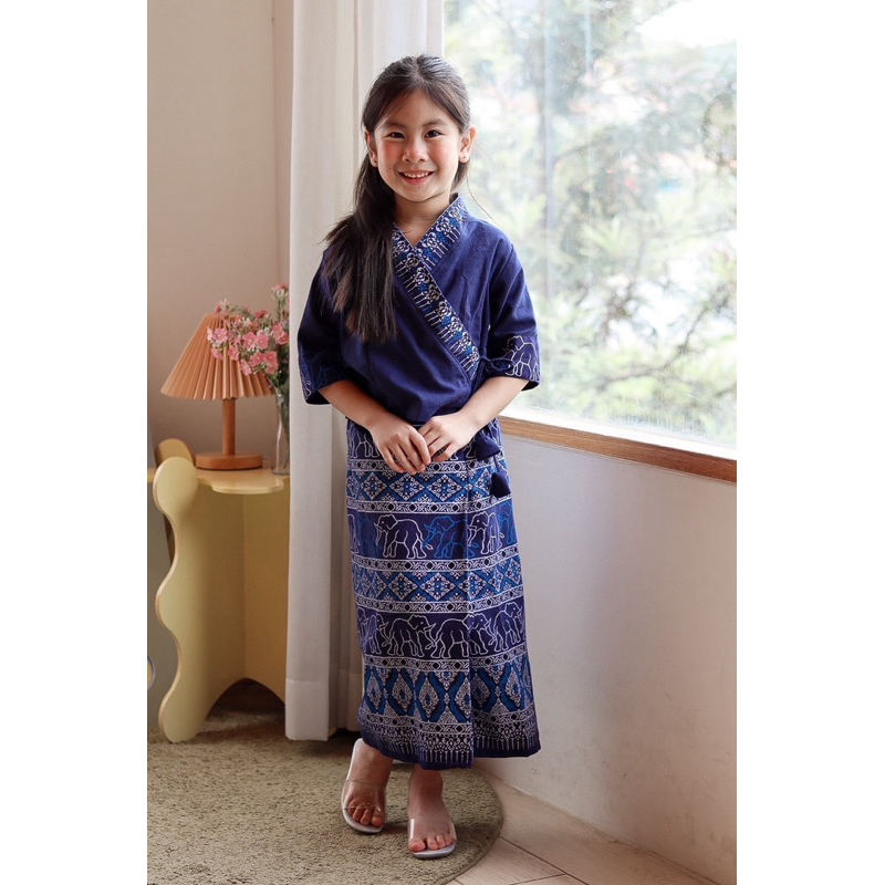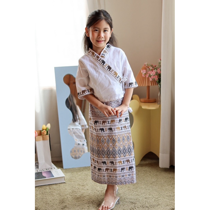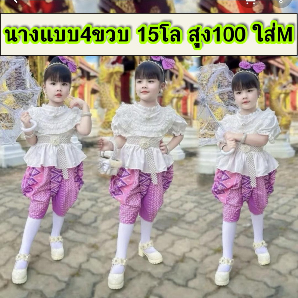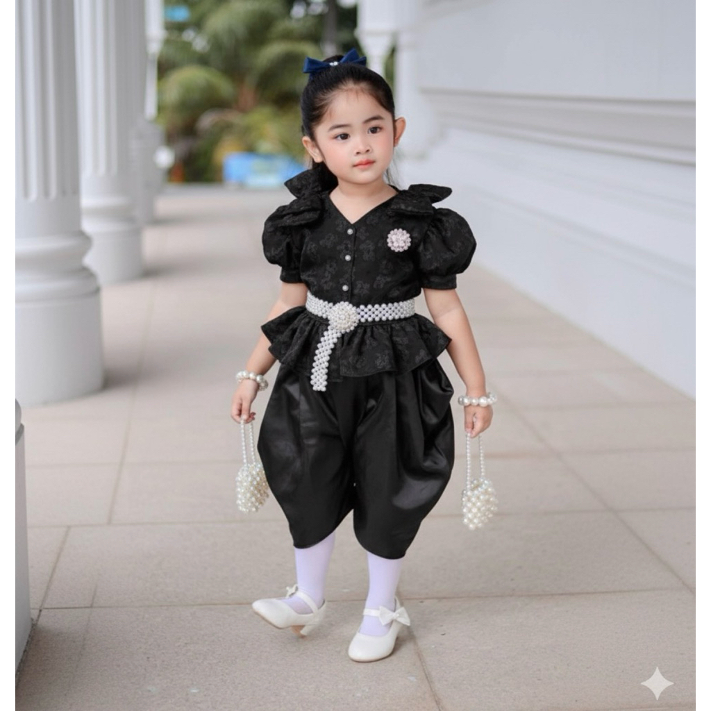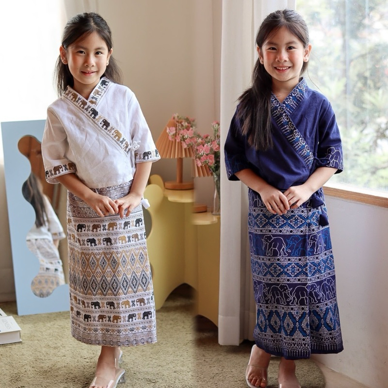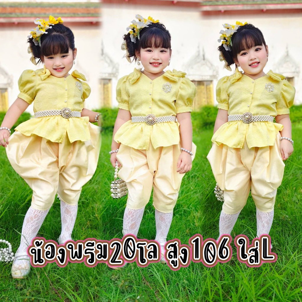 (รหัสKK)ชุดไทยเด็กผู้หญิงชุดไทยสวยๆใส่ทำบุญ ออกงาน ไปโรงเรียน ได้หมด งาน 2ชิ้นเสื้อ+ จงกระเบนแถมกิ๊บติดผม ชุดไทยประยุกต์