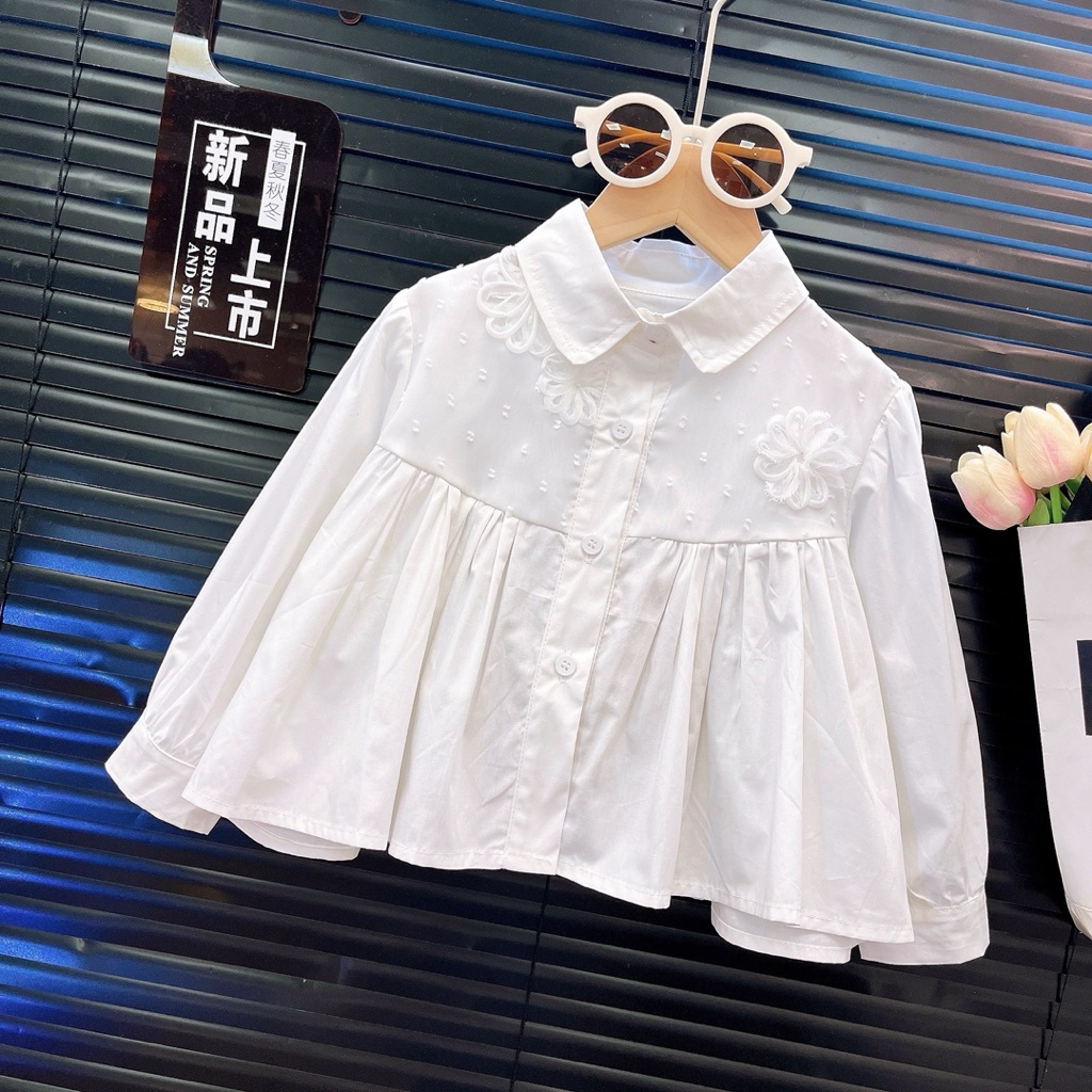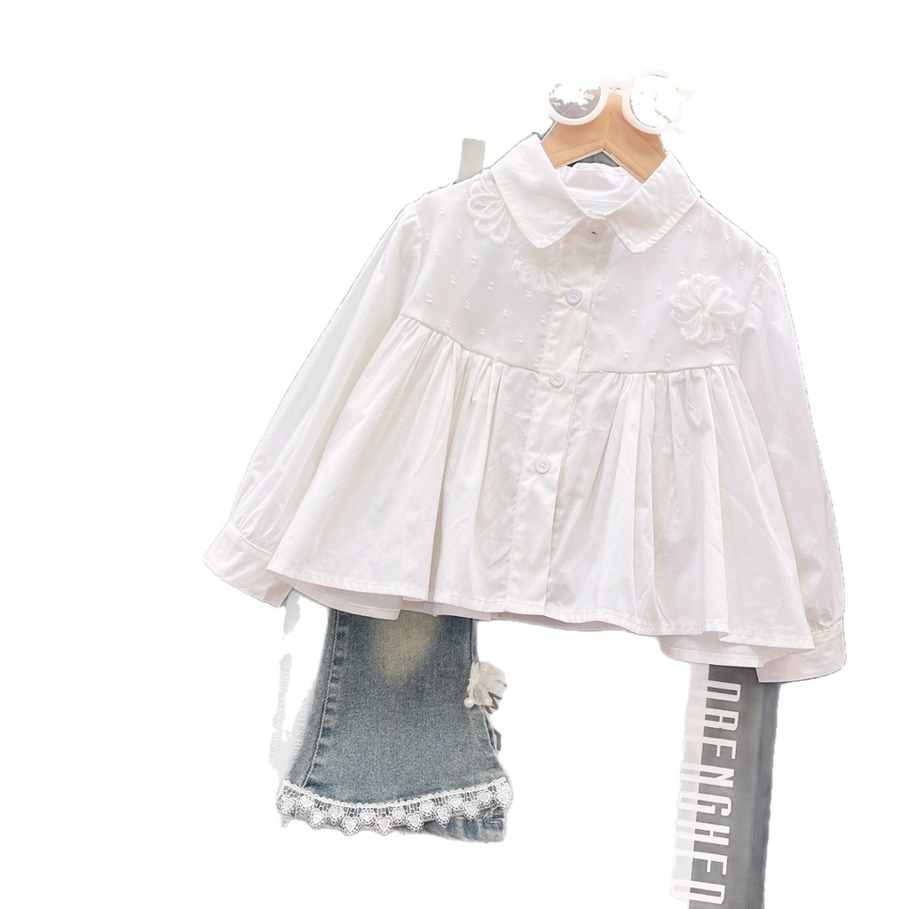 [Namsaii kids]?พร้อมส่ง?ชุดเซท2ชิ้น ชุดเด็กผู้หญิง เสื้อเชิ้ตแขนยาวปักตาข่าย+กางเกงยีนส์ สไตล์เกาหลี