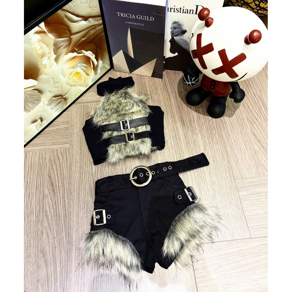 (DESIGNER) HK125 ชุดเสื้อโค้ทขนสัตว์พร้อมเสื้อชั้นในสตรีและกางเกงขาสั้นสําหรับเด็ก 7-40kg