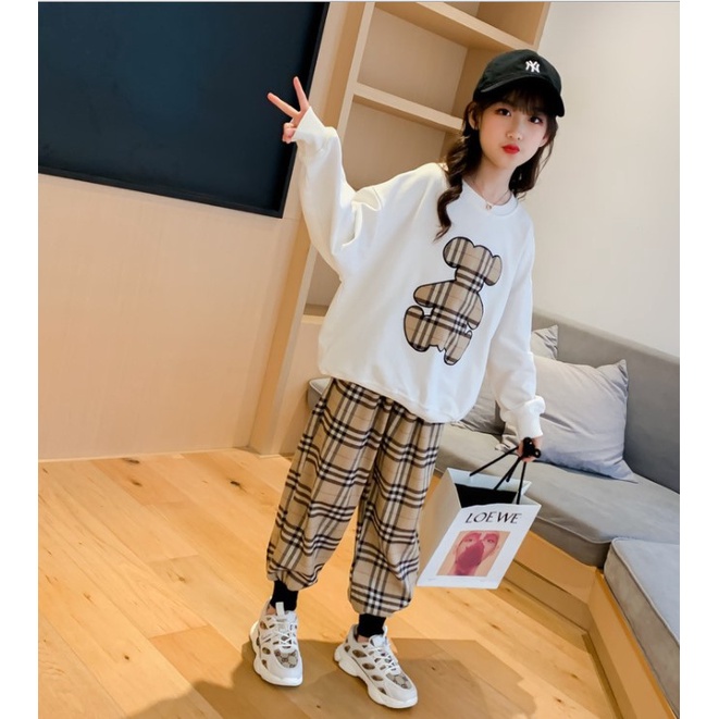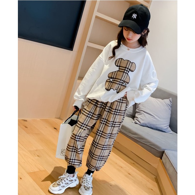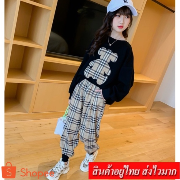 ❤️COCO❤️ ชุดเซ็ตเสื้อแขนยาว+กางเกงลายสก็อต ลายกราฟิกน่ารักสมวัย สวมใส่สบาย รุ่น A179