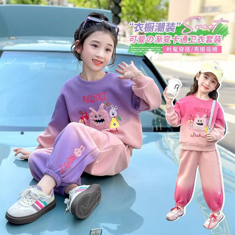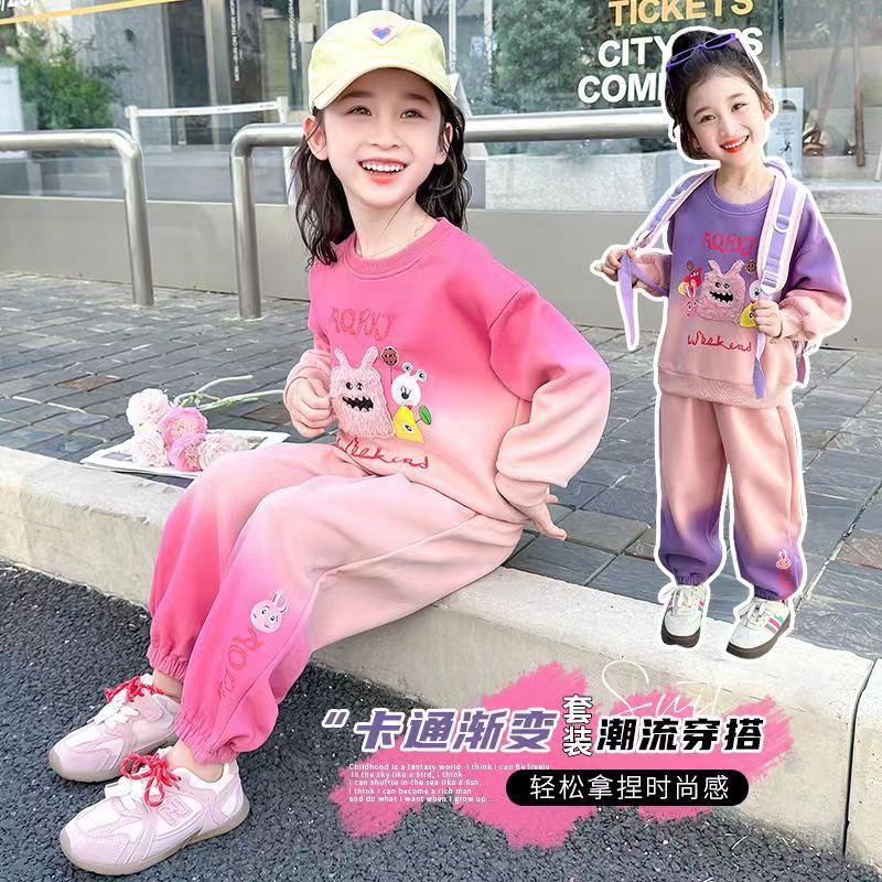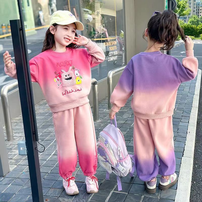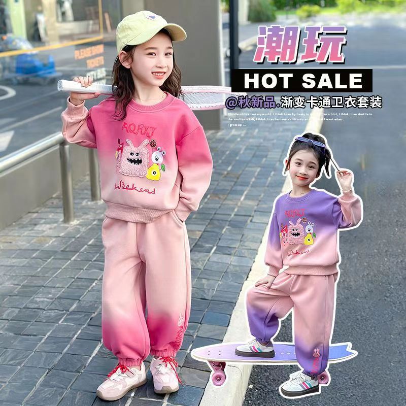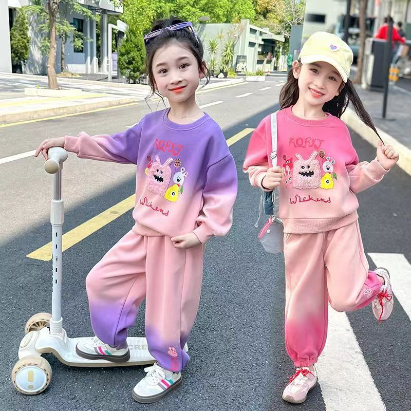 1-10ย สาวฤดูใบไม้ร่วงใหม่ชุดเด็กสาวเกาหลีการ์ตูนแฟชั่นไล่ระดับสีเสื้อกันหนาวกางเกงชุดสองชิ้น