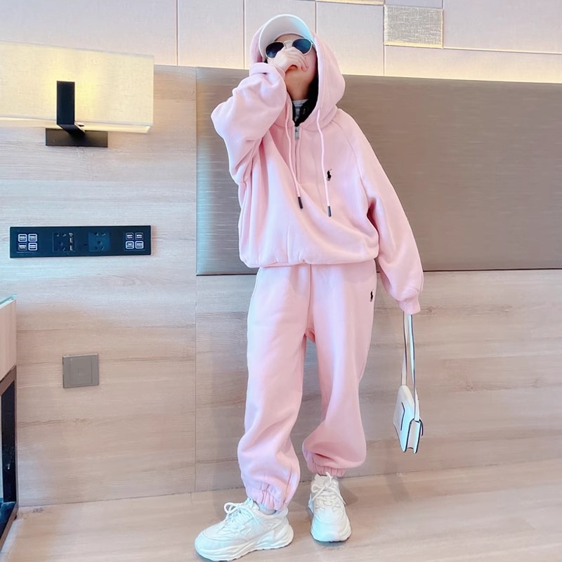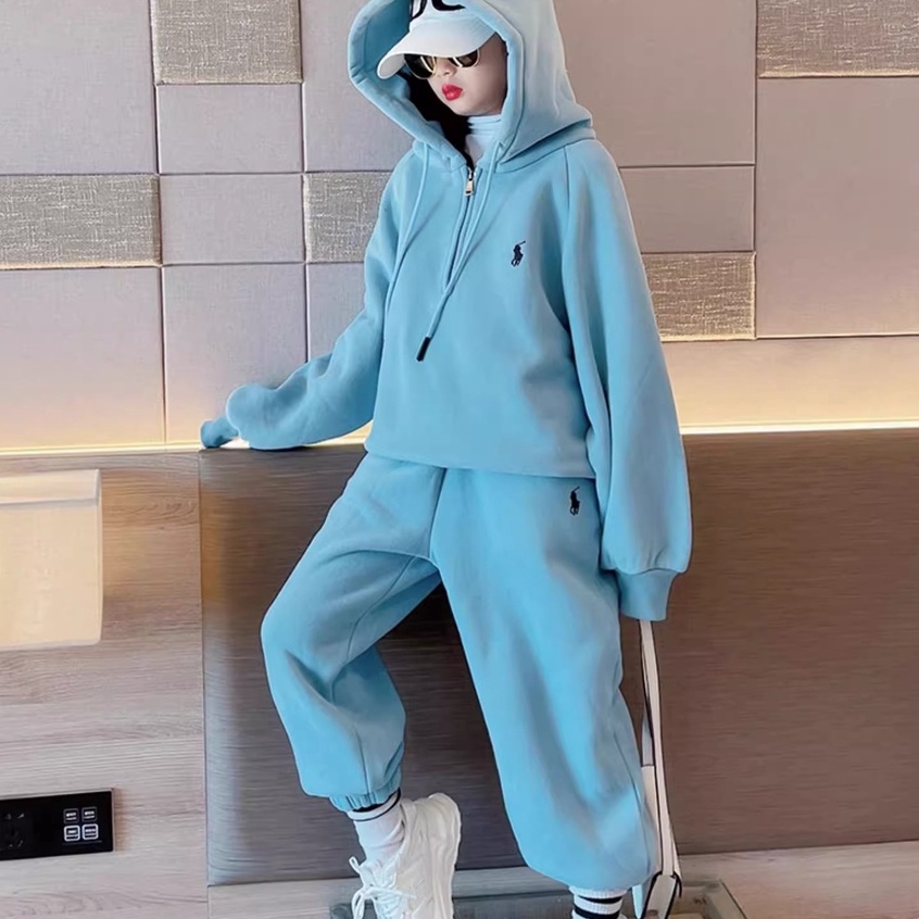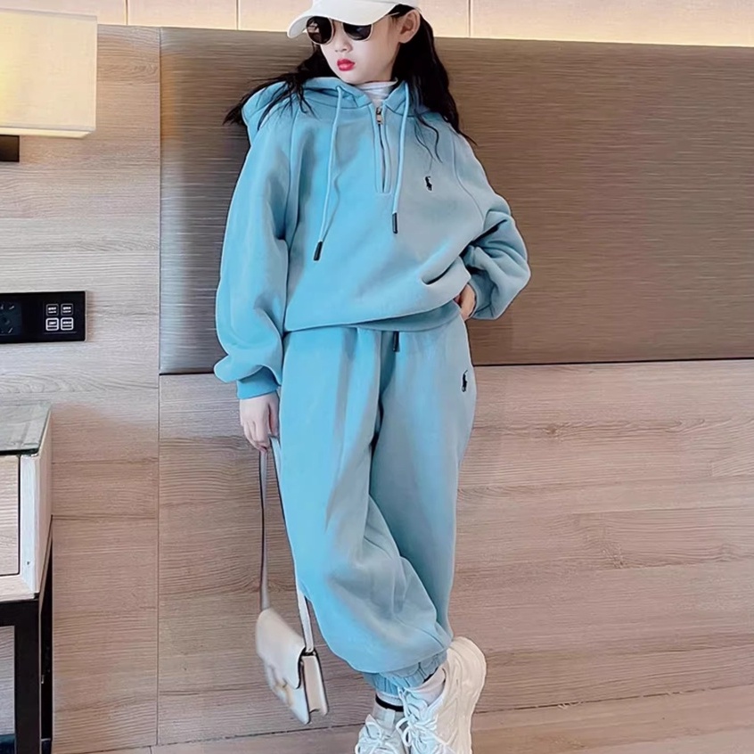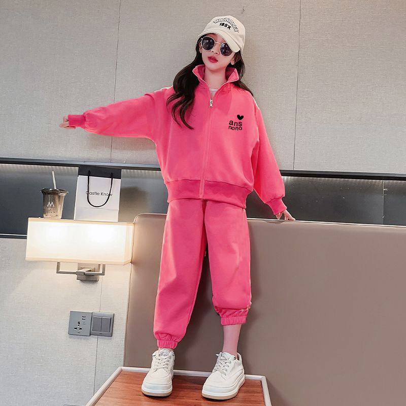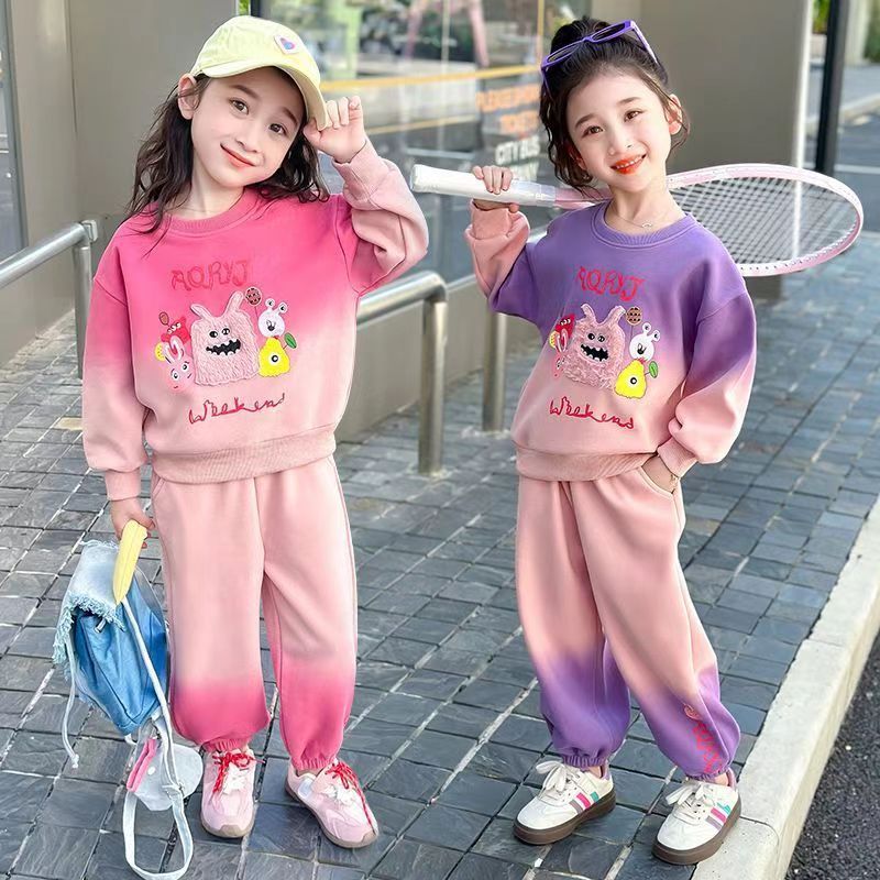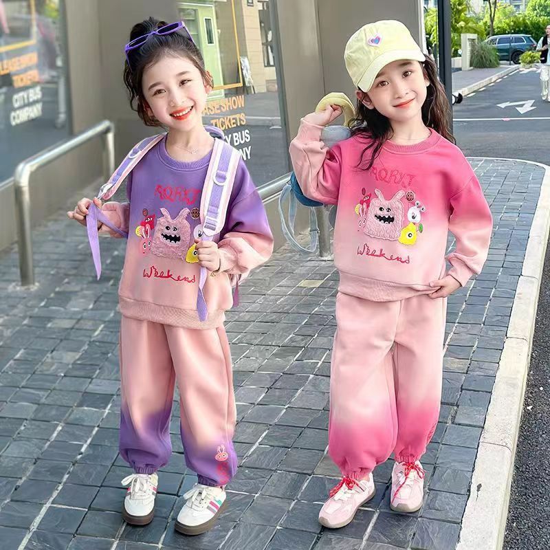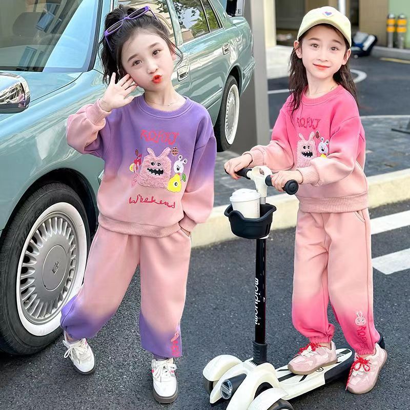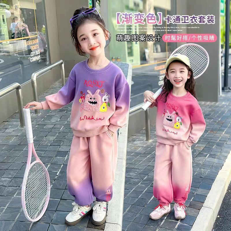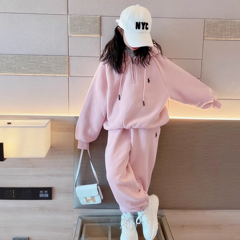 【สปอต】 3-14 ปี ฤดูใบไม้ร่วงและฤดูหนาวชุดสาว,Plush หนาเวอร์ชั่นเกาหลีเสื้อผ้าเด็ก,หญิงใหญ่กีฬาสองชิ้น