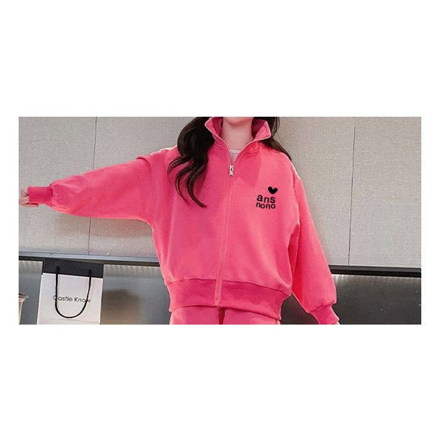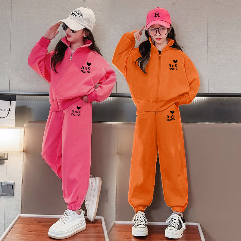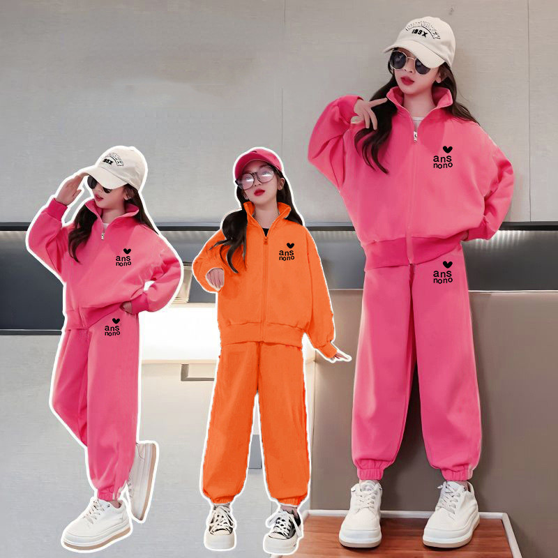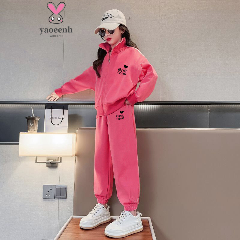 【YAOEENH】120-170เซนติเมตรฤดูใบไม้ร่วงฤดูหนาวสไตล์สาวยืนขึ้นปกชุดกีฬาลําลองกลางเด็กใหญ่หลวมซิปคาร์ดิแกนสูทสองชิ้นอ่าน