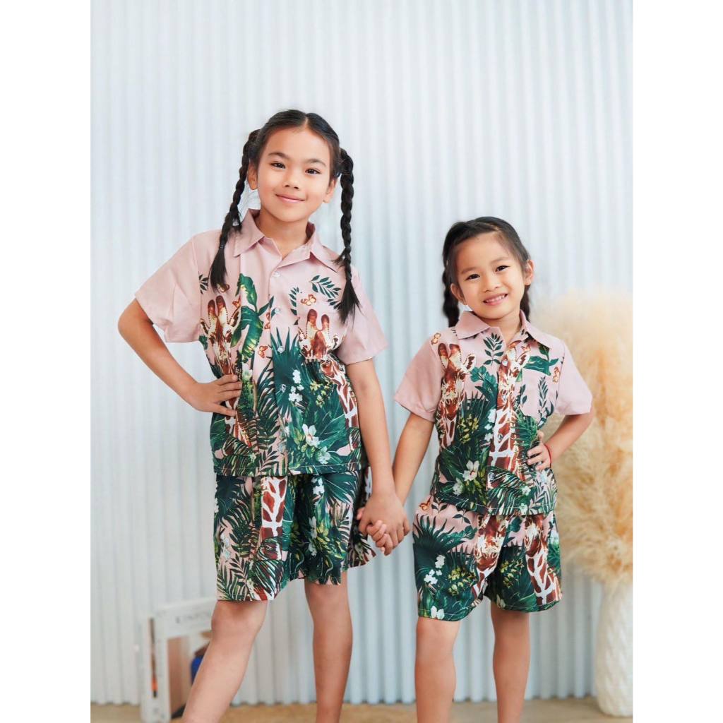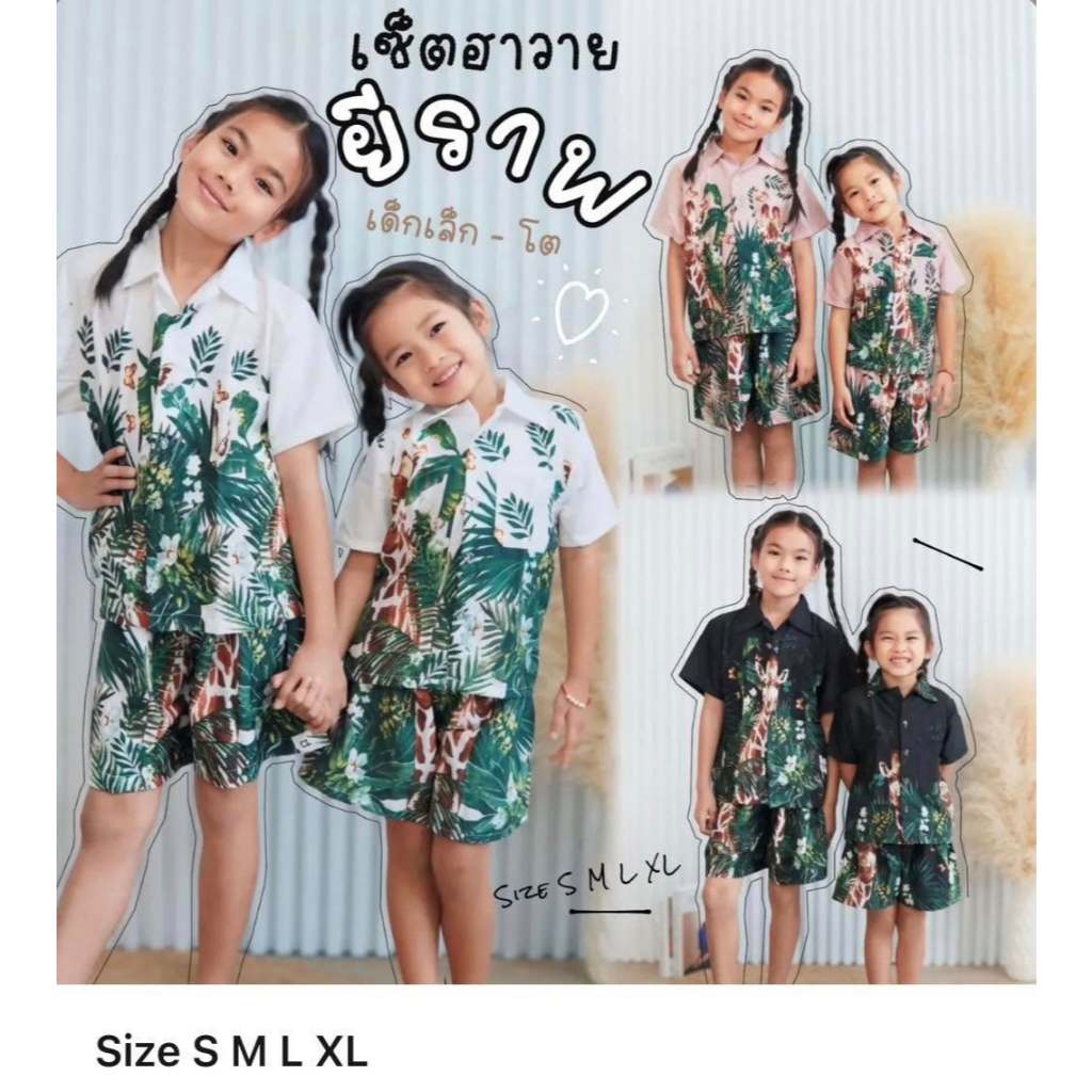 ⚡ร้านค้าส่งไว⚡ เสื้อฮาวาย+กางเกงขาสั้นเด็ก ?❤️ ลายยีราฟ?**แนะนำ+ไซส์**