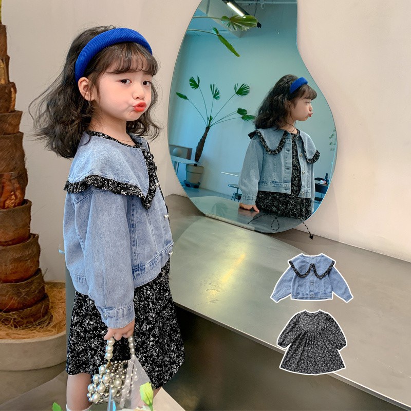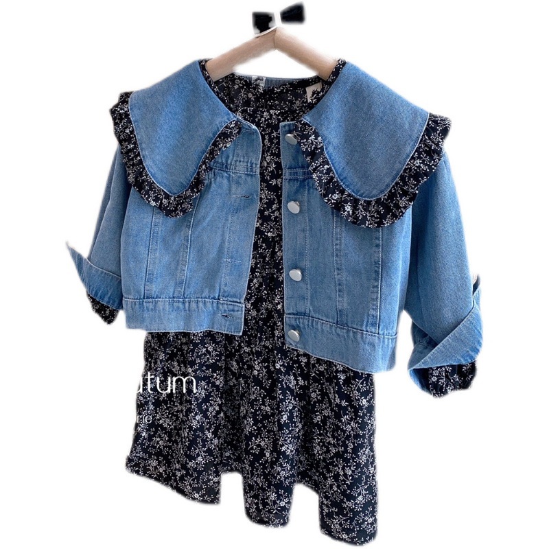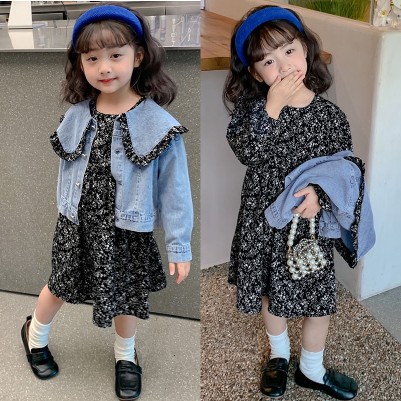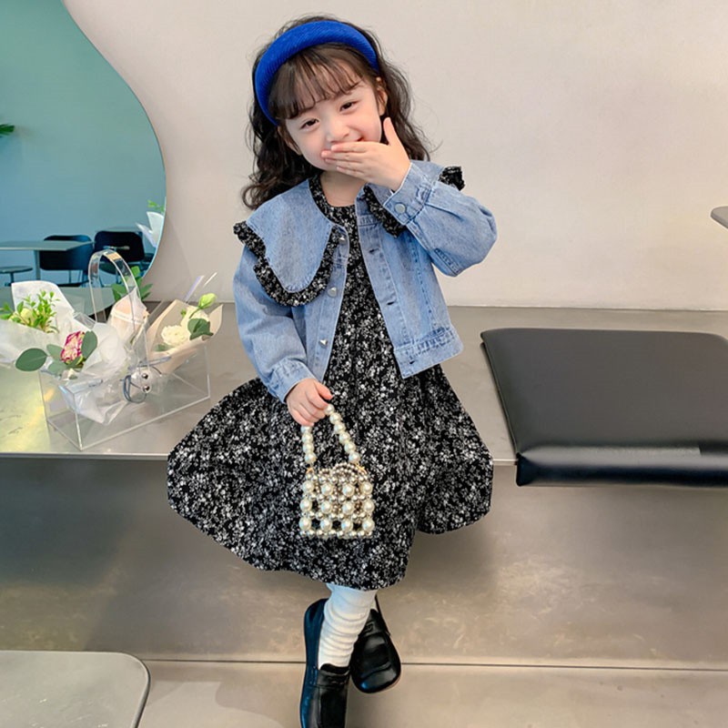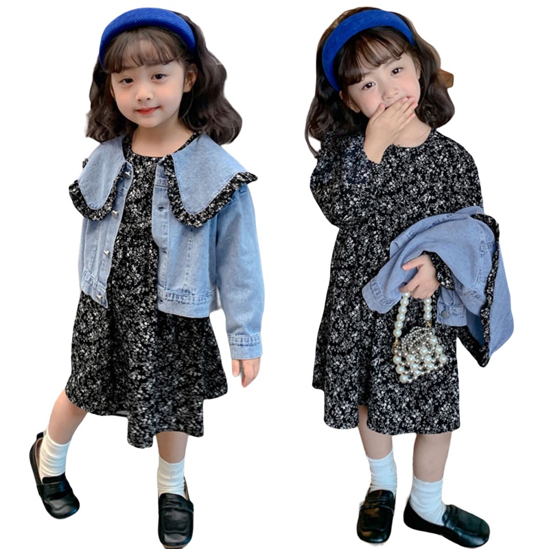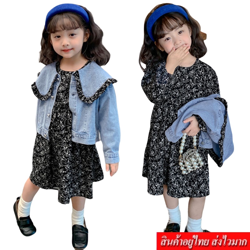 KIDSZONE ชุดเดรสกระโปรงเด็กผู้หญิง เซ็ต 2 ชิ้น ชุดกระโปรง+เสื้อแจ็คเก็ต รุ่น 23205