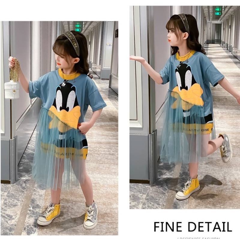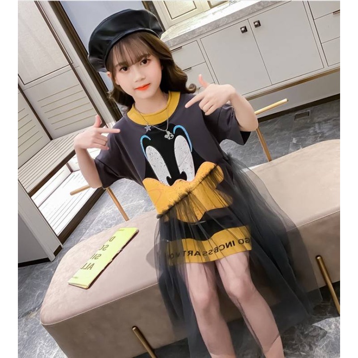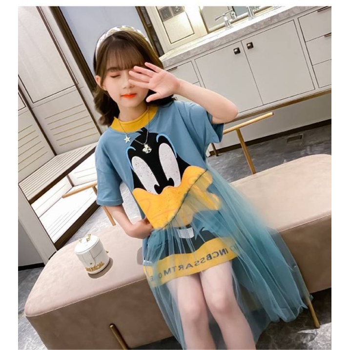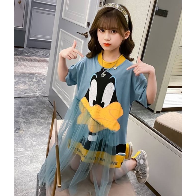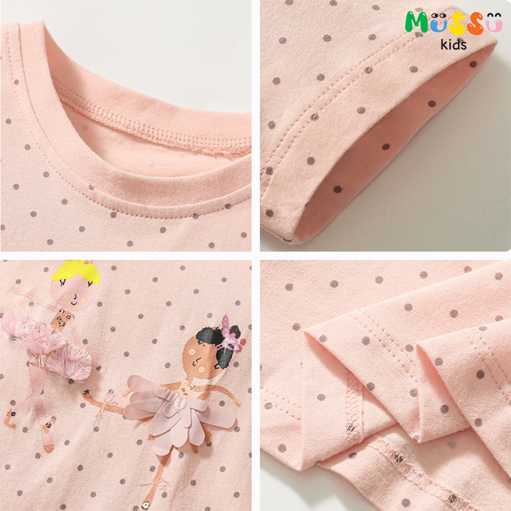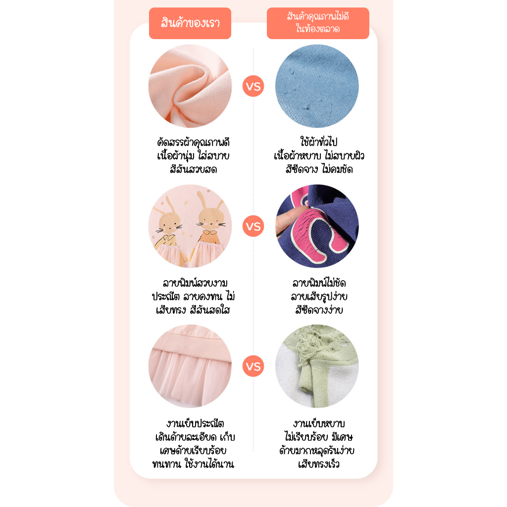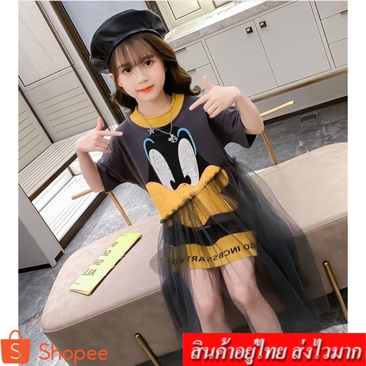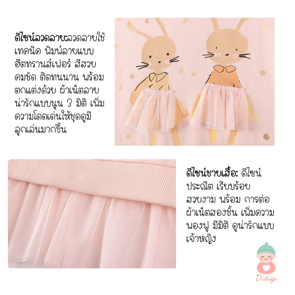 KIDSZONE ชุดกระโปรงแขนสั้น เสื้อผ้าเด็กหญิง เสื้อแขนสั้นต่อผ้ามุ้ง รุ่น A136