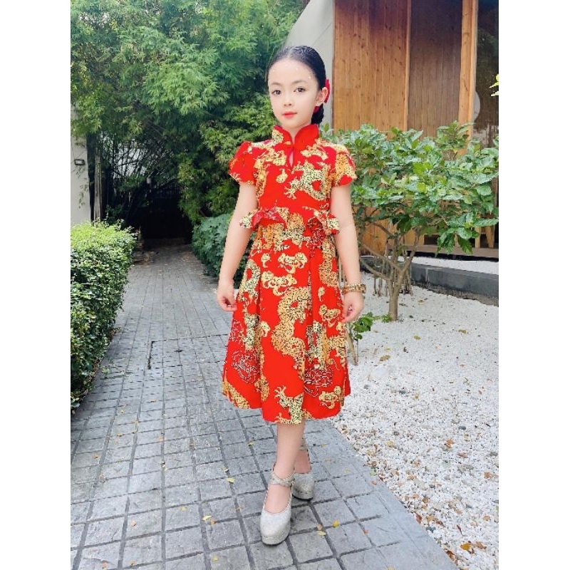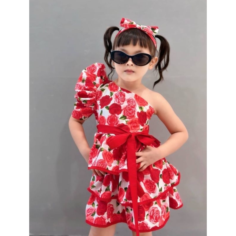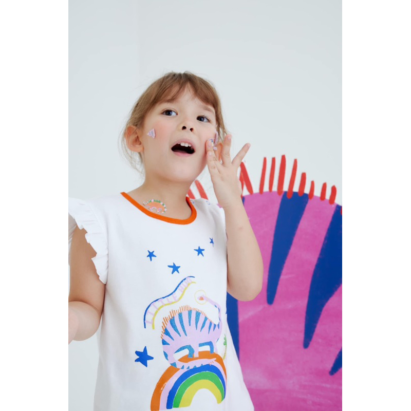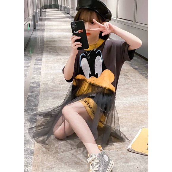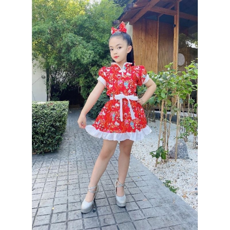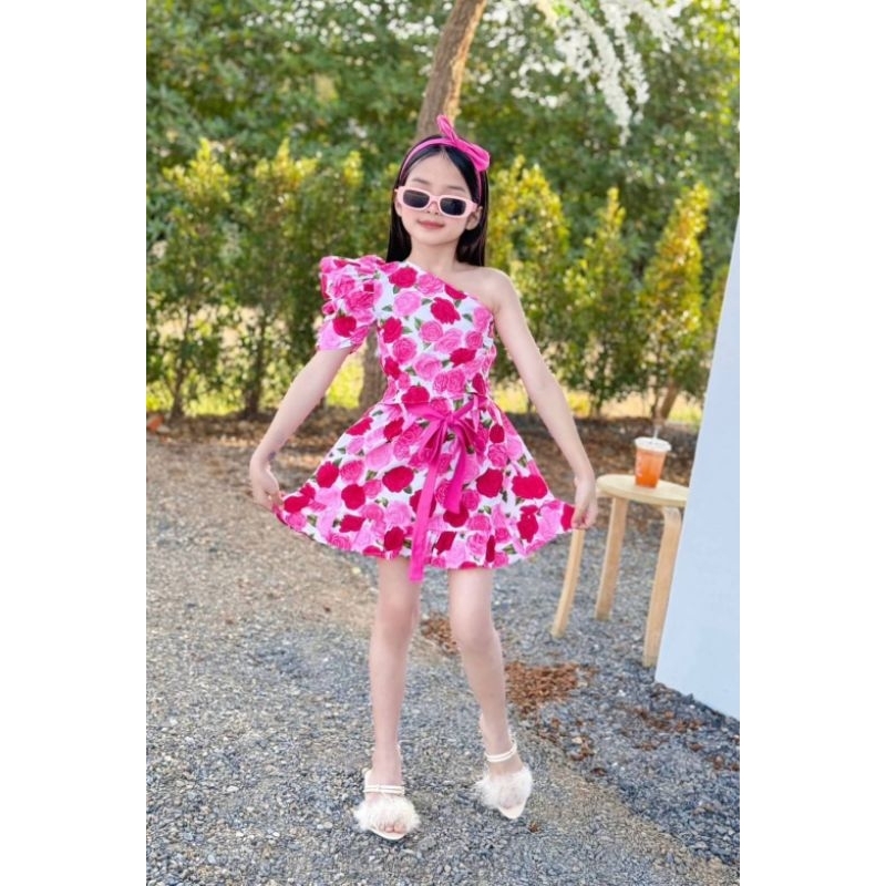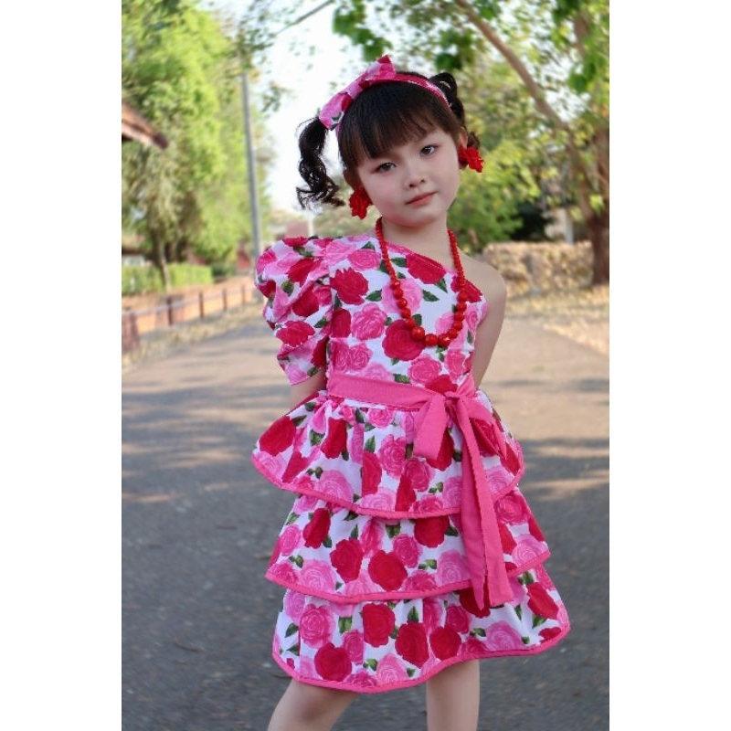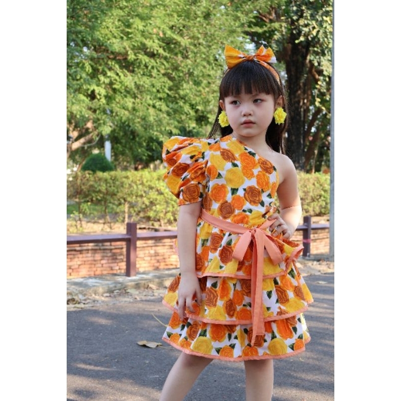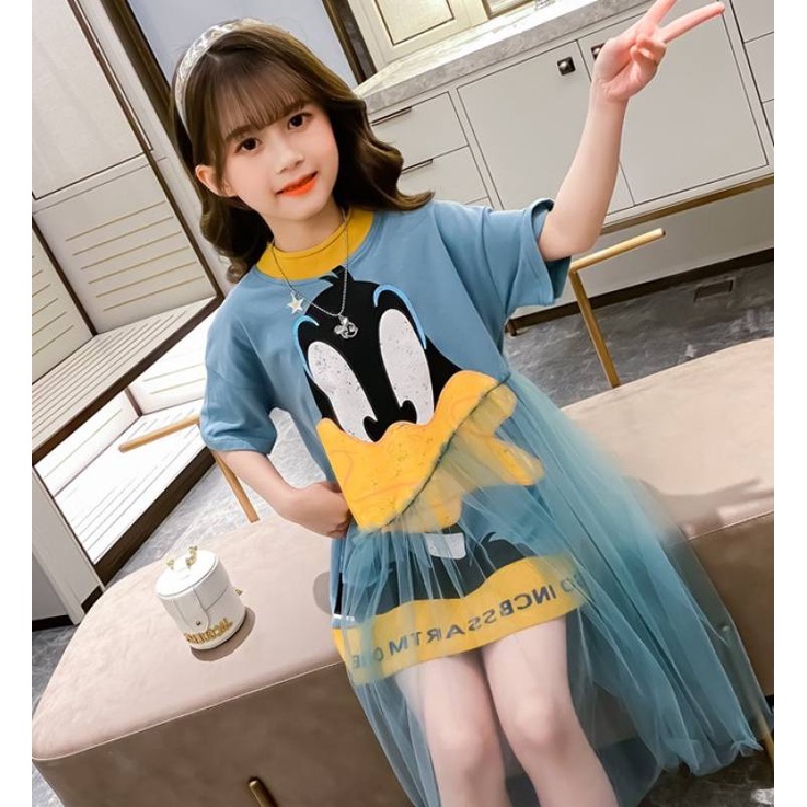 KIDSZONE ชุดกระโปรงแขนสั้น เสื้อผ้าเด็กหญิง เสื้อแขนสั้นต่อผ้ามุ้ง รุ่น A136