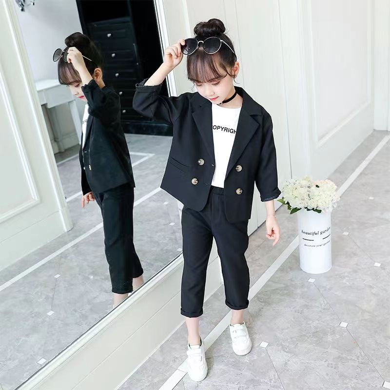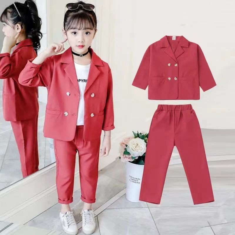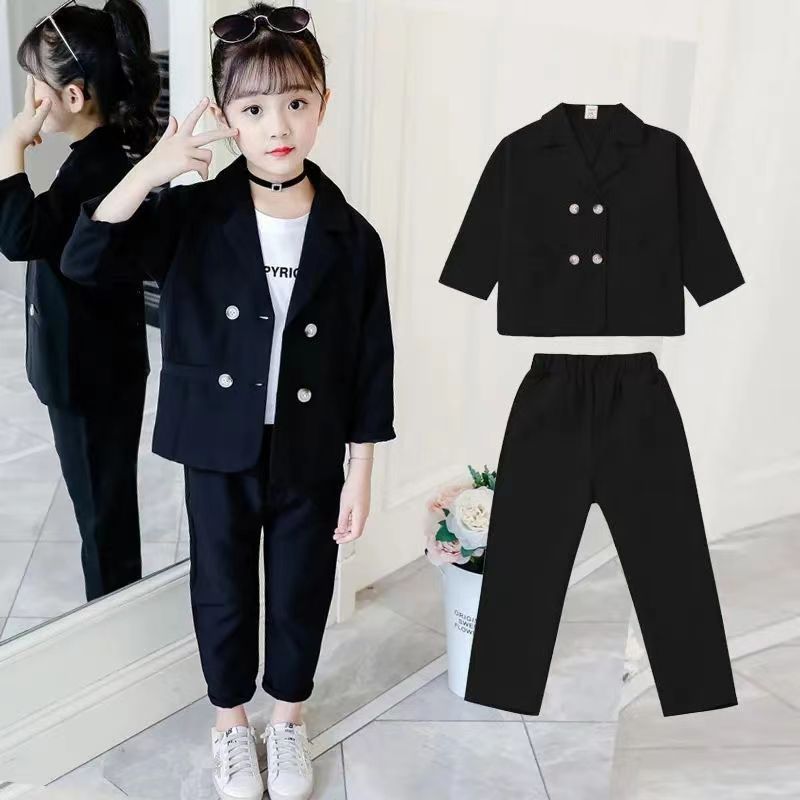 Lemon-tree ชุดสูท สองชิ้น แฟชั่นฤดูใบไม้ร่วง สไตล์เกาหลีตะวันตก สําหรับเด็กผู้หญิง อายุ 3-15 ปี
