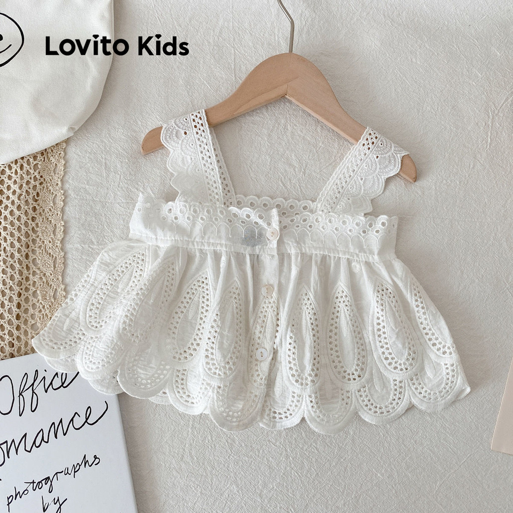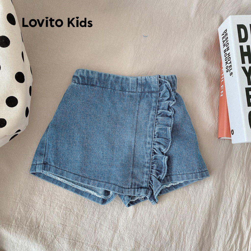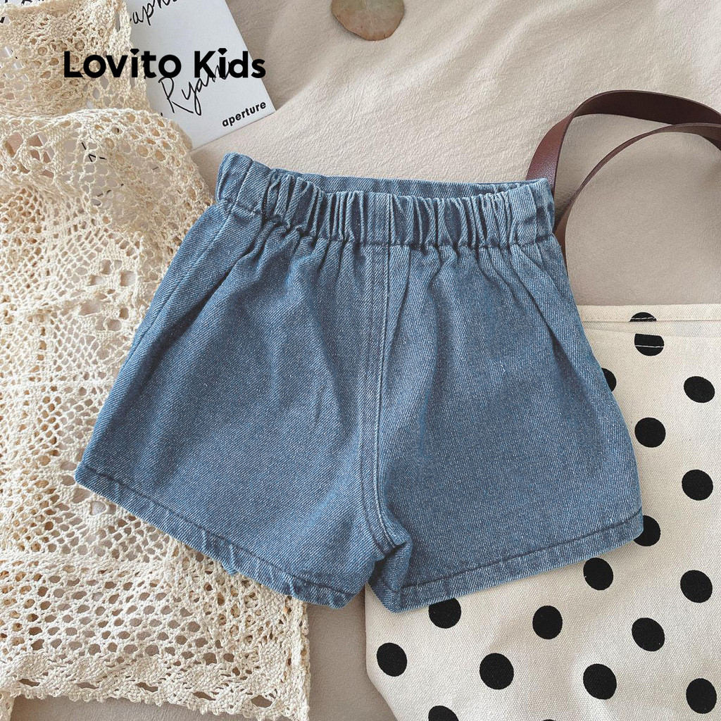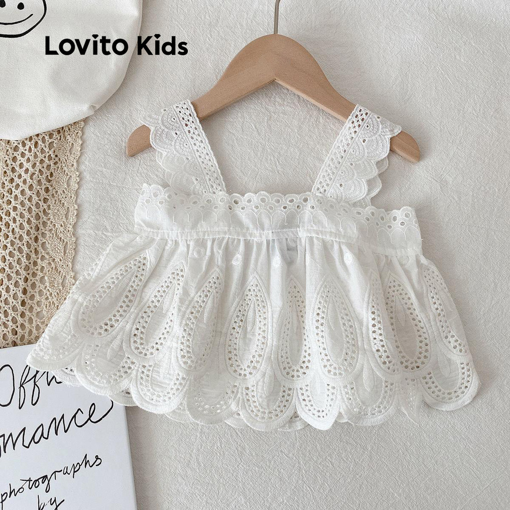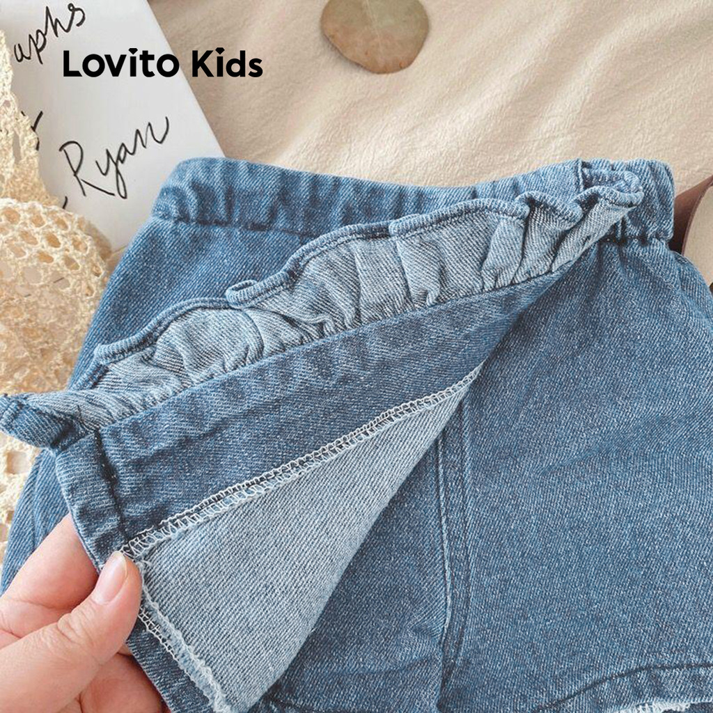 Lovito เด็ก ชุดเซ็ทขาสั้นน่ารัก แต่งลูกไม้ปัก สีตัดกัน LNL115047
