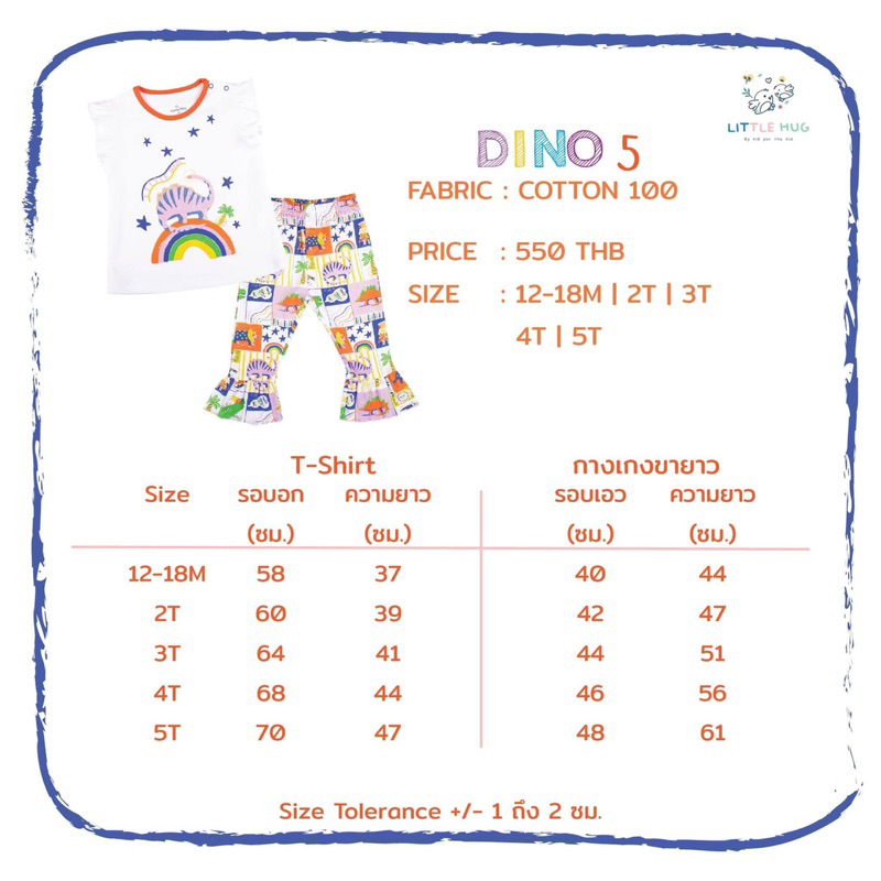 Little Hug เสื้อสกรีนลายไดโนเสาร์พร้อมเลคกิ้งขาระบาย (DP05)