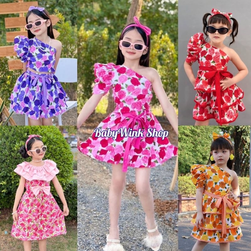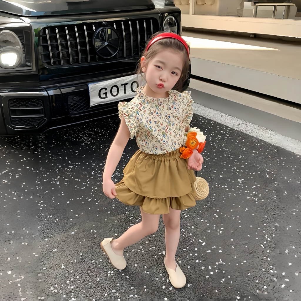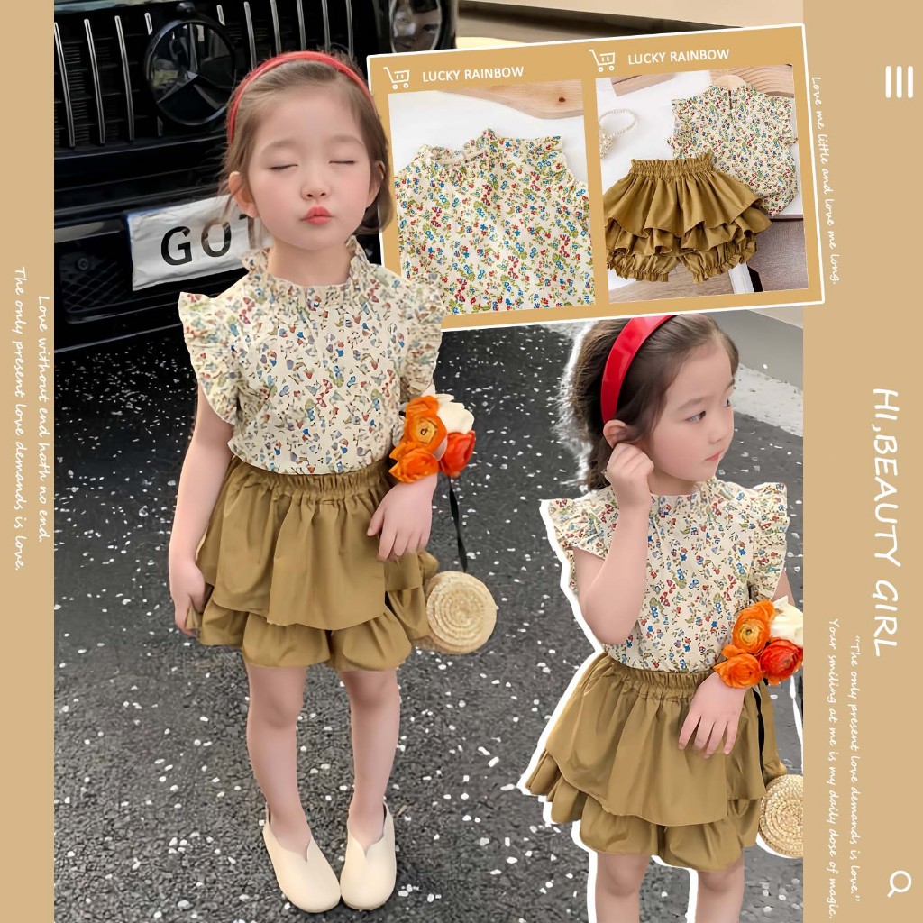 Lucky Rainbow ชุดเซ็ทกระโปรงเด็กผู้หญิงมาใหม่ ชุดเซ็ทเด็กผู้หญิง เสื้อ+กระโปรงกางเกง ชุดสำหรับเด็กผู้หญิง 2-12 ปี