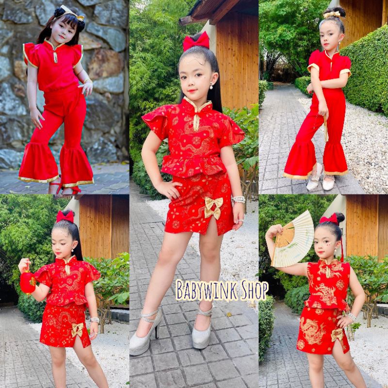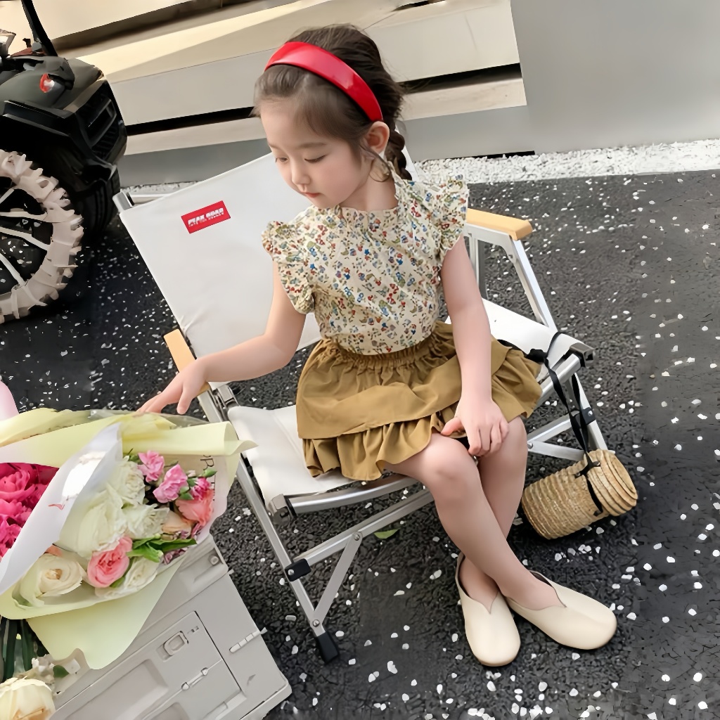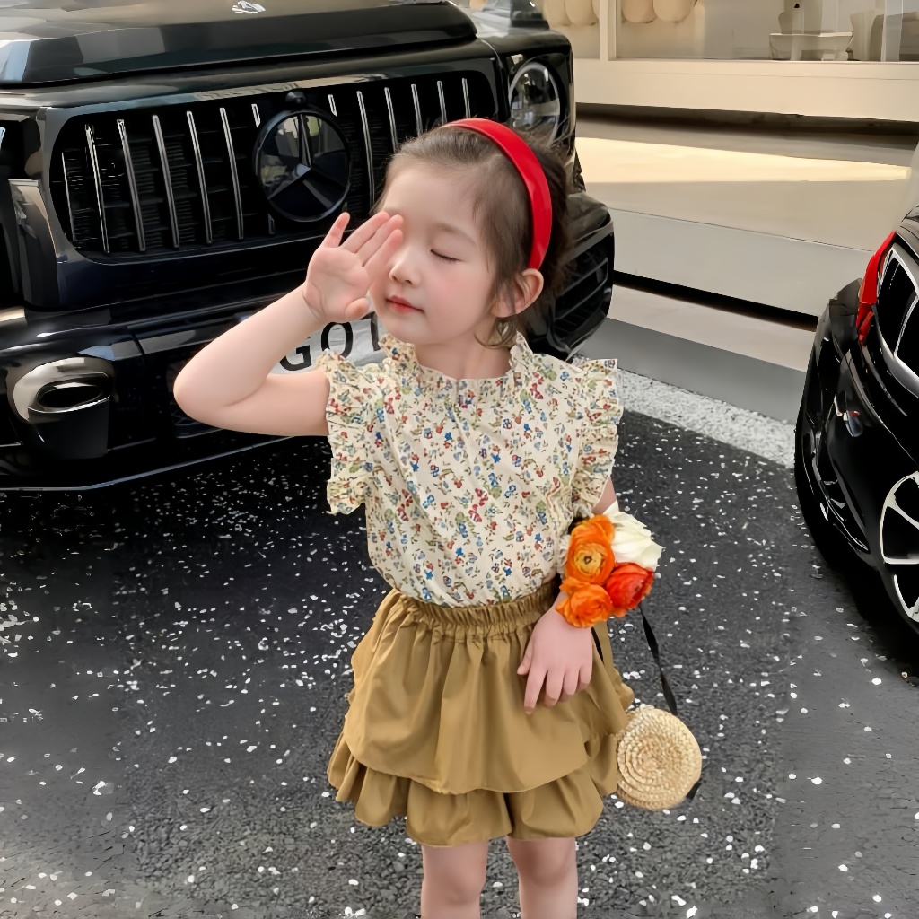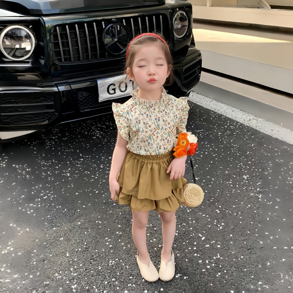 Lucky Rainbow ชุดเซ็ทกระโปรงเด็กผู้หญิงมาใหม่ ชุดเซ็ทเด็กผู้หญิง เสื้อ+กระโปรงกางเกง ชุดสำหรับเด็กผู้หญิง 2-12 ปี