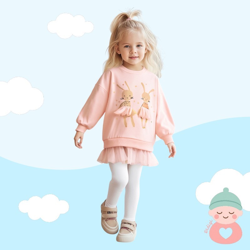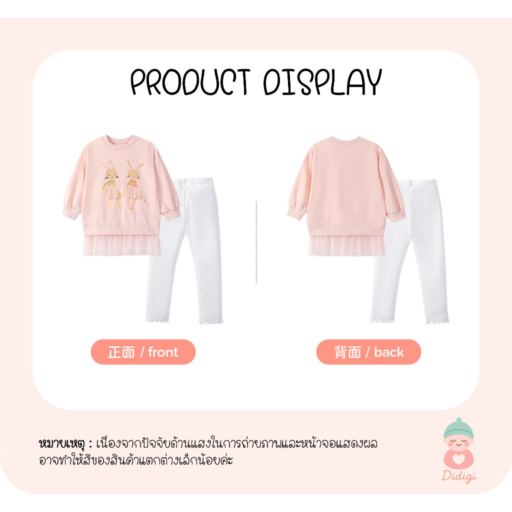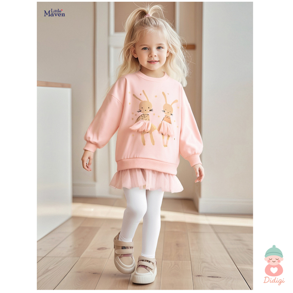 Little Maven ชุดเซ็ตเด็กผู้หญิง เสื้อแขนยาว กางเกงขายาว ลายกระต่าย สีชมพู ขาว