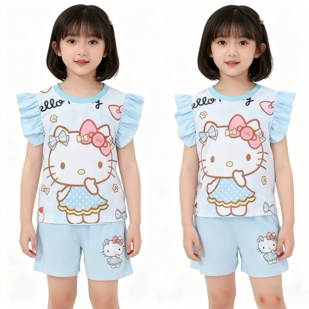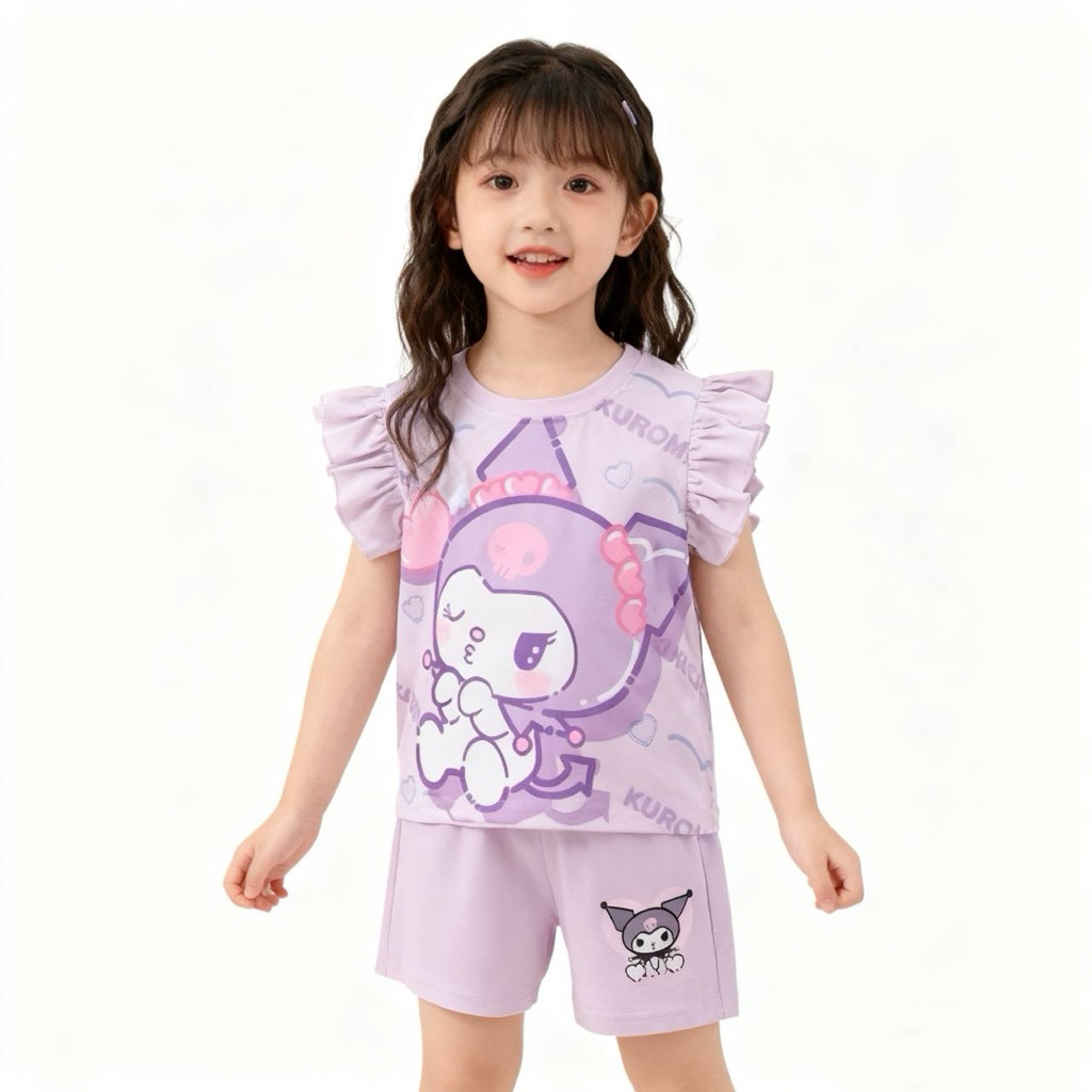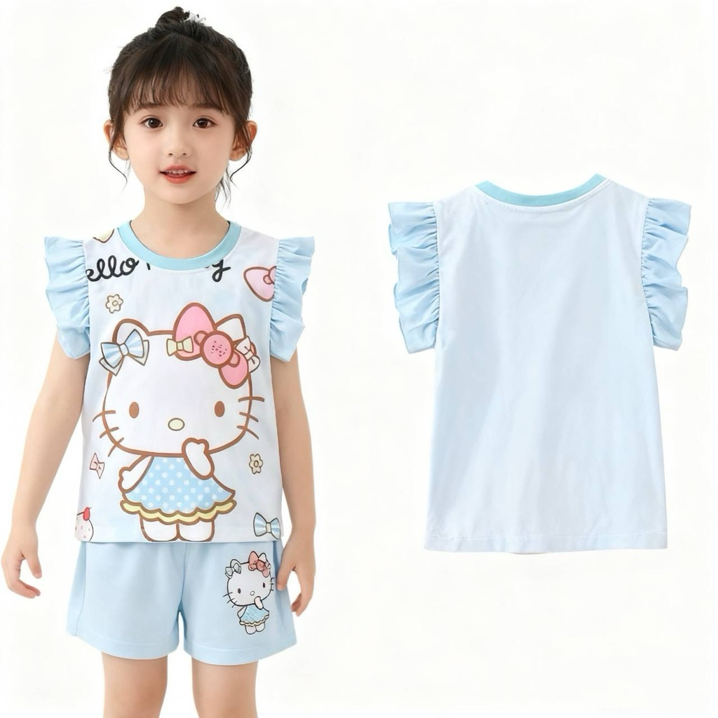 MC080 ชุดเด็ก ชุดแขนสั้นเด็ก ผ้านิ่มเด้ง คอลเลคชั่นใหม่เสื้อแขนสั้นพิมพ์ลายการ์ตูนน่ารัก แขนปีกนก