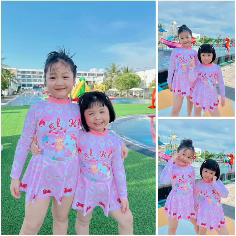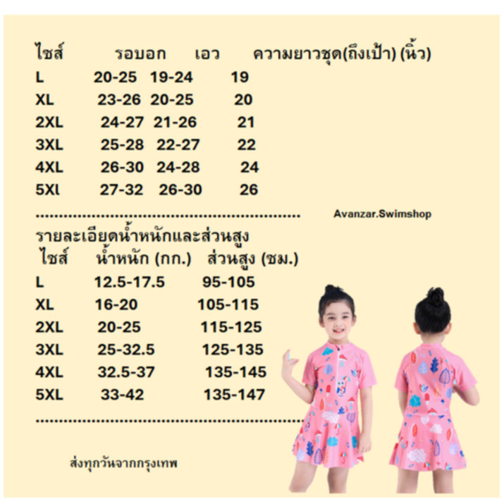 ชุดว่ายน้ำเด็กผู้หญิง 4-17 ปี ลายน่ารัก ??พร้อมส่งในไทย?? ใส่เที่ยวทะเล ใส่สบาย ผ้ายึดได้ดี SEA