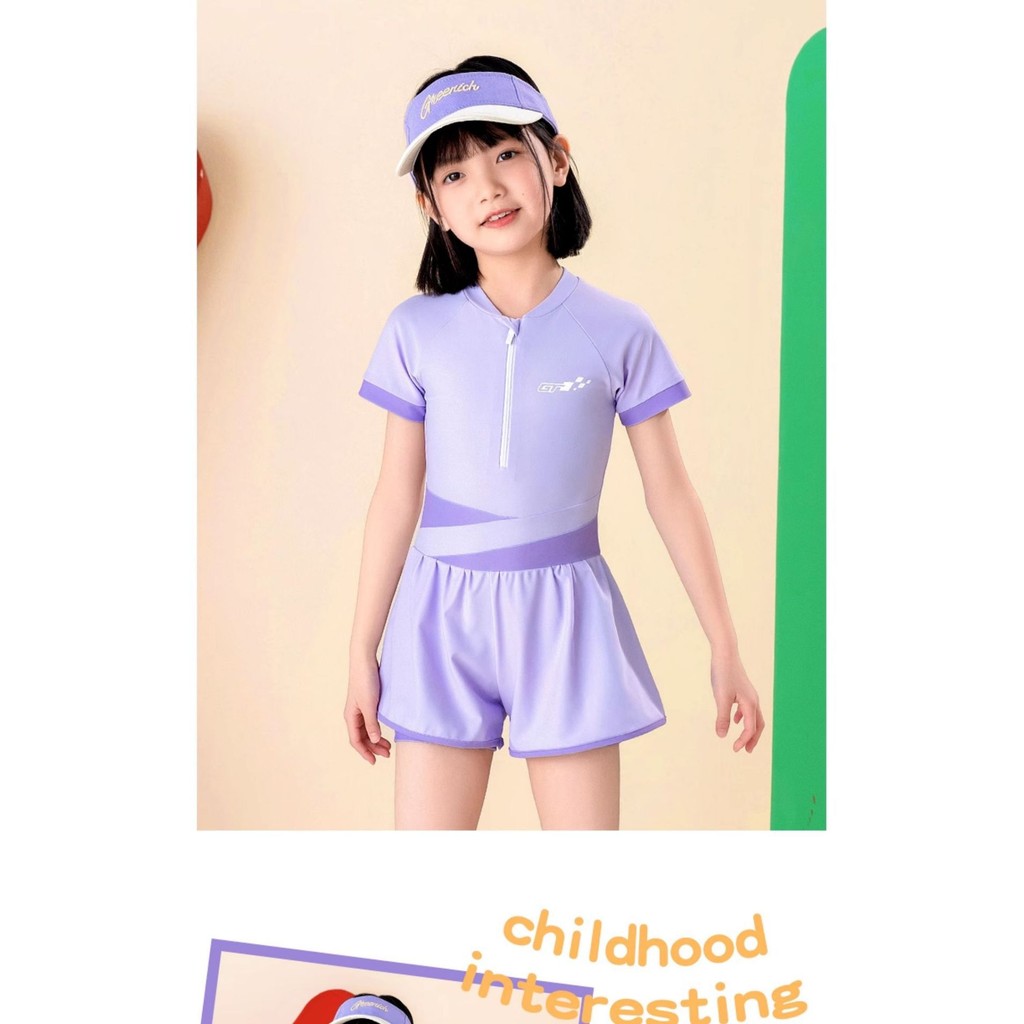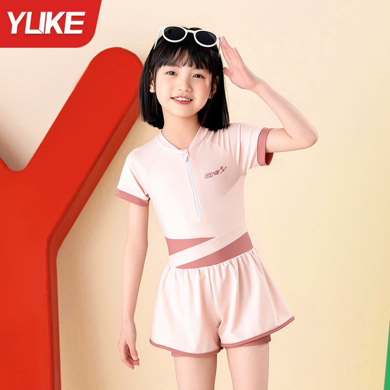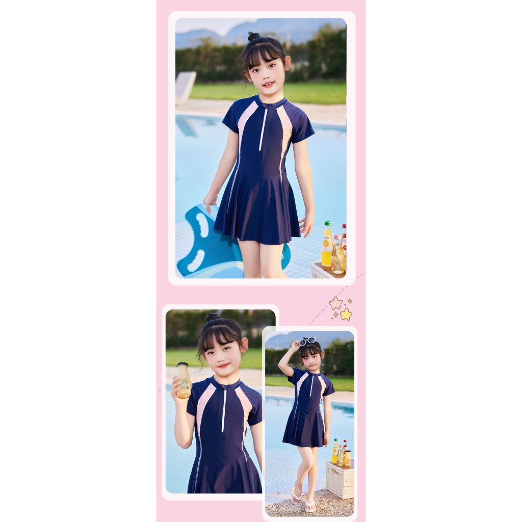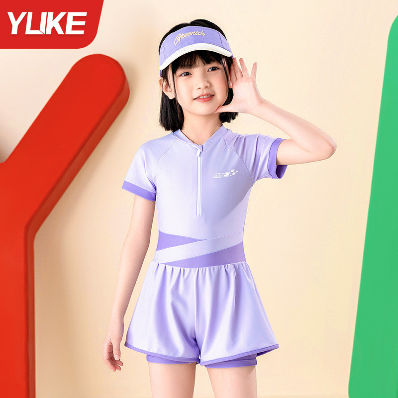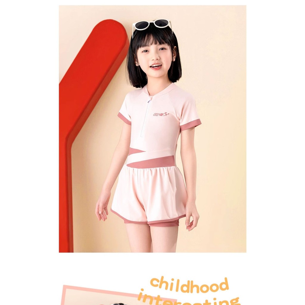 เด็กเด็กชุดว่ายน้ําชิ้นเดียวสาวสไตล์ใหม่นักเรียนมัธยมต้นอนุรักษ์นิยมครีมกันแดดแห้งเร็วว่ายน้ําสาวกลางเด็กใหญ่ชุดว่ายน้ํา