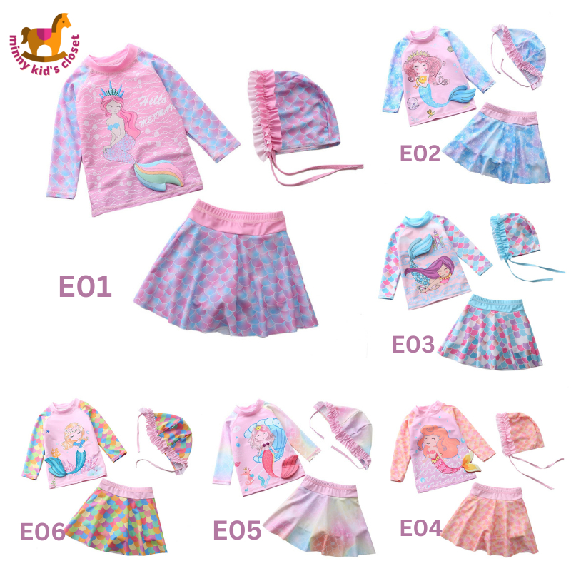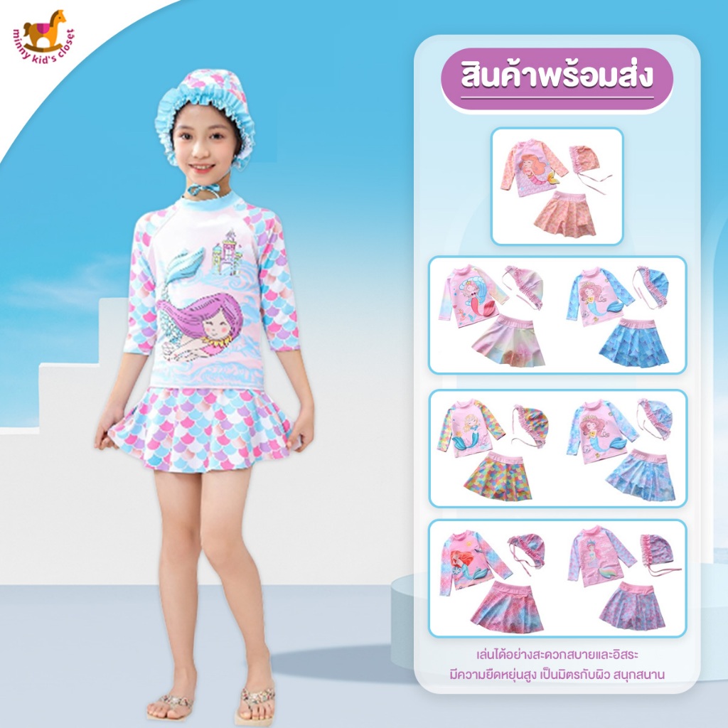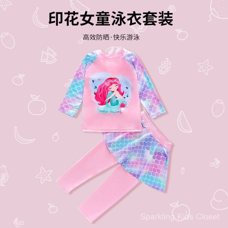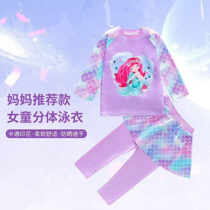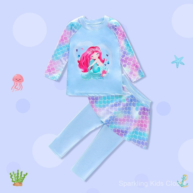 ชุดว่ายน้ำเด็ก, เสื้อแขนยาวเด็กผู้หญิง, ชุดว่ายน้ำกันแดด, ชุดว่ายน้ำนางเงือกสำหรับเด็กผู้หญิงแห้งเร็ว