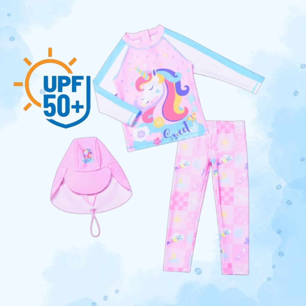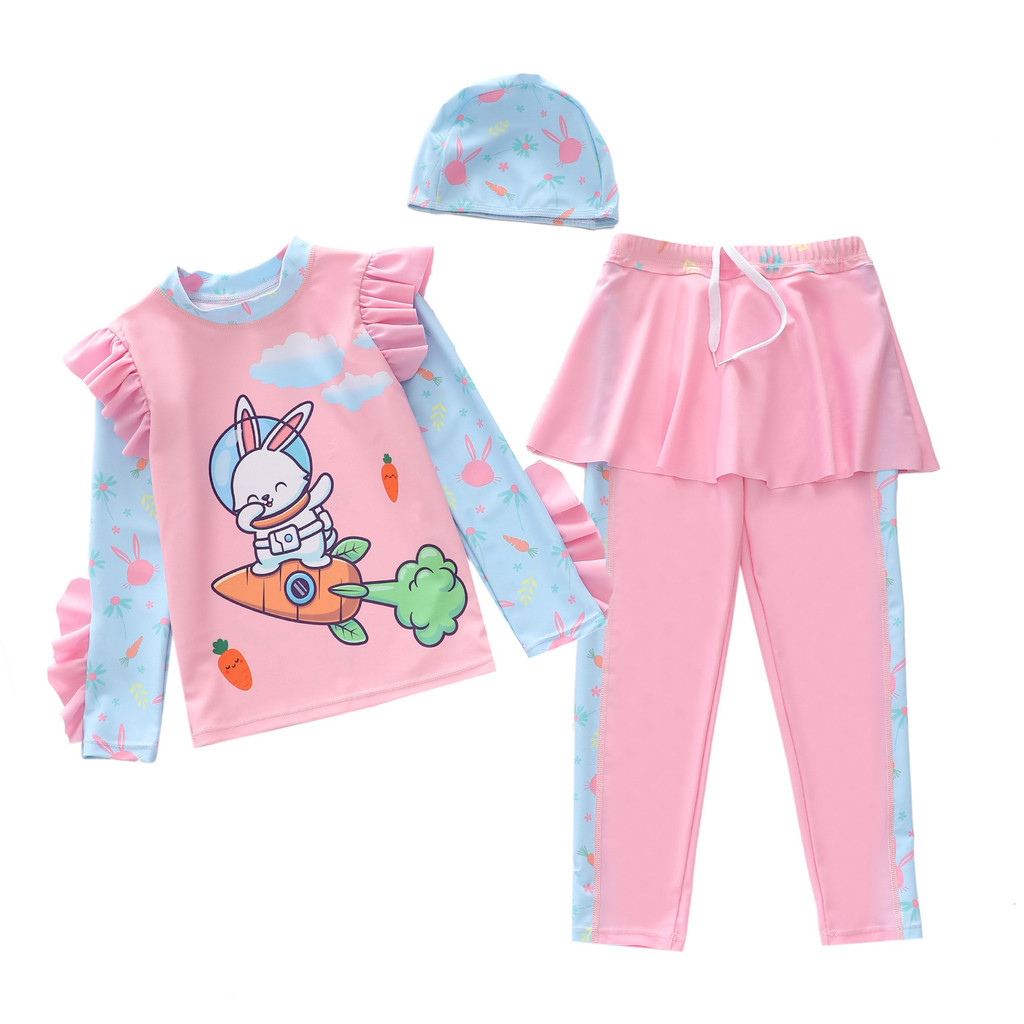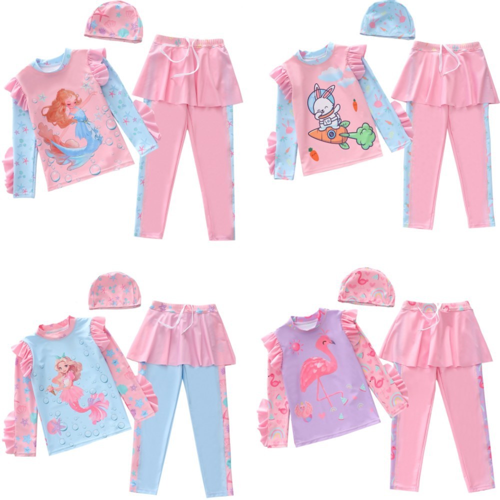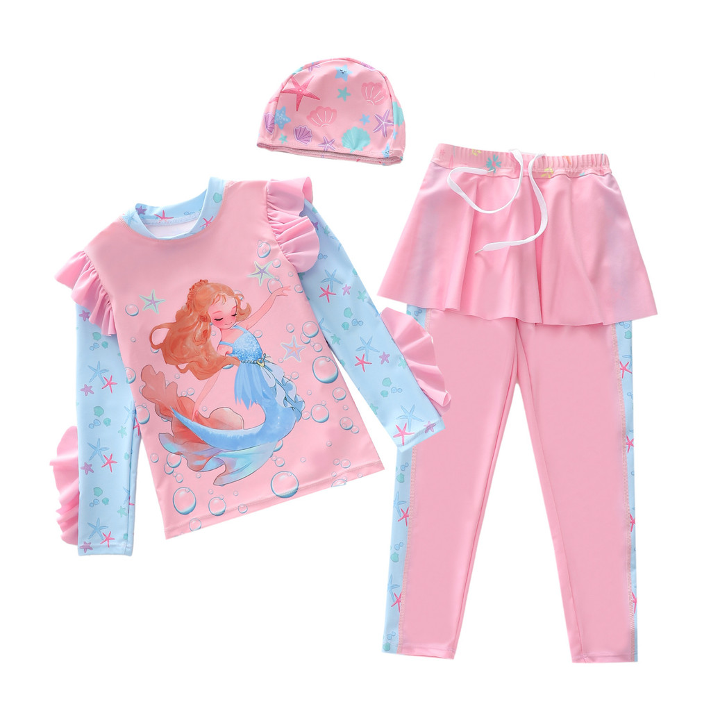 ชุดว่ายน้ำเด็กหญิง 3 ชิ้น แขนยาว กางเกงยาว สไตล์เกาหลี ป้องกันแสงแดด แห้งเร็ว ระบายอากาศได้ดี สำหรับเด็กอายุ 3-12 ปี เหมาะสำหรับใส่ว่ายน้ำและใส่ที่ชายหาดในฤดูร้อน