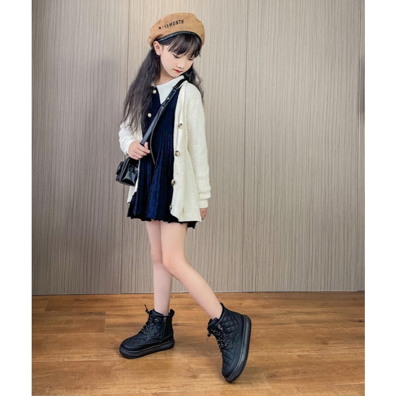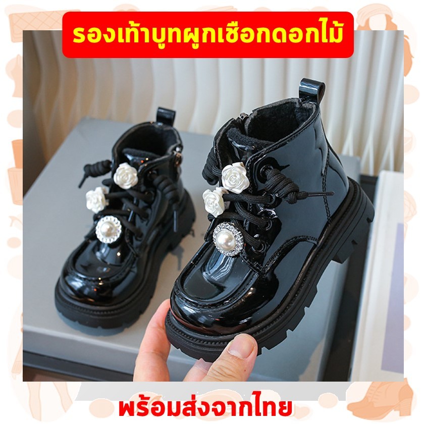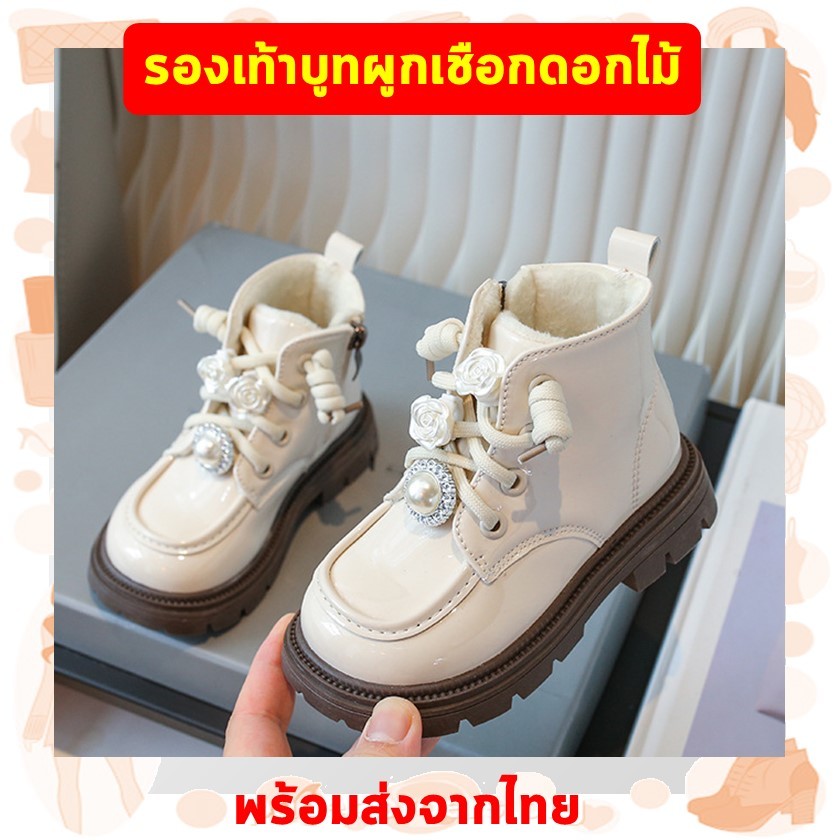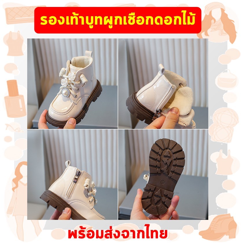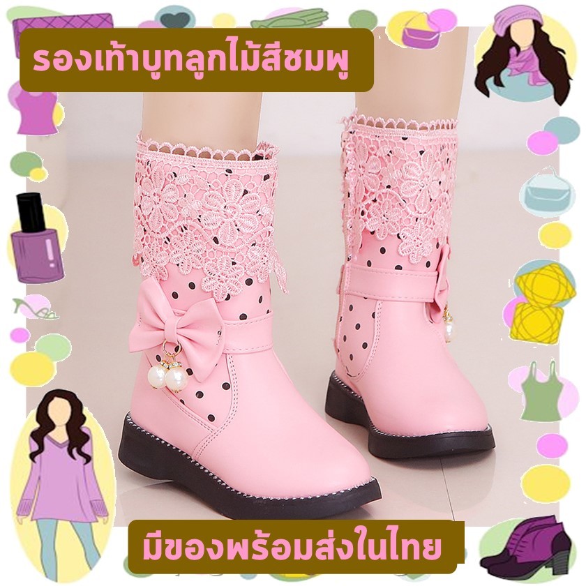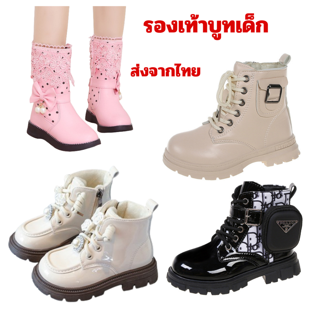 พร้อมส่งจากไทย รองเท้าบูทเด็กผู้หญิง สีชมพู สีครีม สีดำ แฟชั่น K-pop Cover Dance