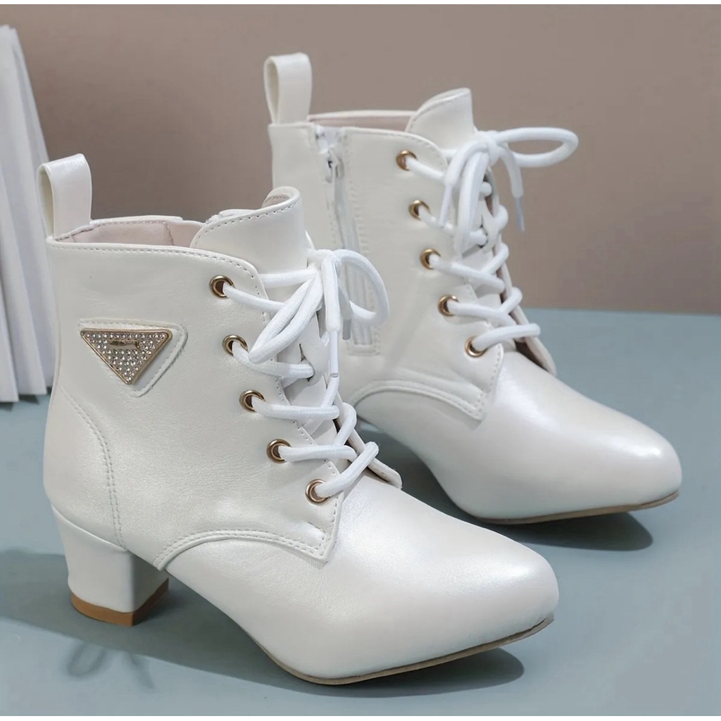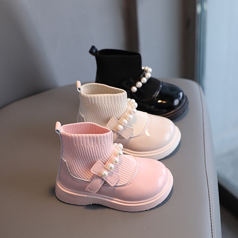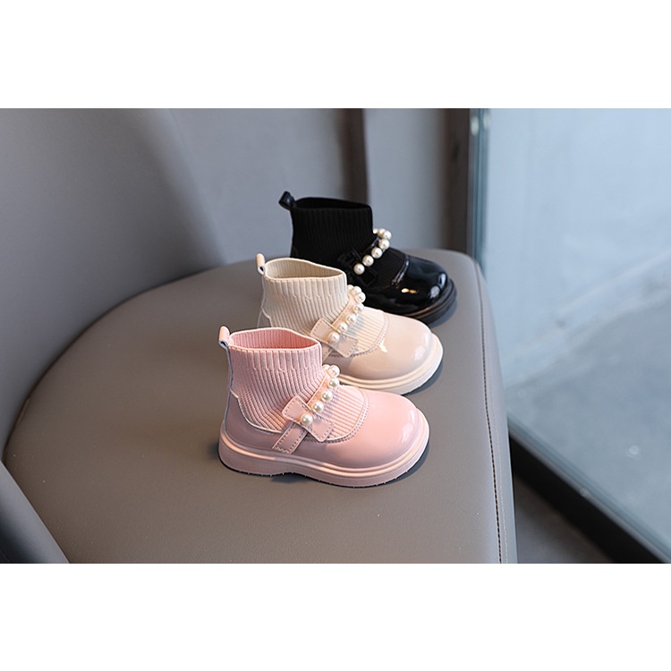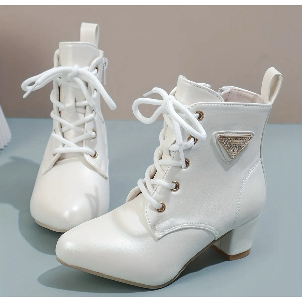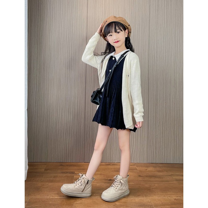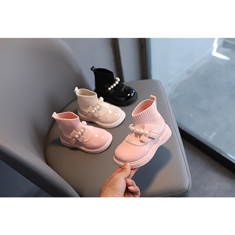พร้อมส่งจากไทย รองเท้าบูทเด็กผู้หญิง สีชมพู สีครีม สีดำ แฟชั่น K-pop Cover Dance