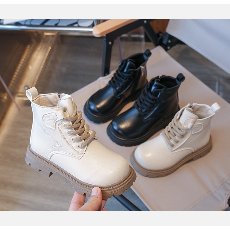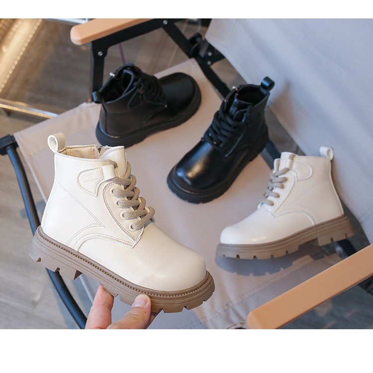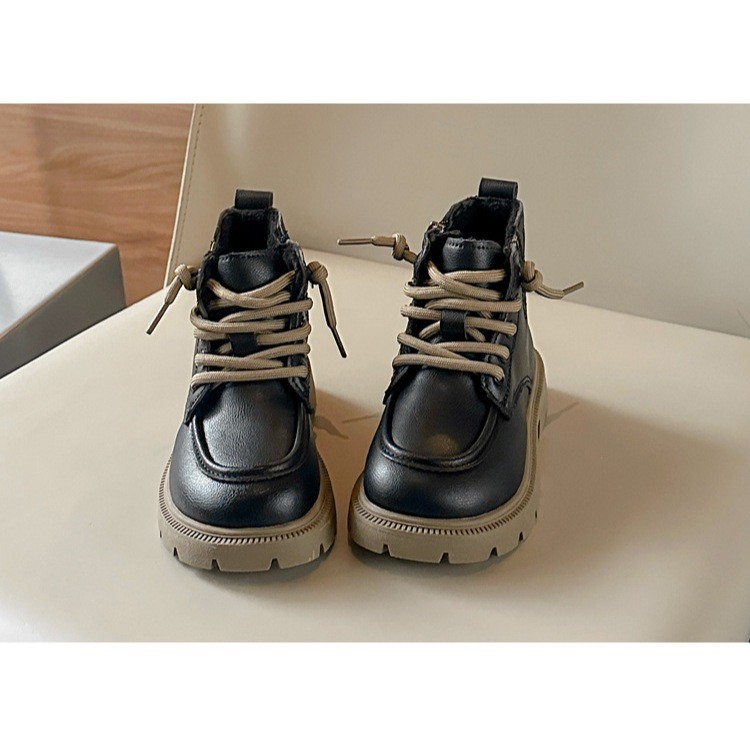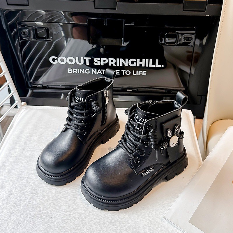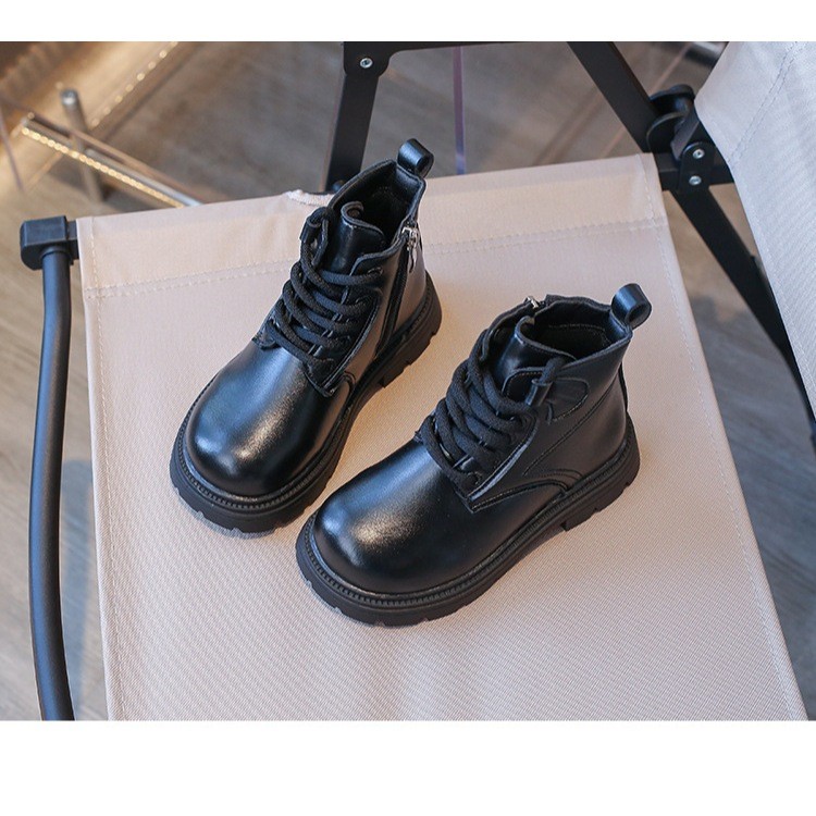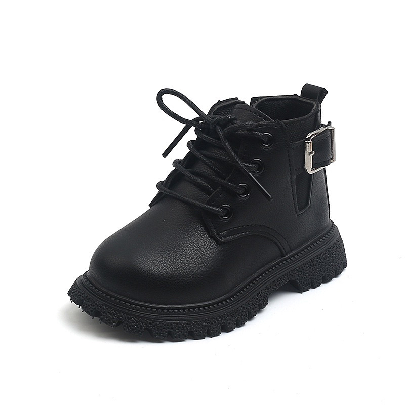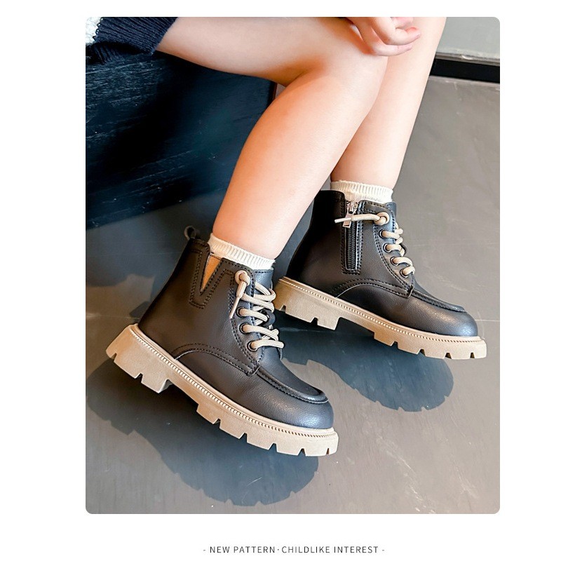 JUTSL แฟชั่นเด็กสั้นรองเท้าบูทมาร์ตินรองเท้าลูกไม้สบายรองเท้าหนังน้ำหนักเบา