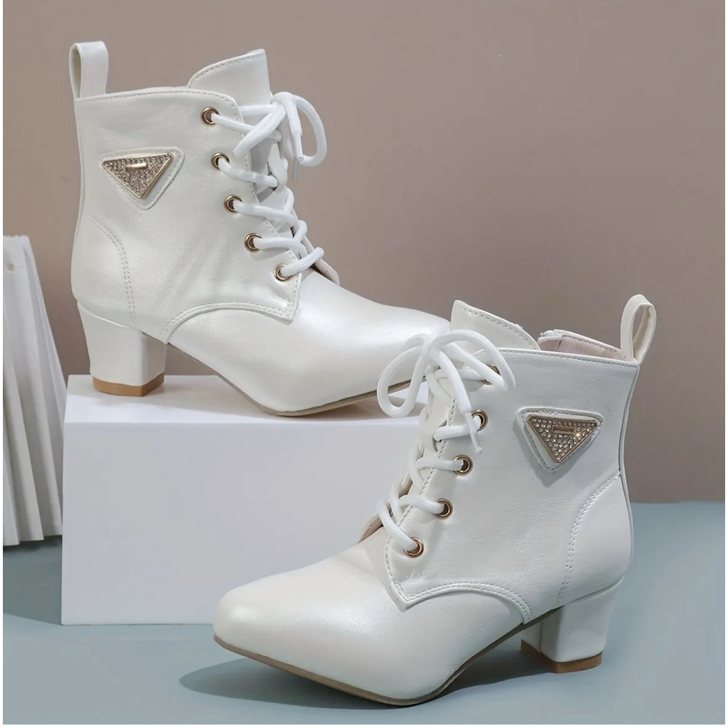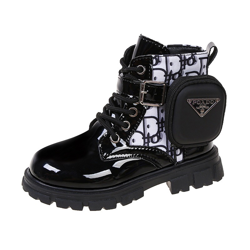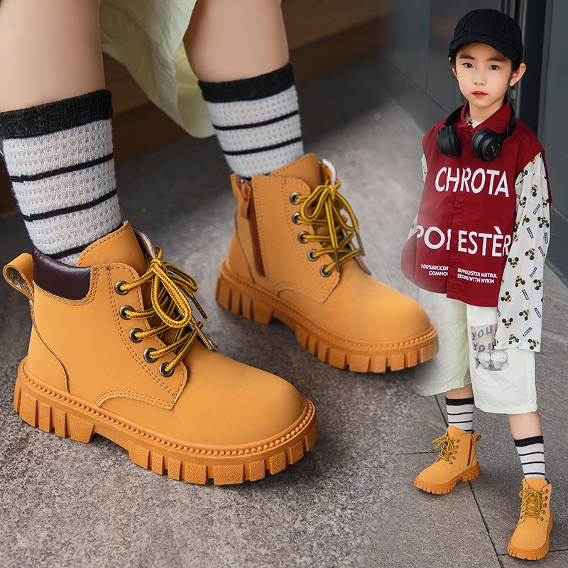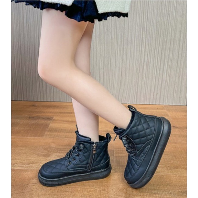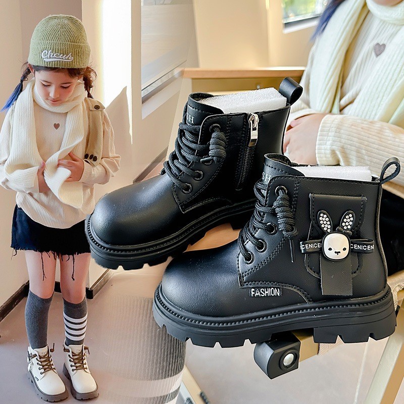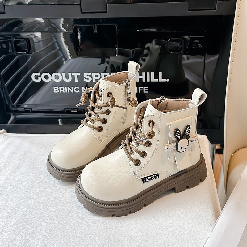 JUTSL แฟชั่นเด็กสั้นรองเท้าบูทมาร์ตินรองเท้าลูกไม้สบายรองเท้าหนังน้ำหนักเบา
