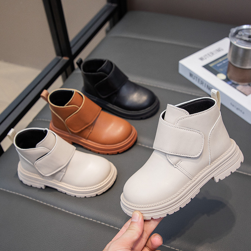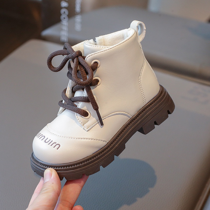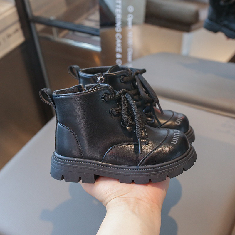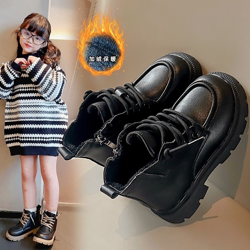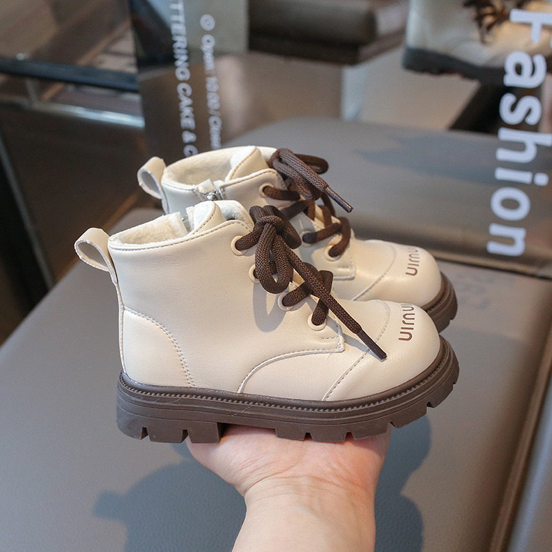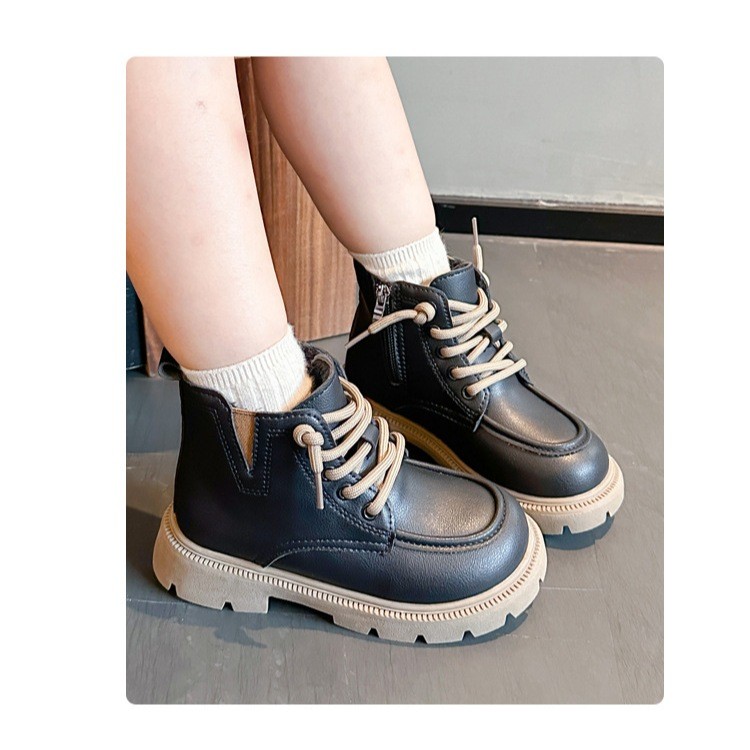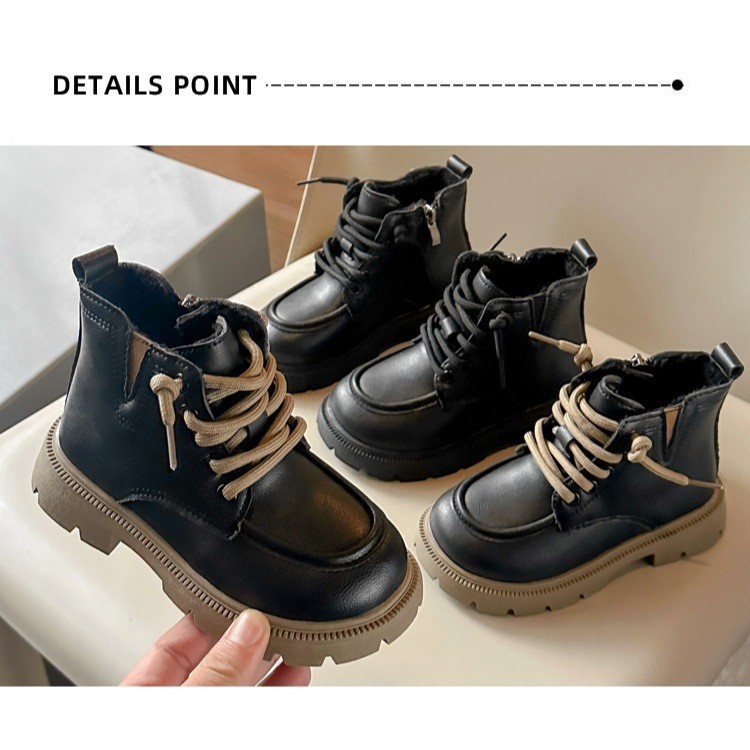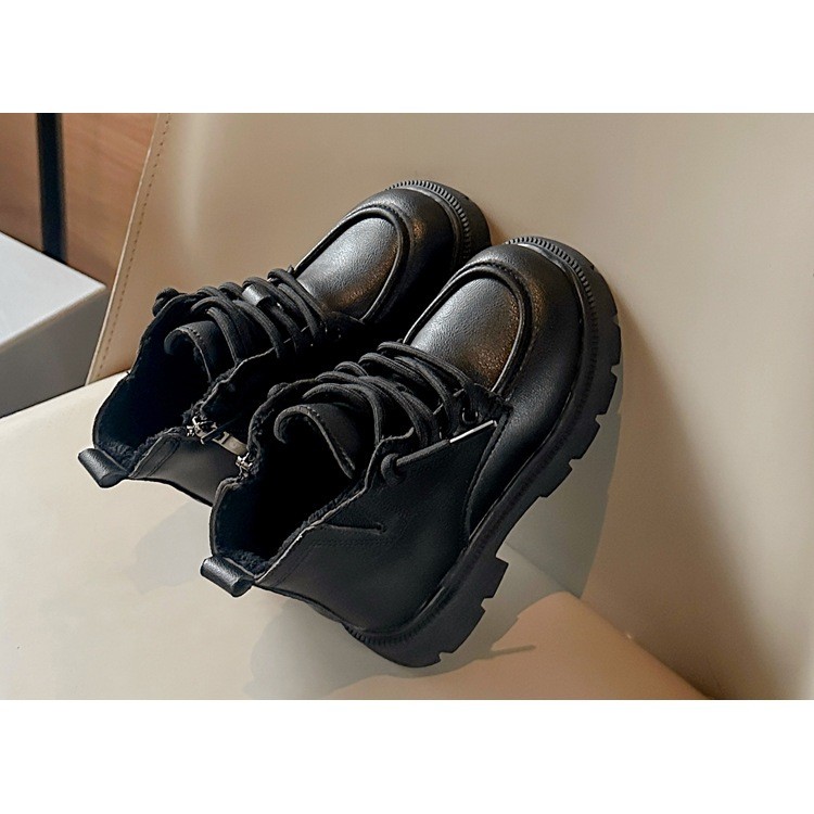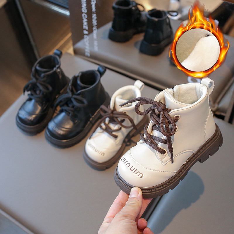 รหัส 1421 ❤️ส่งจากไทย ส่งไว ทันใจ ❤️รองเท้าบูทหนังเด็กข้อสั้นบุขน ใส่อุ่น เป็นงานนำเข้าจากเกาหลี