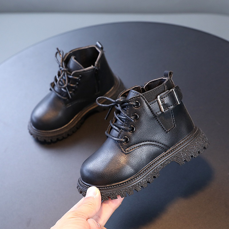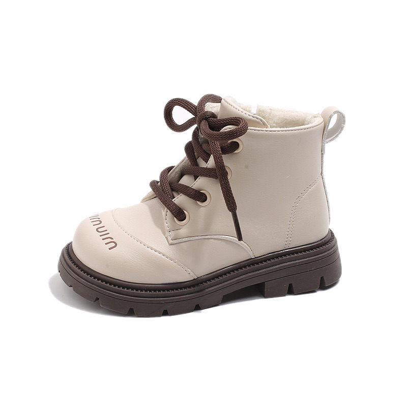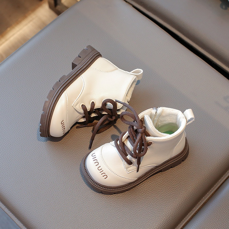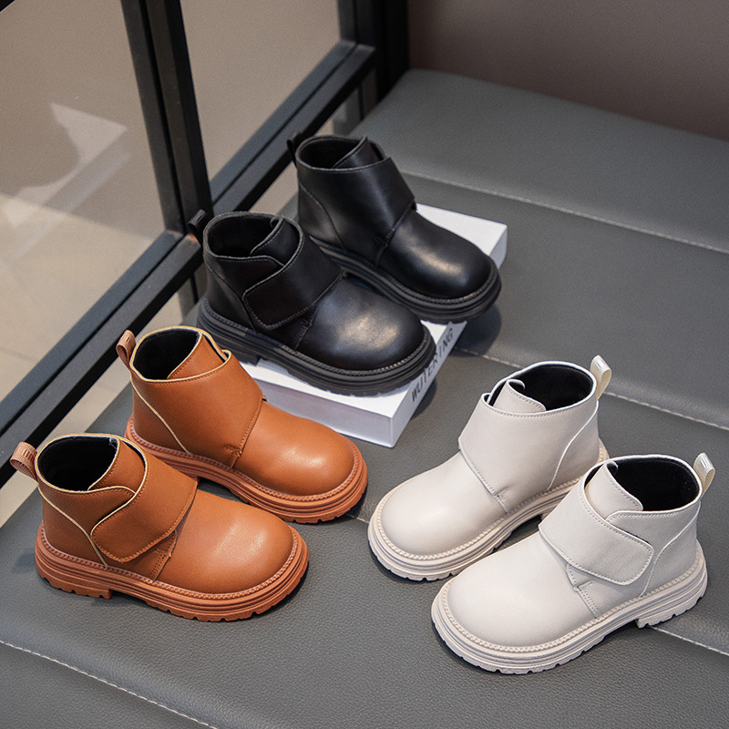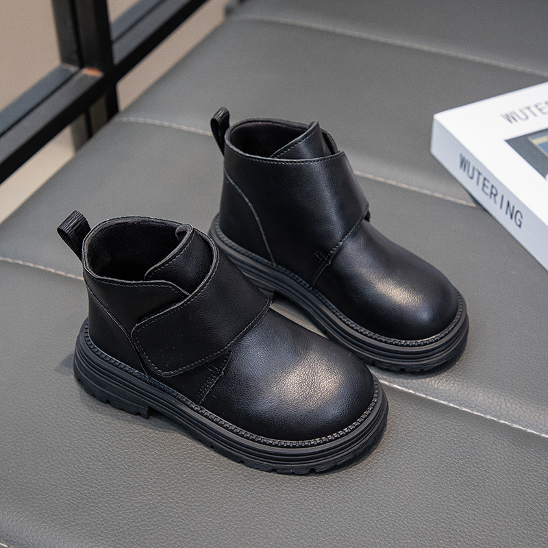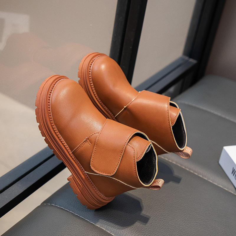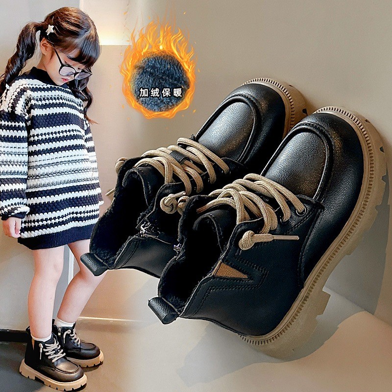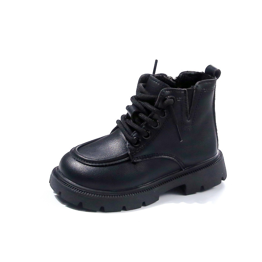 รหัส 1421 ❤️ส่งจากไทย ส่งไว ทันใจ ❤️รองเท้าบูทหนังเด็กข้อสั้นบุขน ใส่อุ่น เป็นงานนำเข้าจากเกาหลี