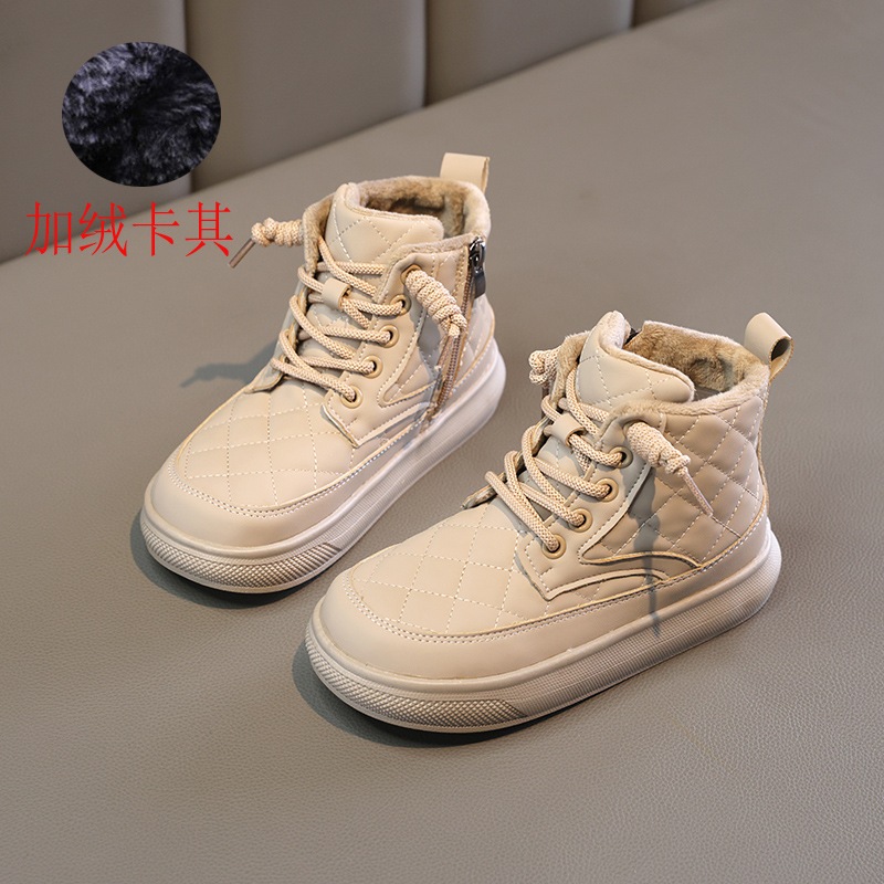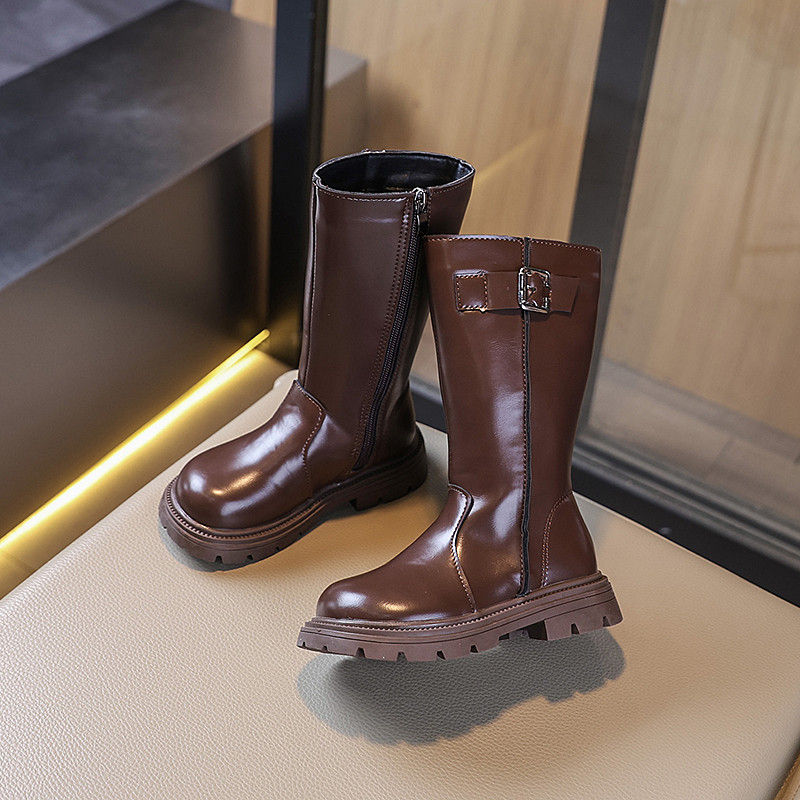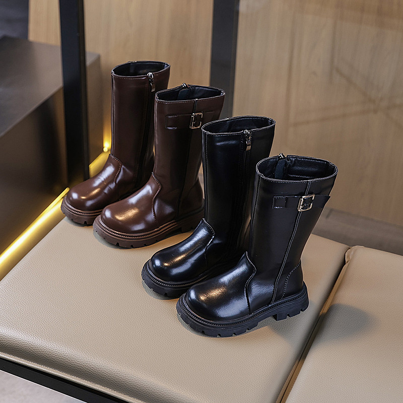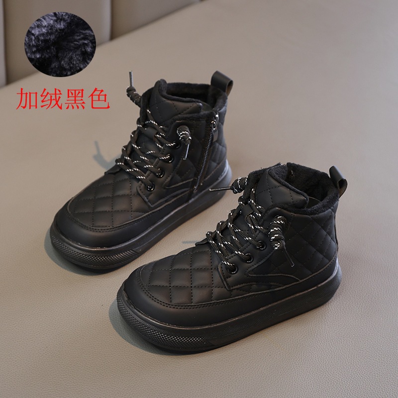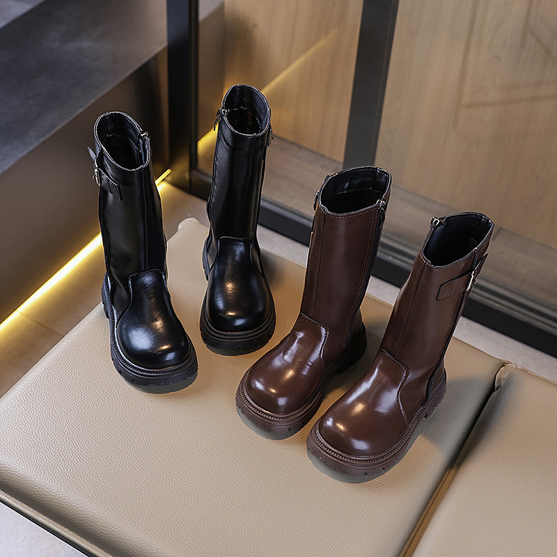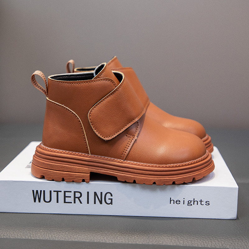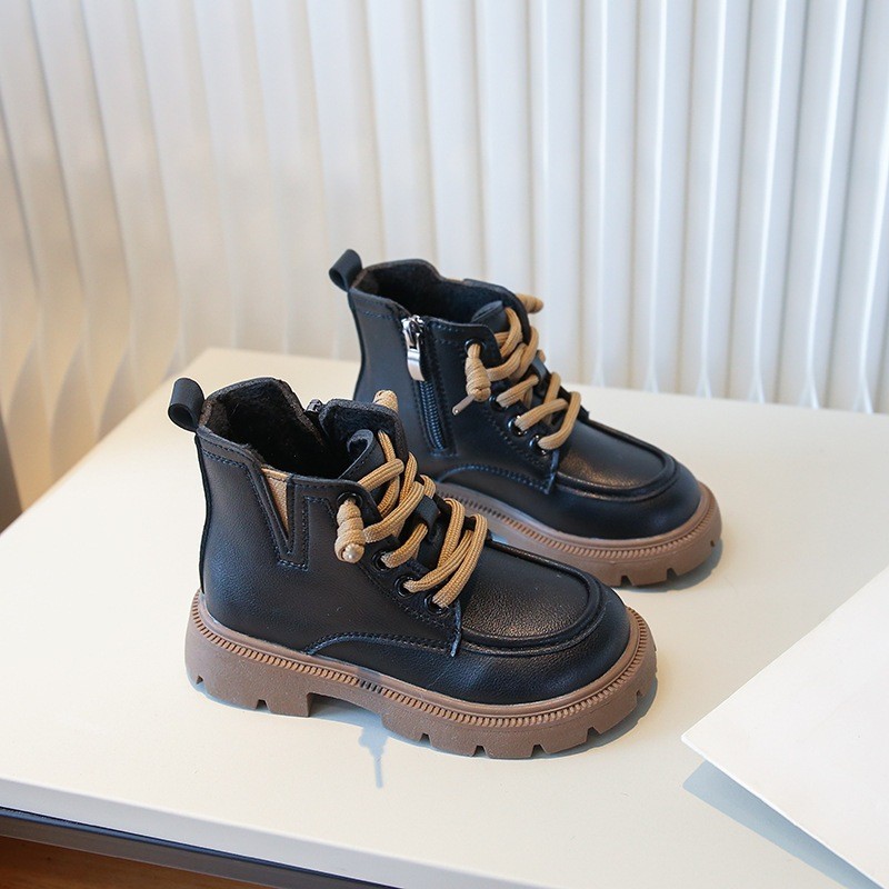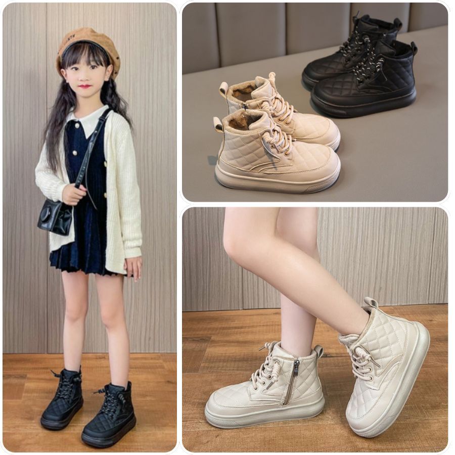 รหัส 1421 ❤️ส่งจากไทย ส่งไว ทันใจ ❤️รองเท้าบูทหนังเด็กข้อสั้นบุขน ใส่อุ่น เป็นงานนำเข้าจากเกาหลี