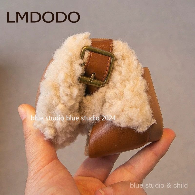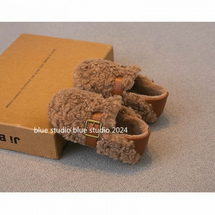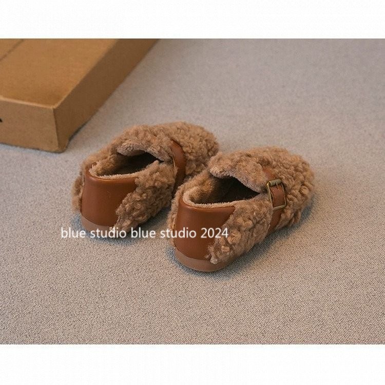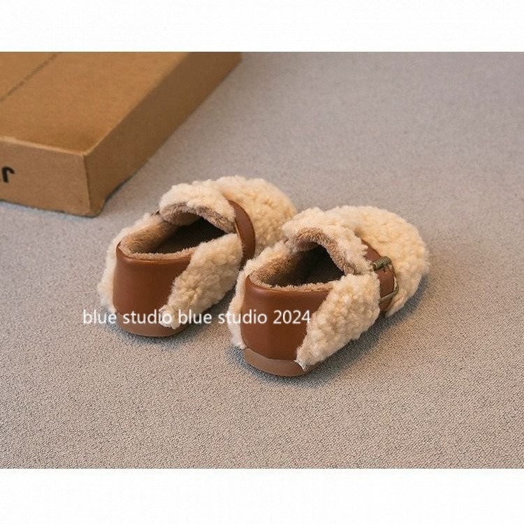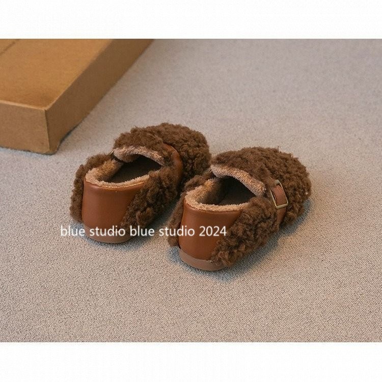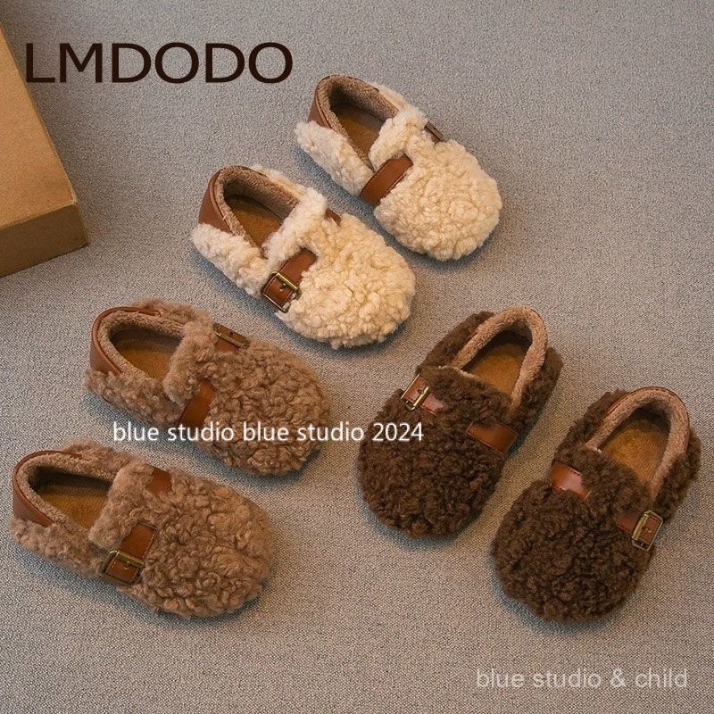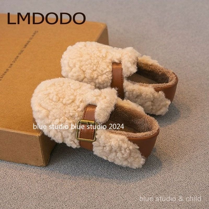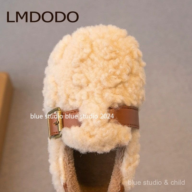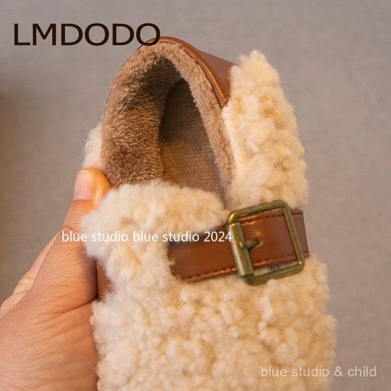 [ขนแกะเรียงราย ~ รองเท้าปุย] 2024ฤดูหนาวใหม่ g irls ‘ขนยาวรองเท้ารองเท้าปุย · รองเท้าผ้าฝ้ายเด็กขนแกะเรียงรายเด็กลื่นบน gommino