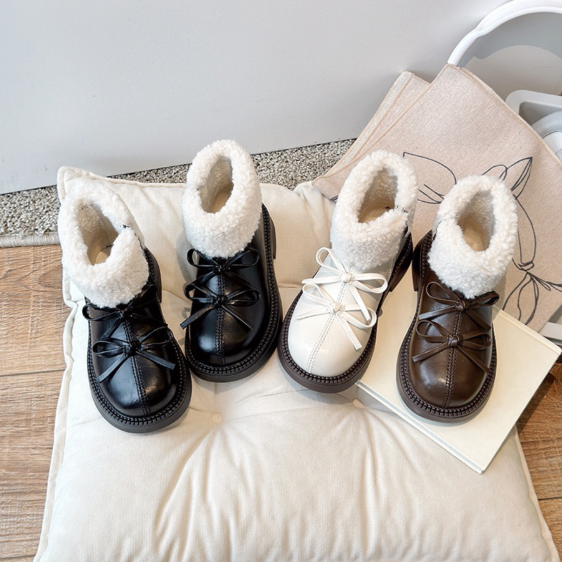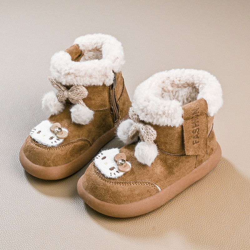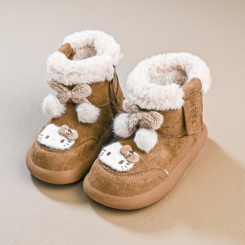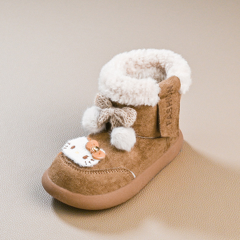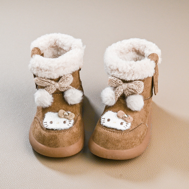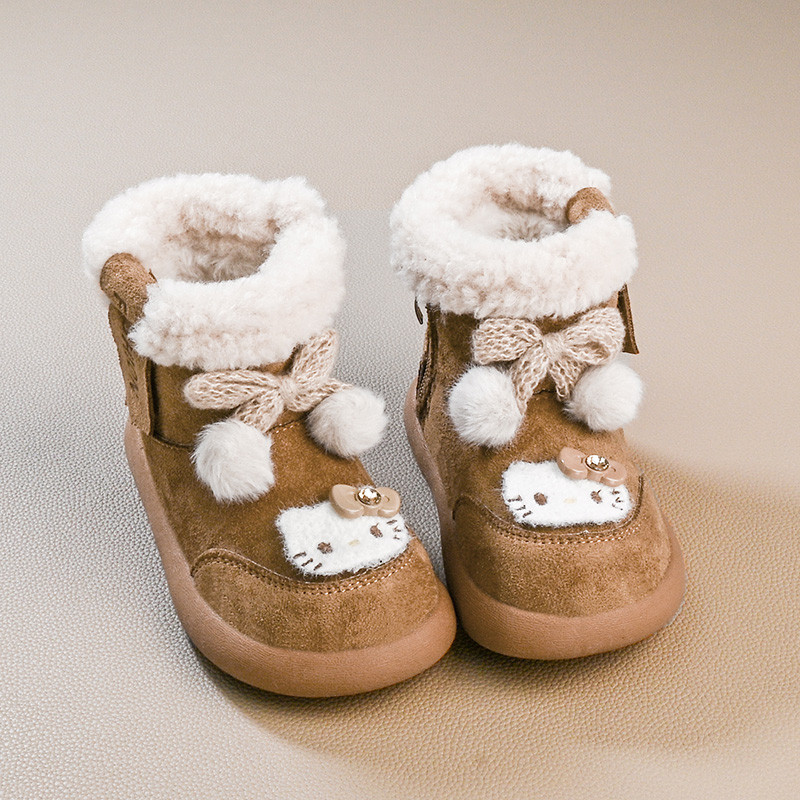 รองเท้านิ่ม>Hello Kitty Snow Boots สไตล์เจ้าหญิง พันทุยโบว์ กันหนาวสำหรับเด็ก ทำจากผ้าขนเฟอร์และผ้าฝ้าย