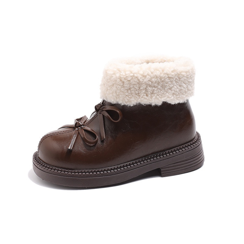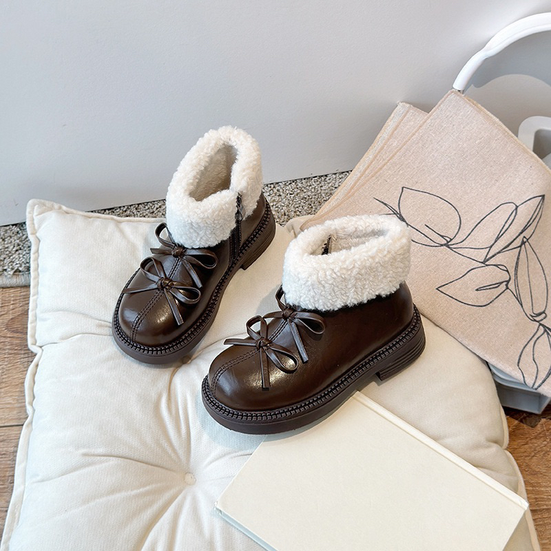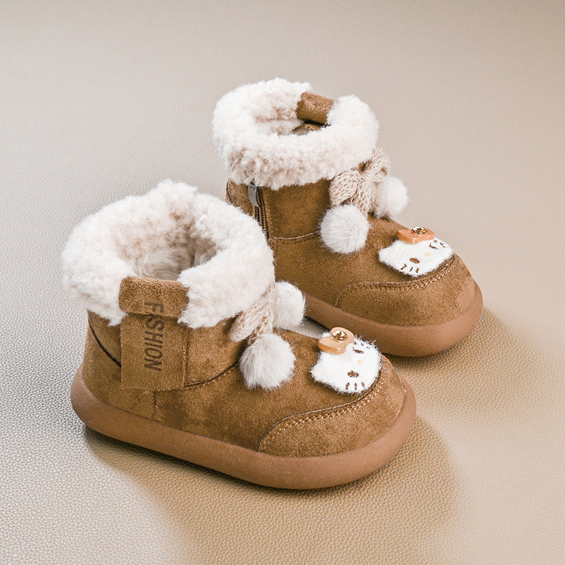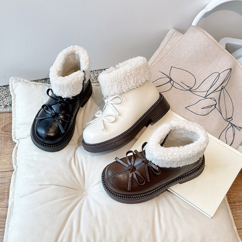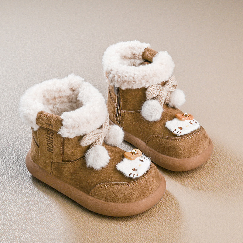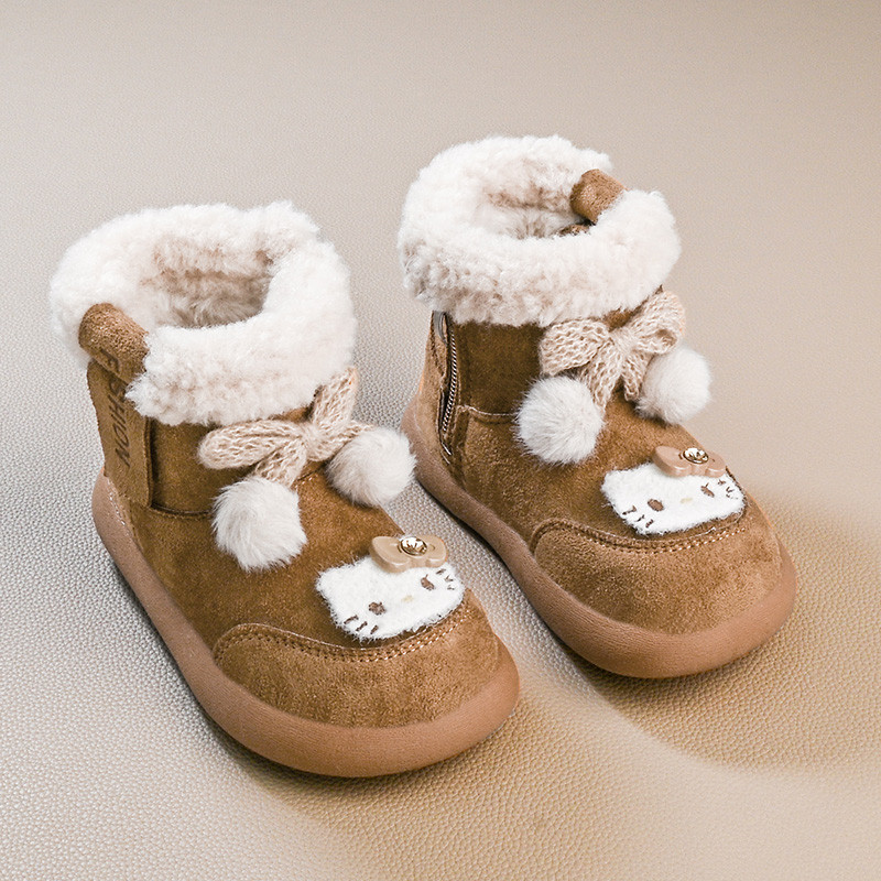 รองเท้านิ่ม>Hello Kitty Snow Boots สไตล์เจ้าหญิง พันทุยโบว์ กันหนาวสำหรับเด็ก ทำจากผ้าขนเฟอร์และผ้าฝ้าย